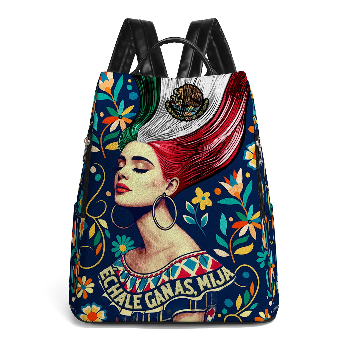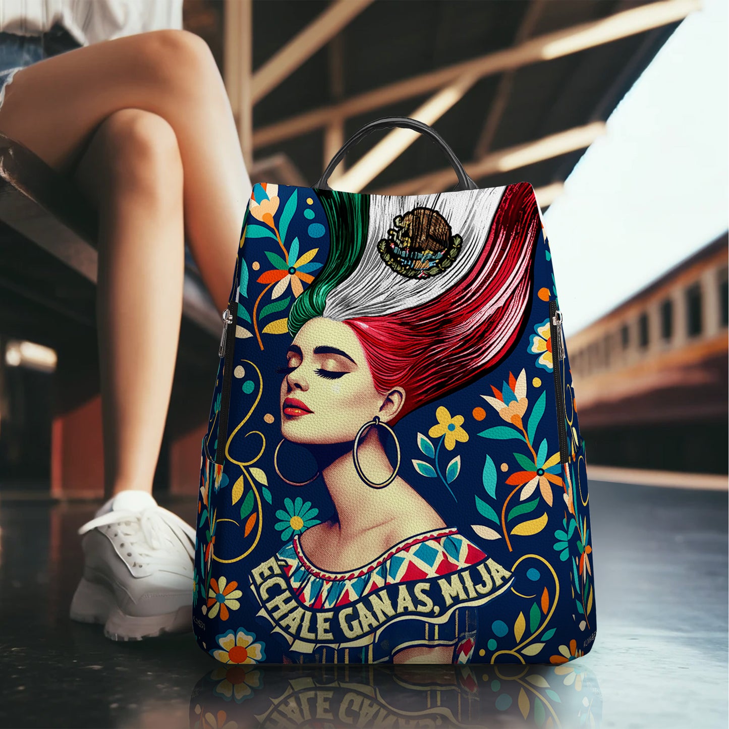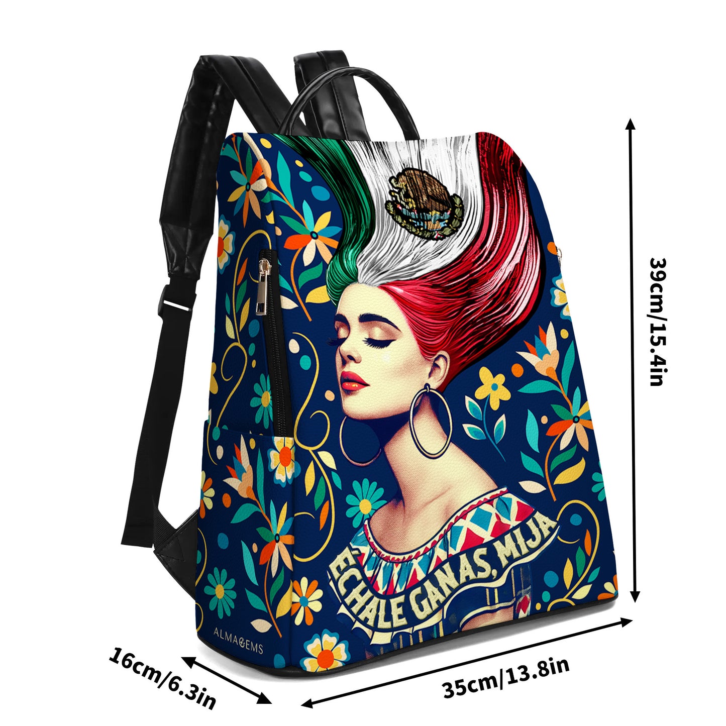 Échale Ganas, Mija - Mexican Personalized Custom Leather Backpack, All Over Print - Gift for Daughter and Mom