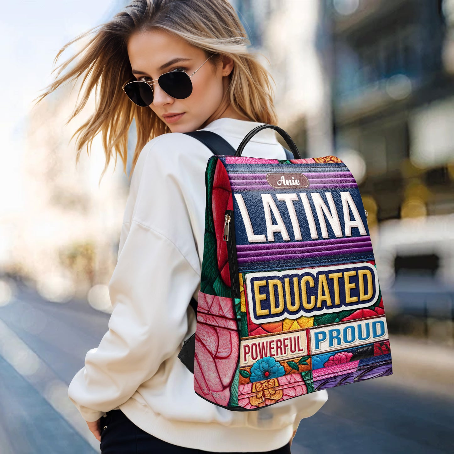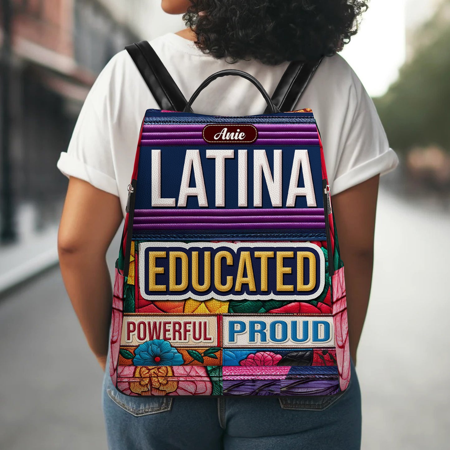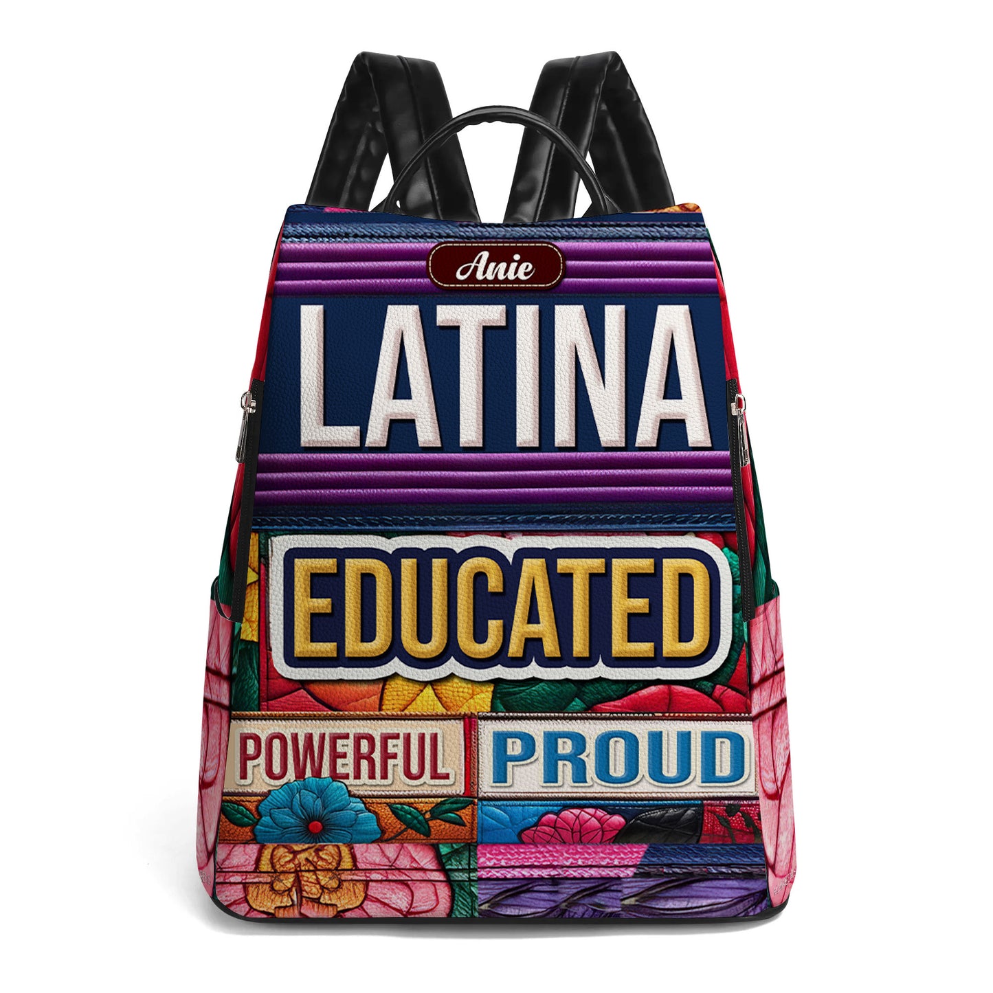 Educada, Poderosa, Orgullosa - Mochila Personalizada de Cuero, Todo Estampado - Regalo Para Latinas