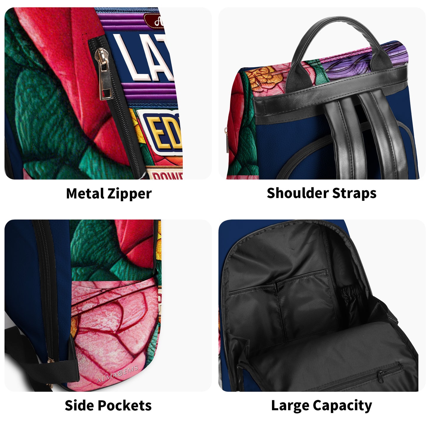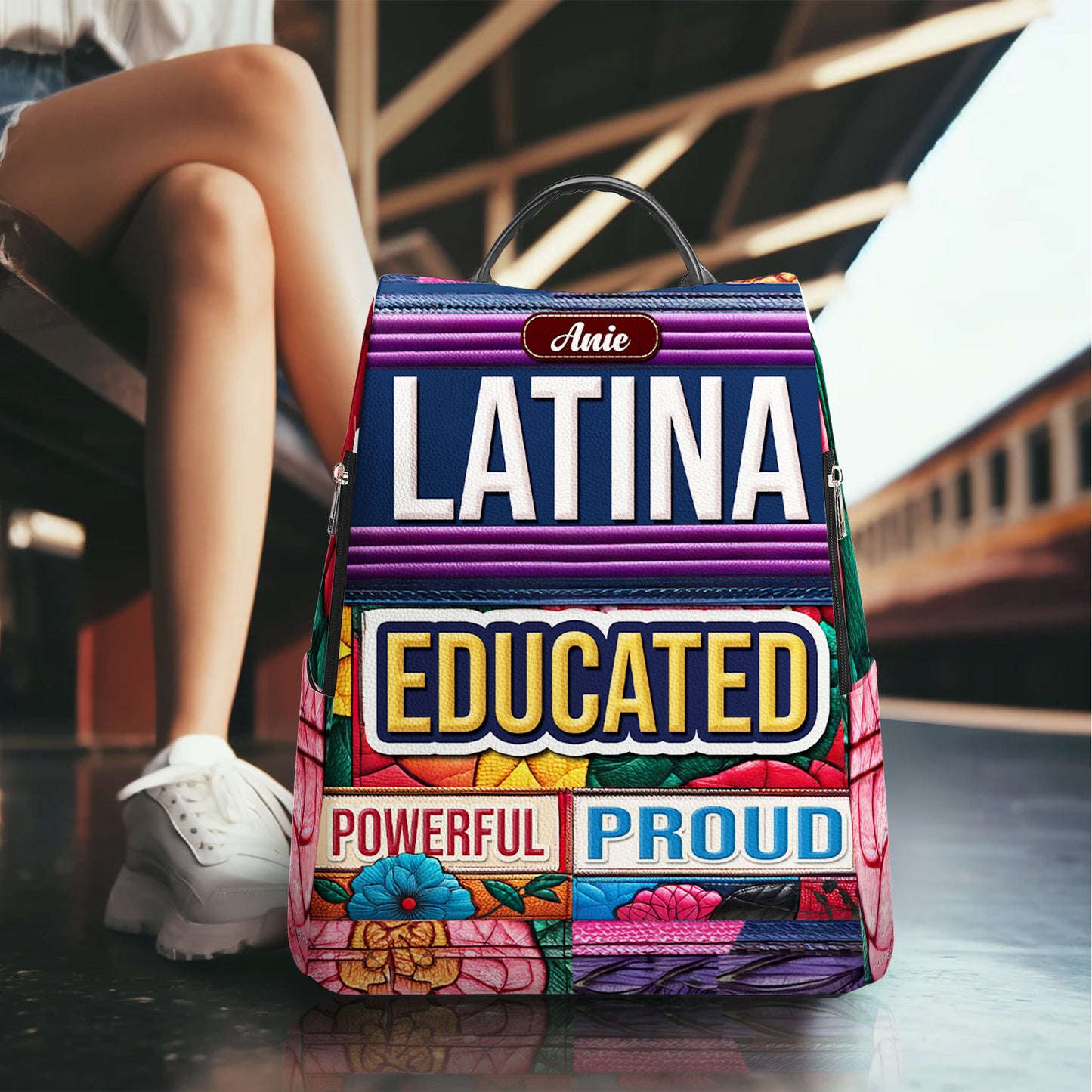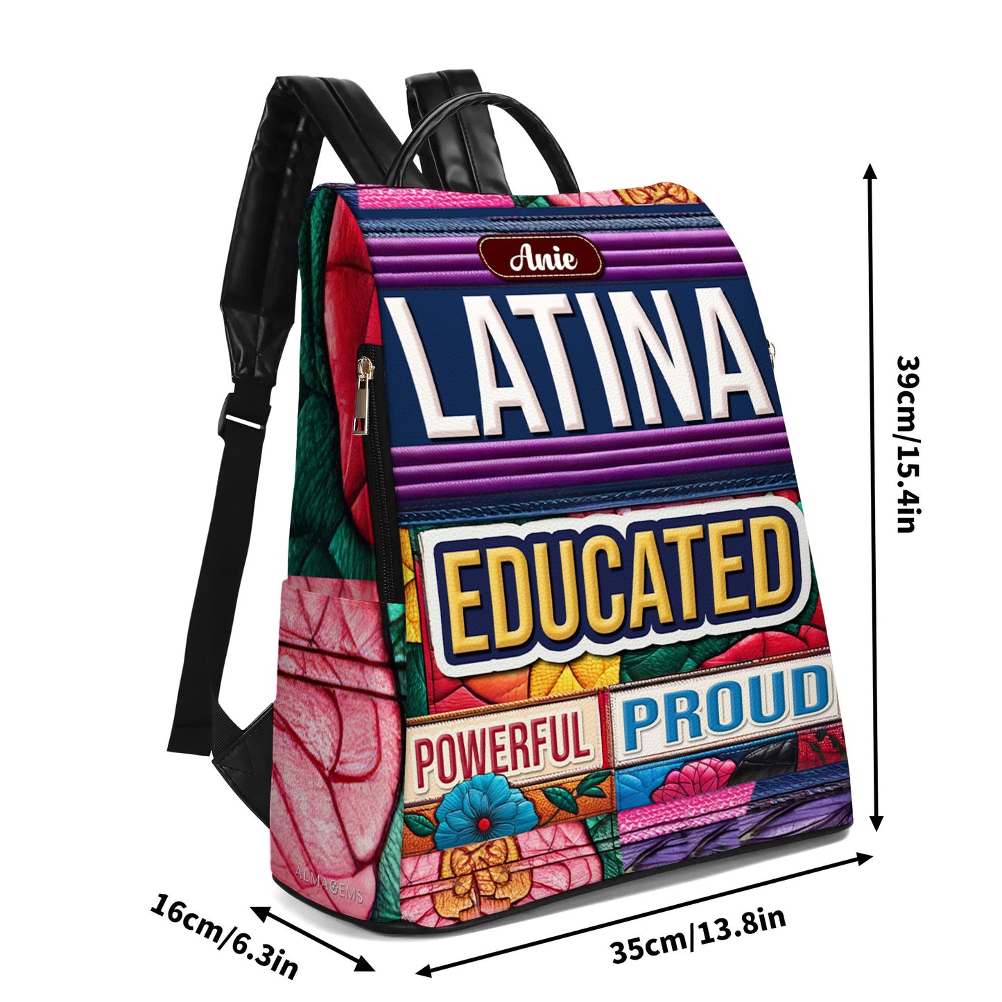 Educada, Poderosa, Orgullosa - Mochila Personalizada de Cuero, Todo Estampado - Regalo Para Latinas