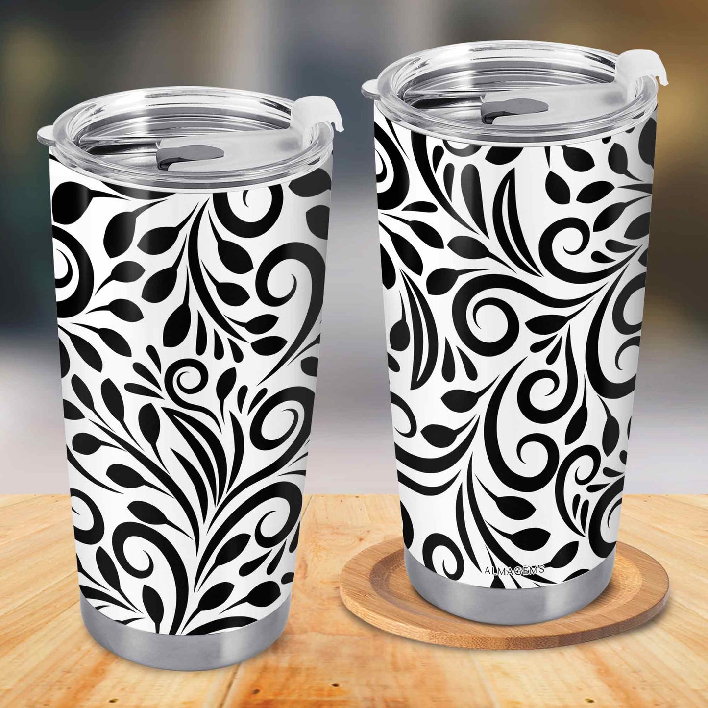 Swirling Floral Design - Personalized Custom Tumbler, All Over Print 20oz/30oz - Gift For Beverage Lovers