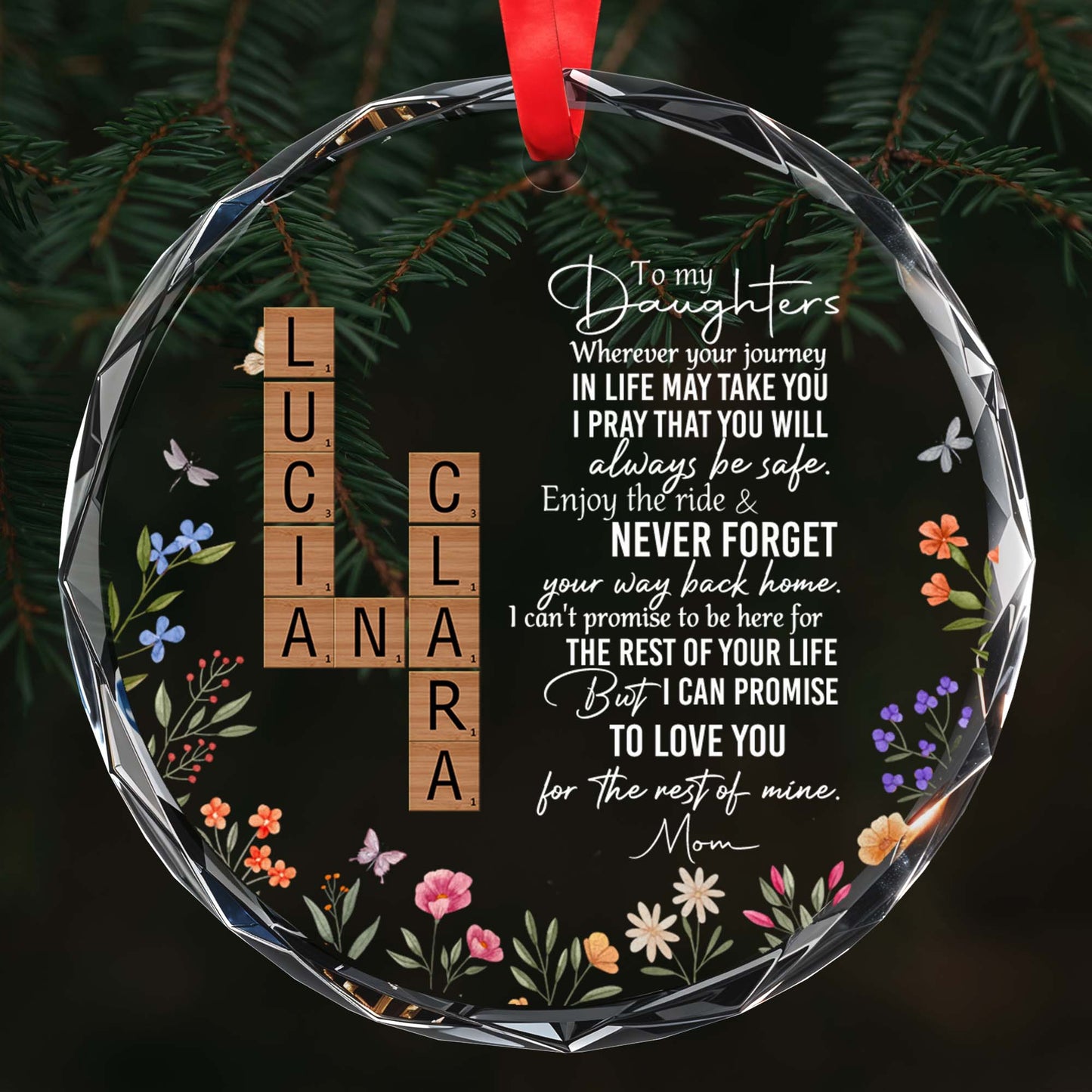 Eternal Promise To Love - Floral Personalized Custom Glass Ornament - Gift For Daughter And Family