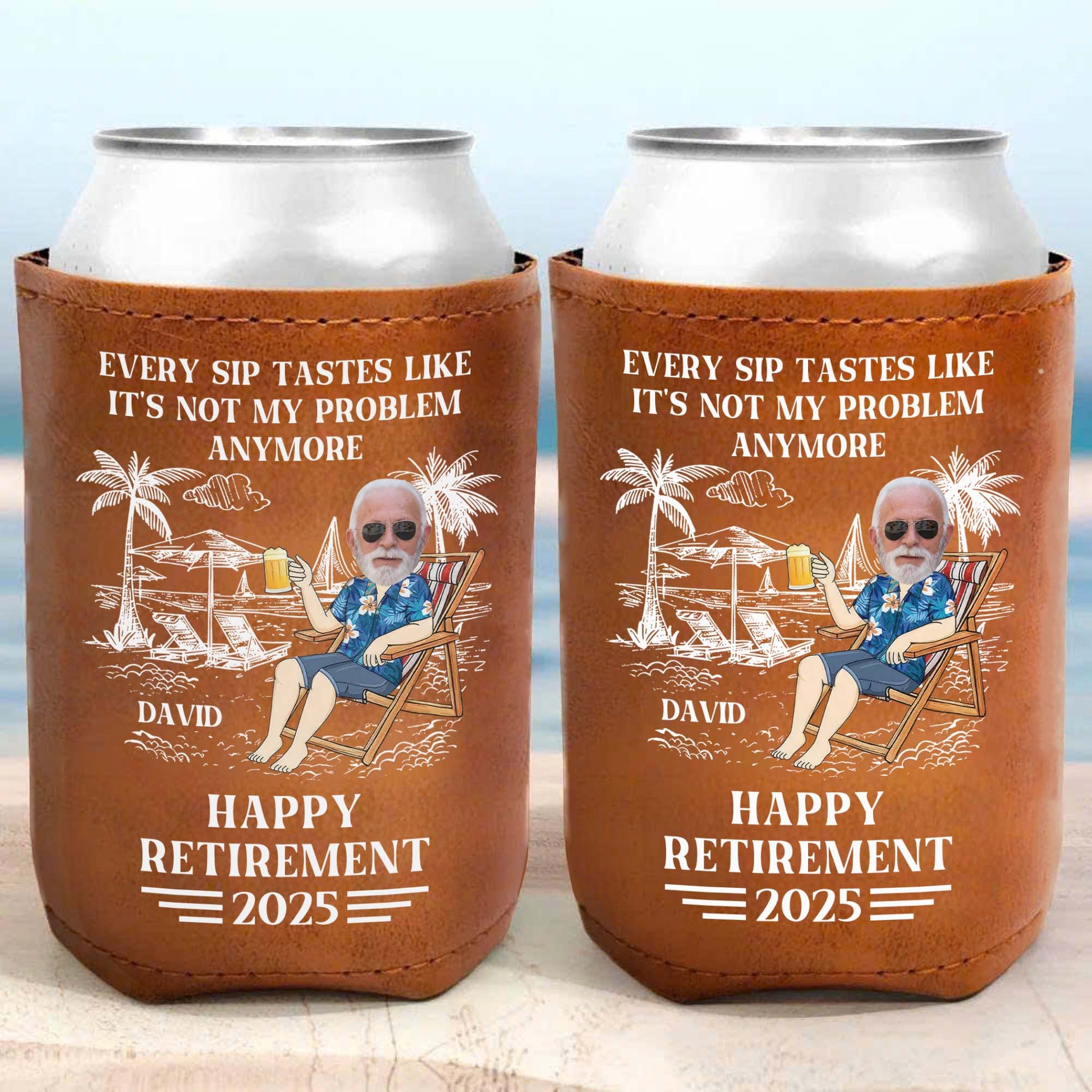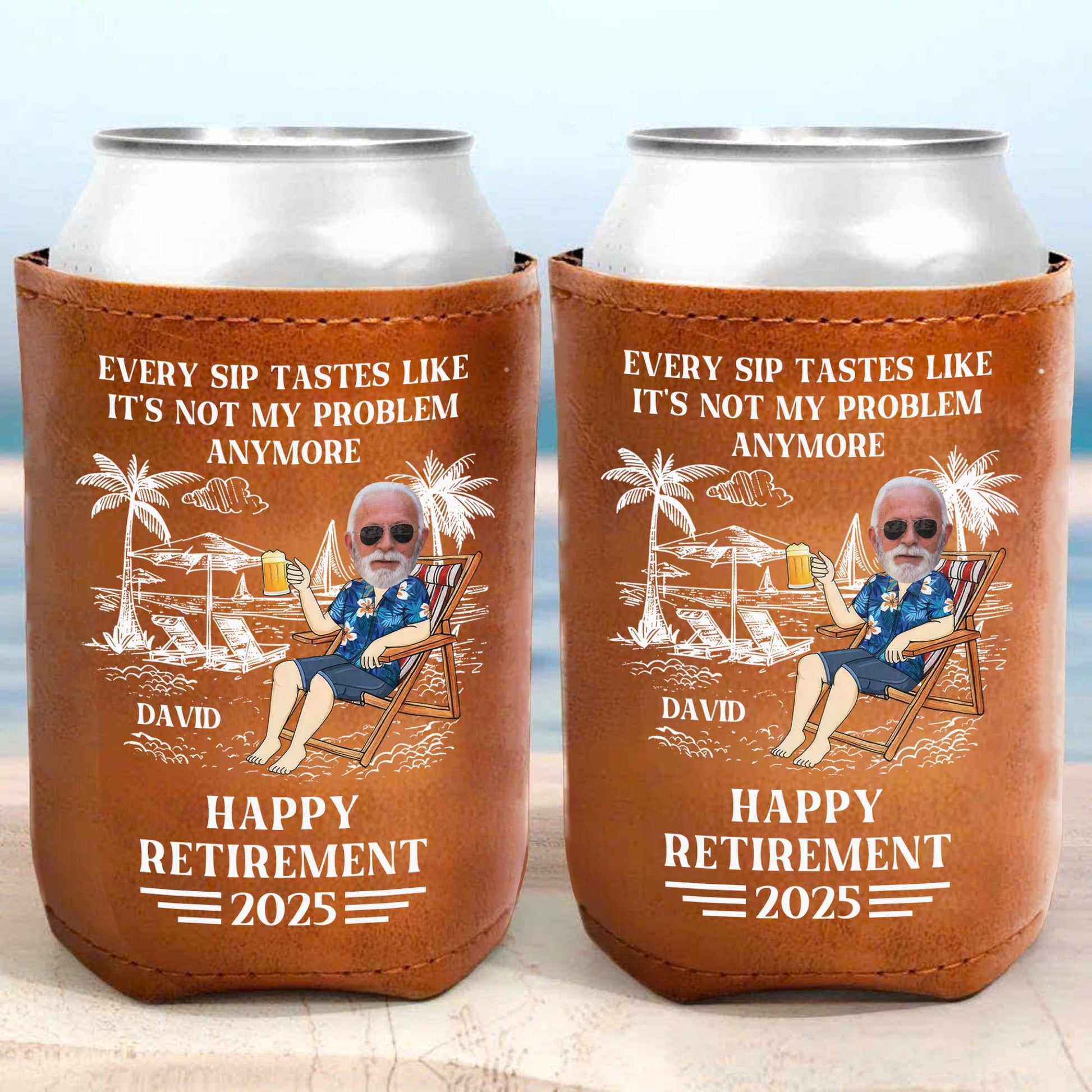 Every Sip Tastes Like It's Not My Problem Anymore Happy Retirement, Personalized Leather Can Cooler, Gift For Retirees