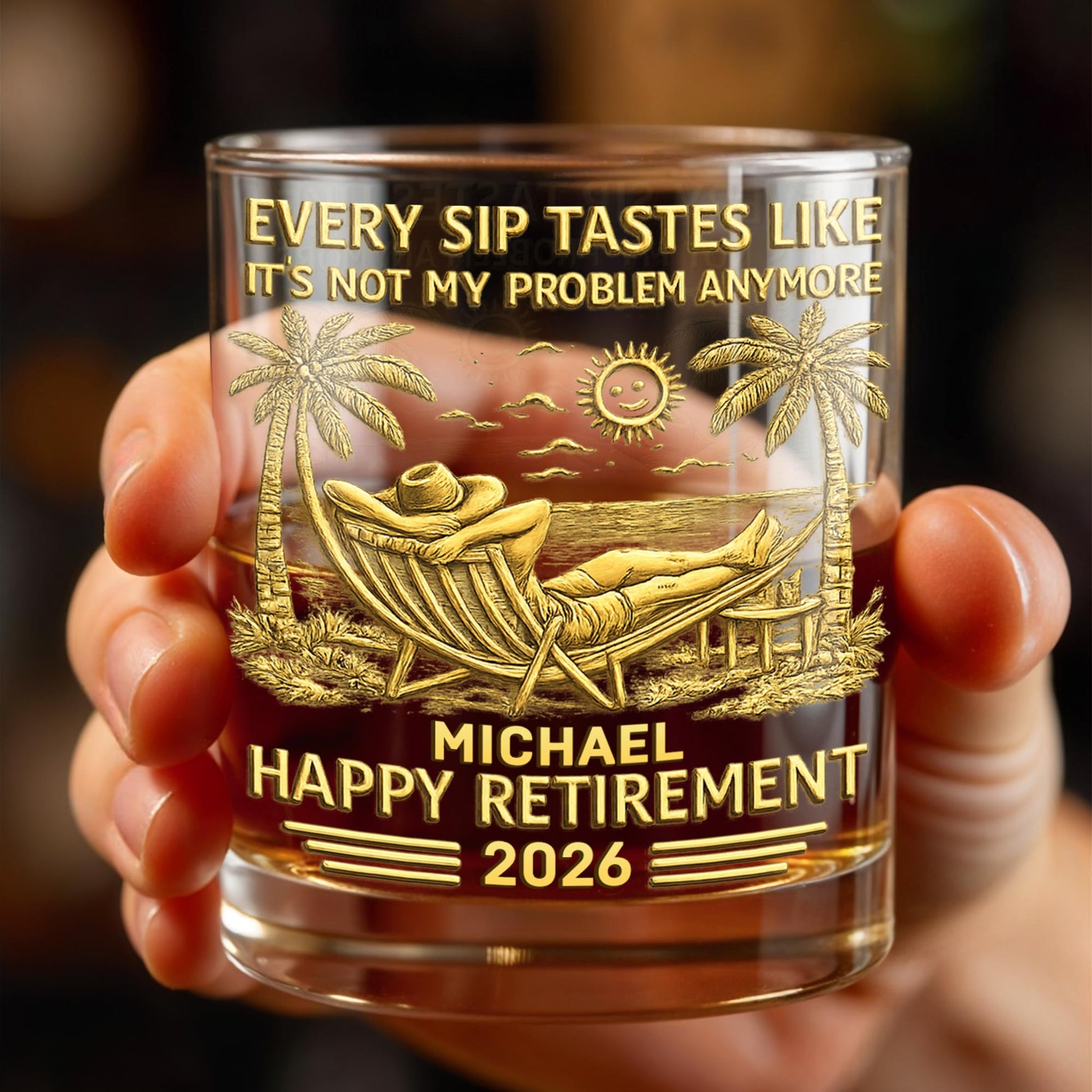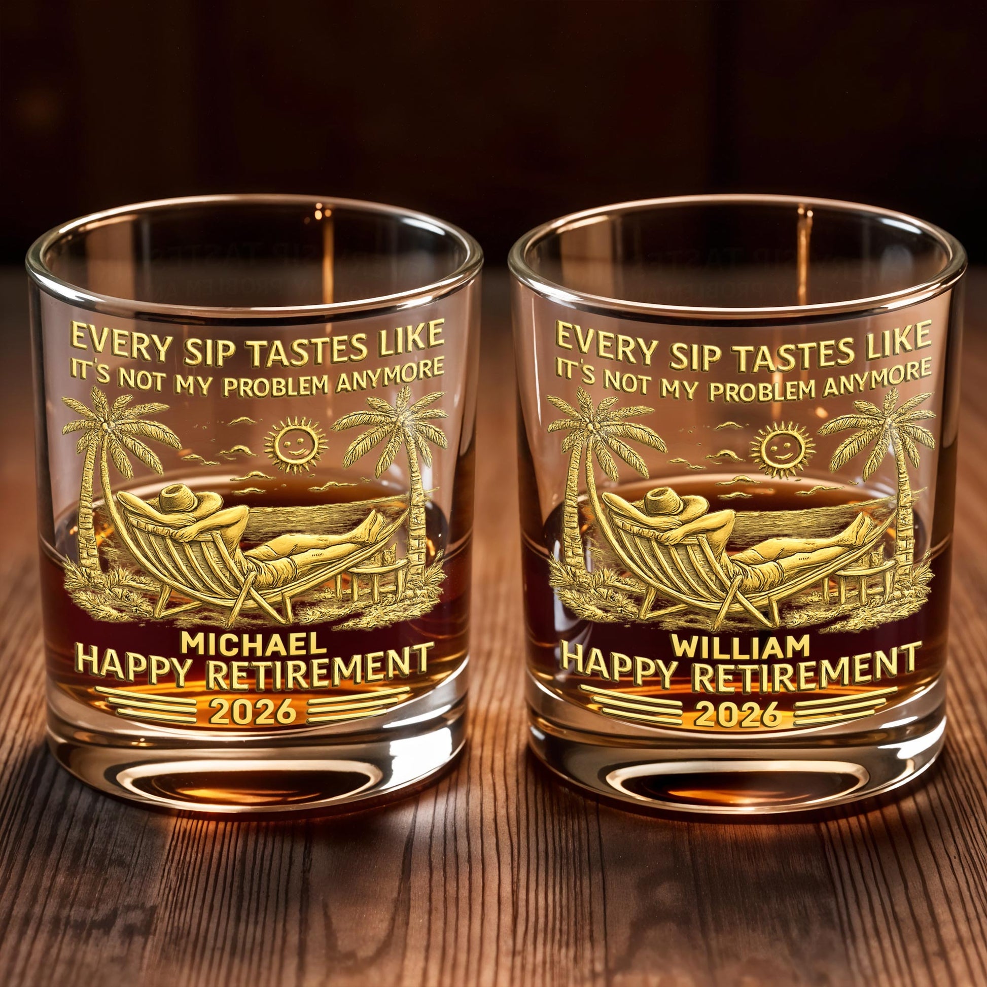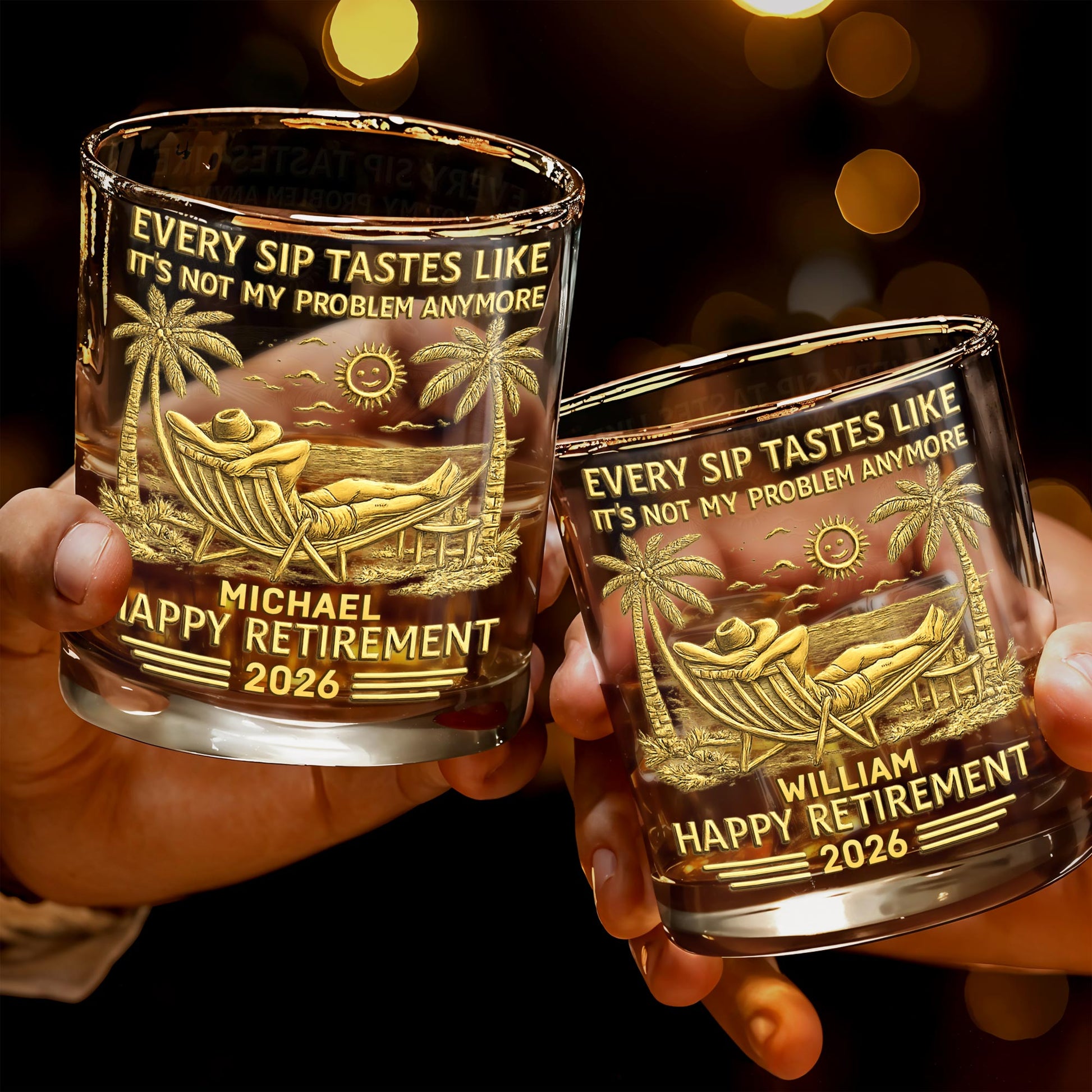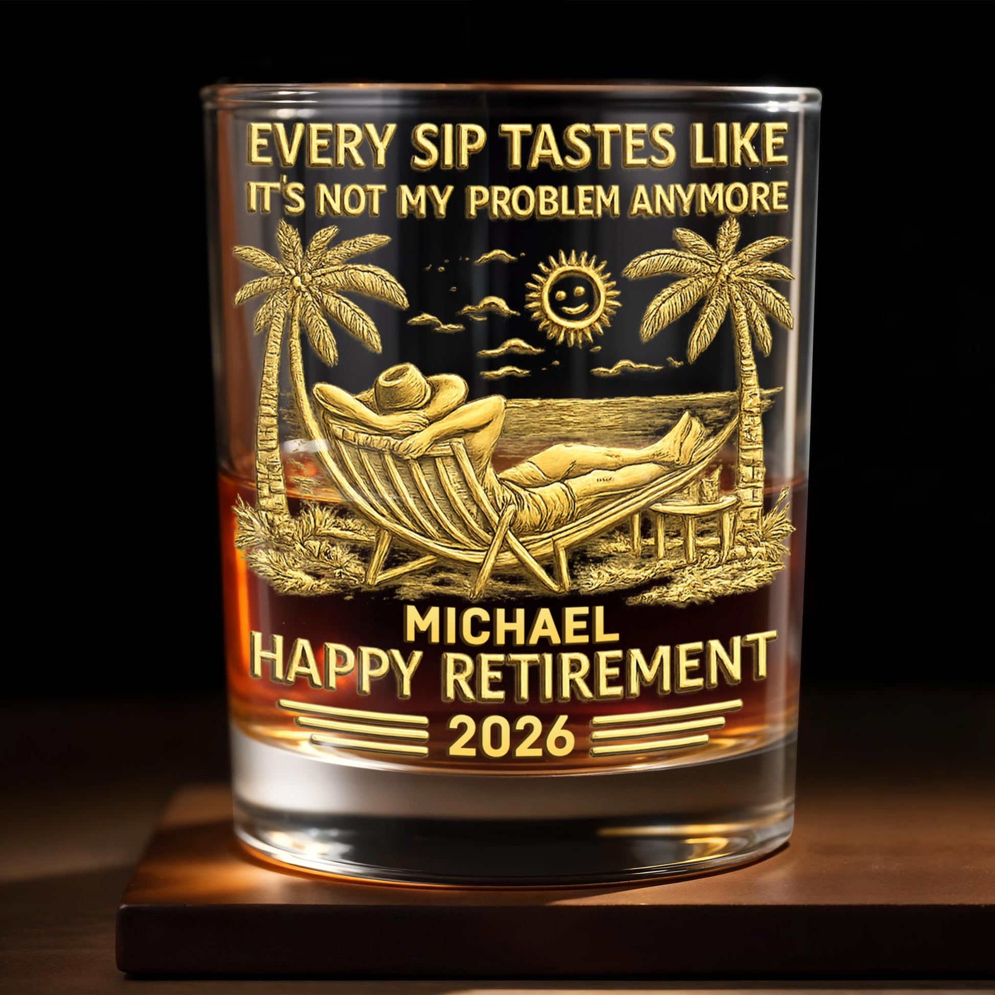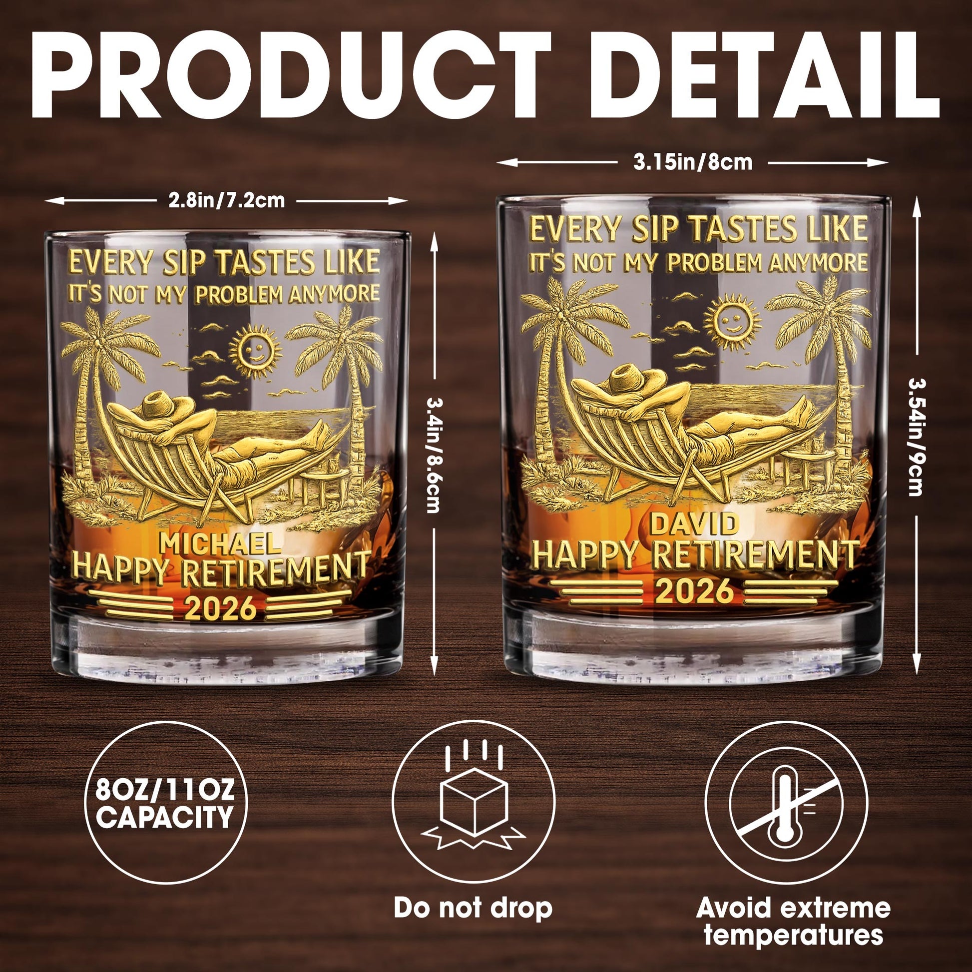 Every Sip Tastes Like It's Not My Problem, Personalized Whiskey Glass, Gift For Retirees and Relaxation Lovers