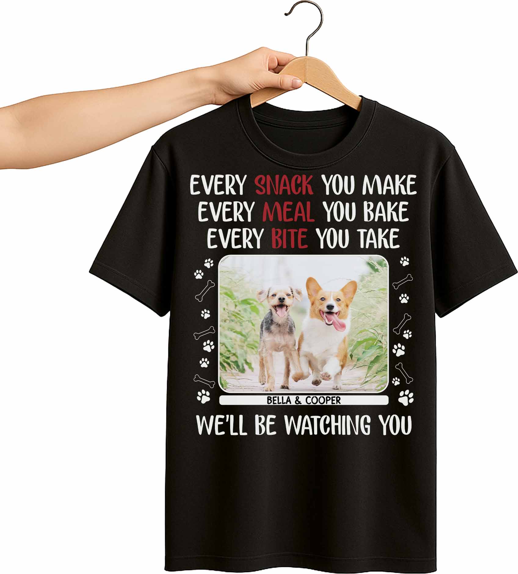 Every Snack You Make, Dogs Watching You, Paw Prints, T-Shirt, Gift For Dog Lovers