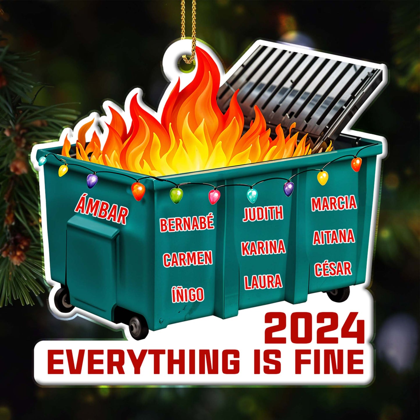 Everything Is Fine Dumpster on Fire with Christmas Lights - Personalized Custom Acrylic Ornament, Christmas Gift - BST100_ACO