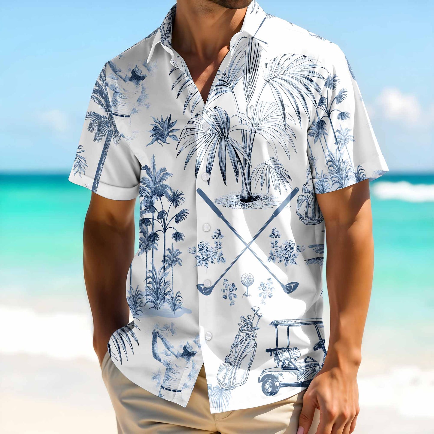 Explore Tropical Dreams With Palms And Golf,Hawaiian Shirt,Gift For Dad And Golf Lovers