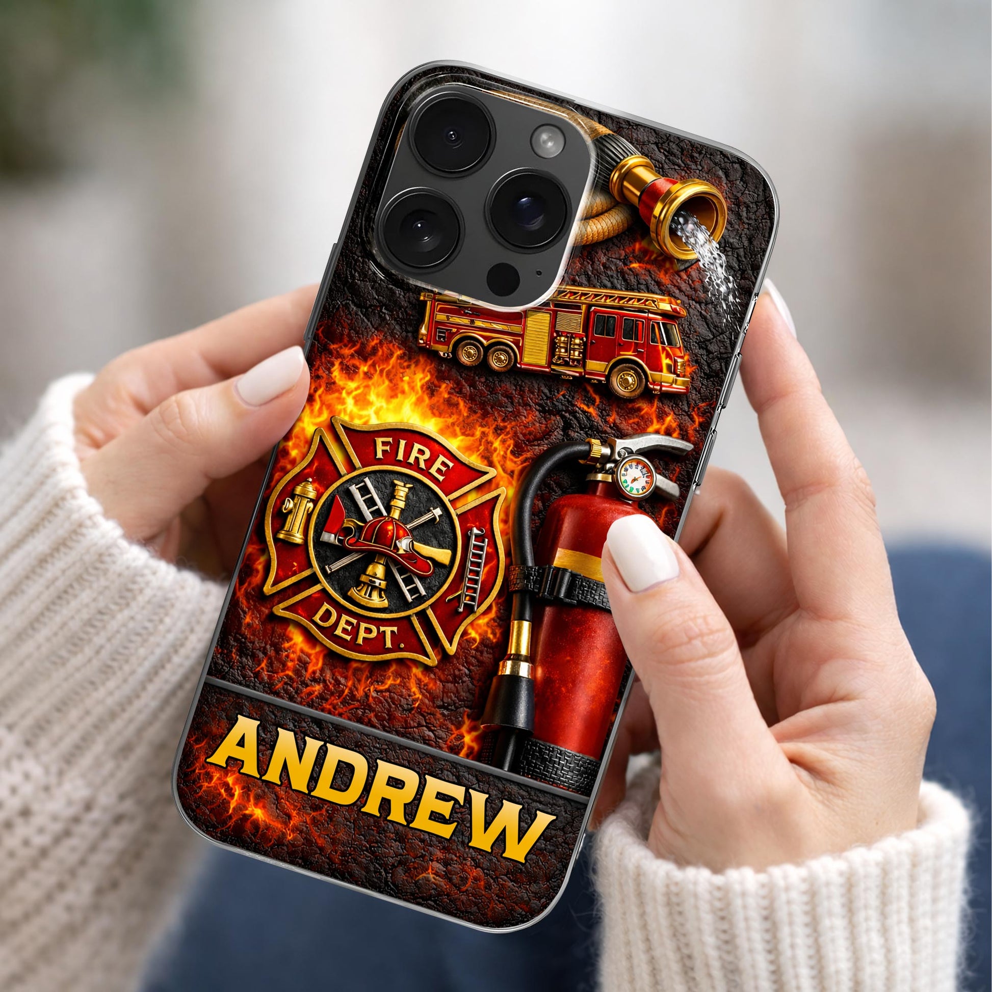 Fire Dept Firetruck and Badge, Personalized Clear Phone Case, Gift for Firefighters and Firefighter Lovers