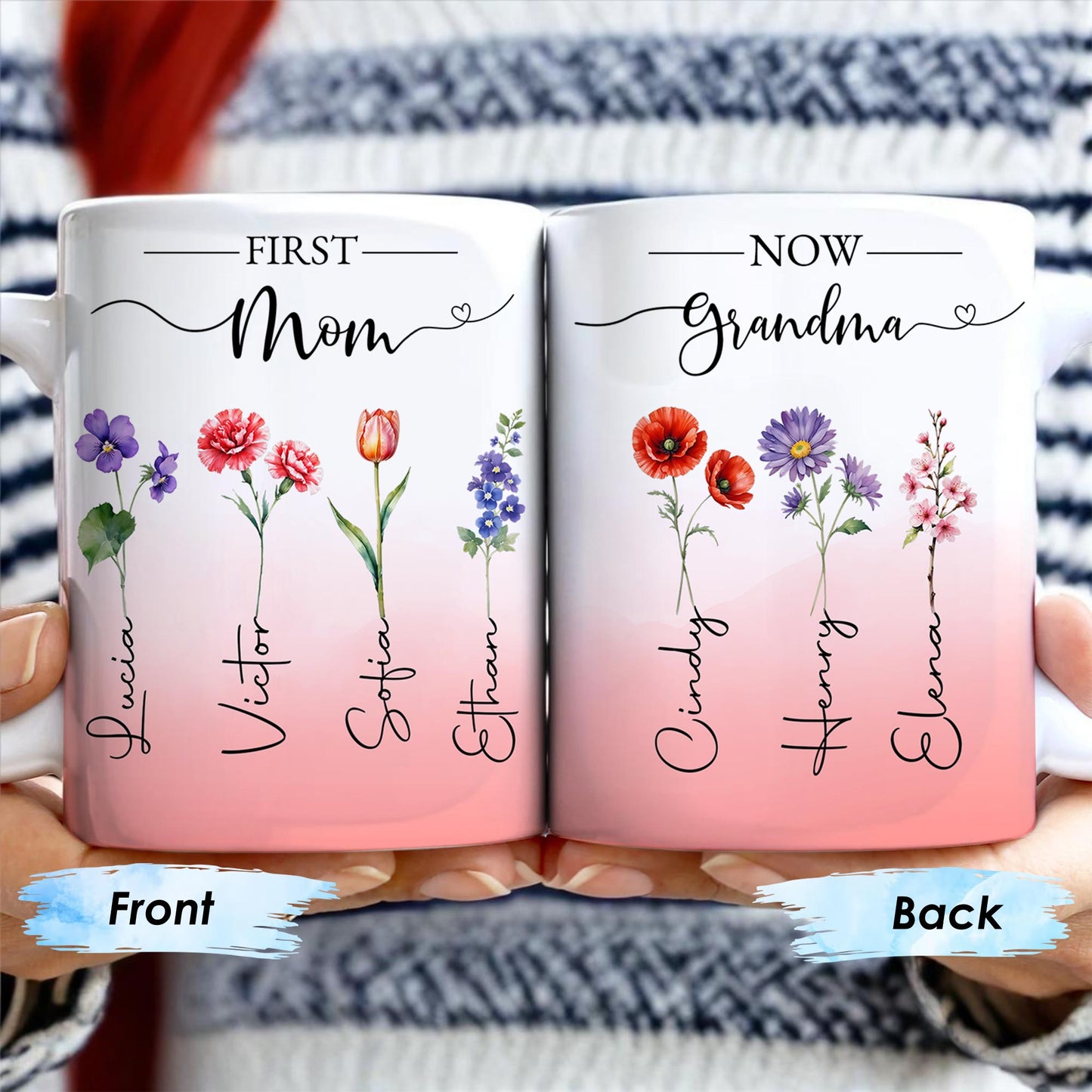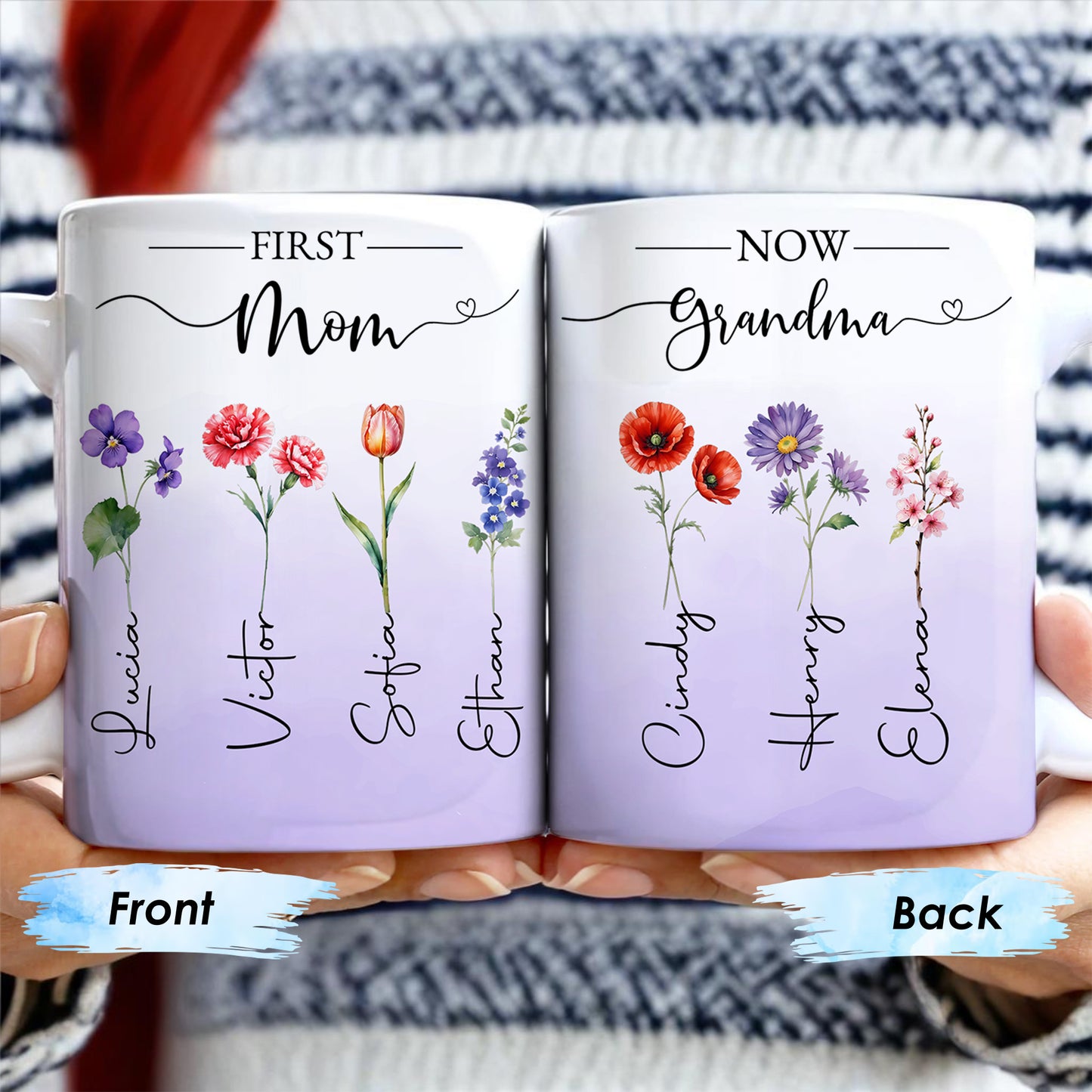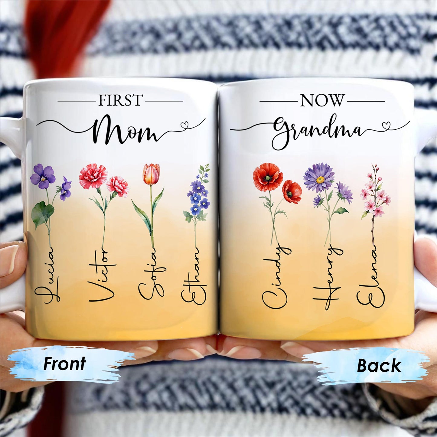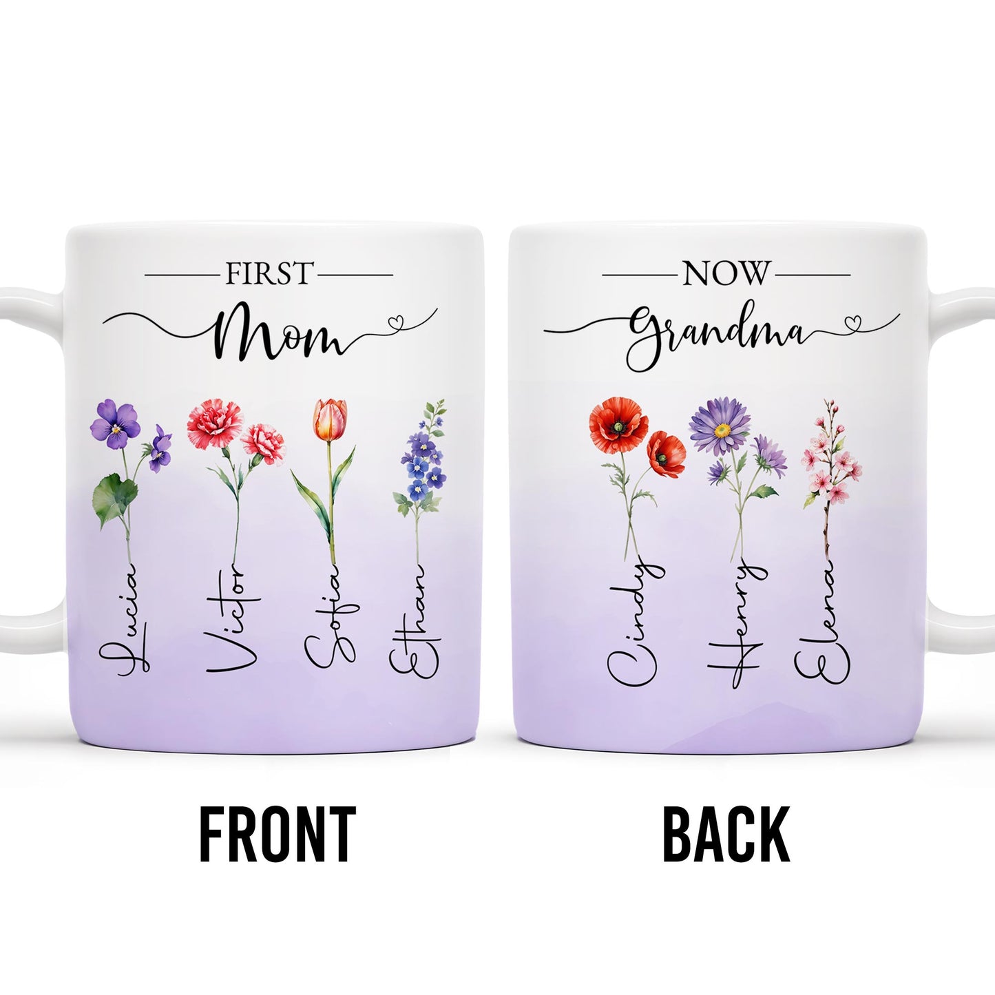 First Mom, Now Grandma - Celebrating Love Personalized Custom Coffee Mug - Gift For Mothers and Grandmothers