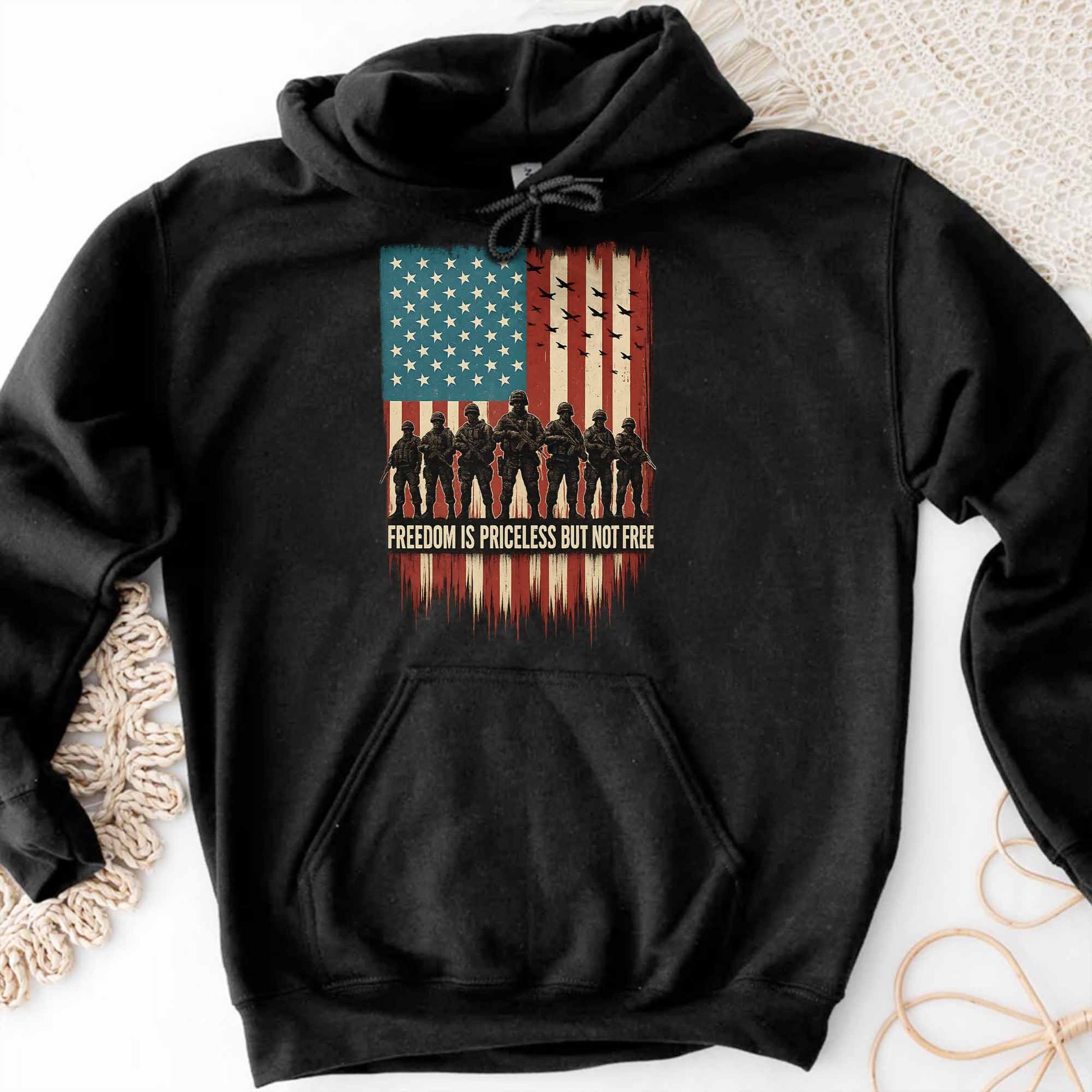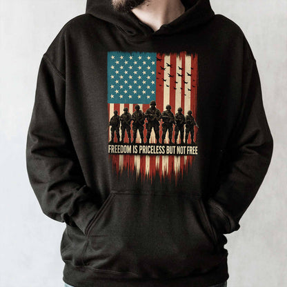 Freedom Is Priceless But Not Free, American Flag And Soldiers - Personalized Custom Unisex T-shirt, Hoodie - INDE013_BBAS