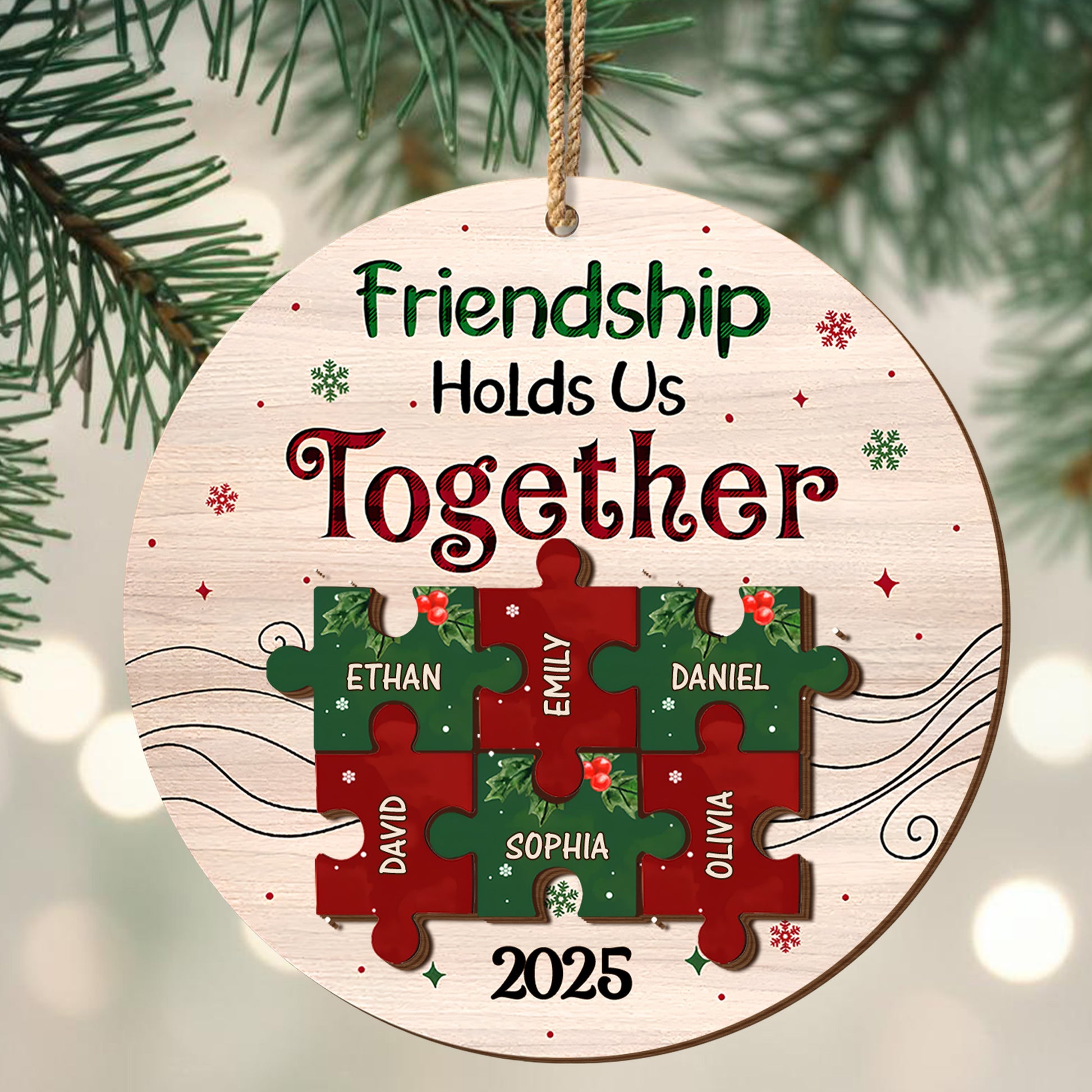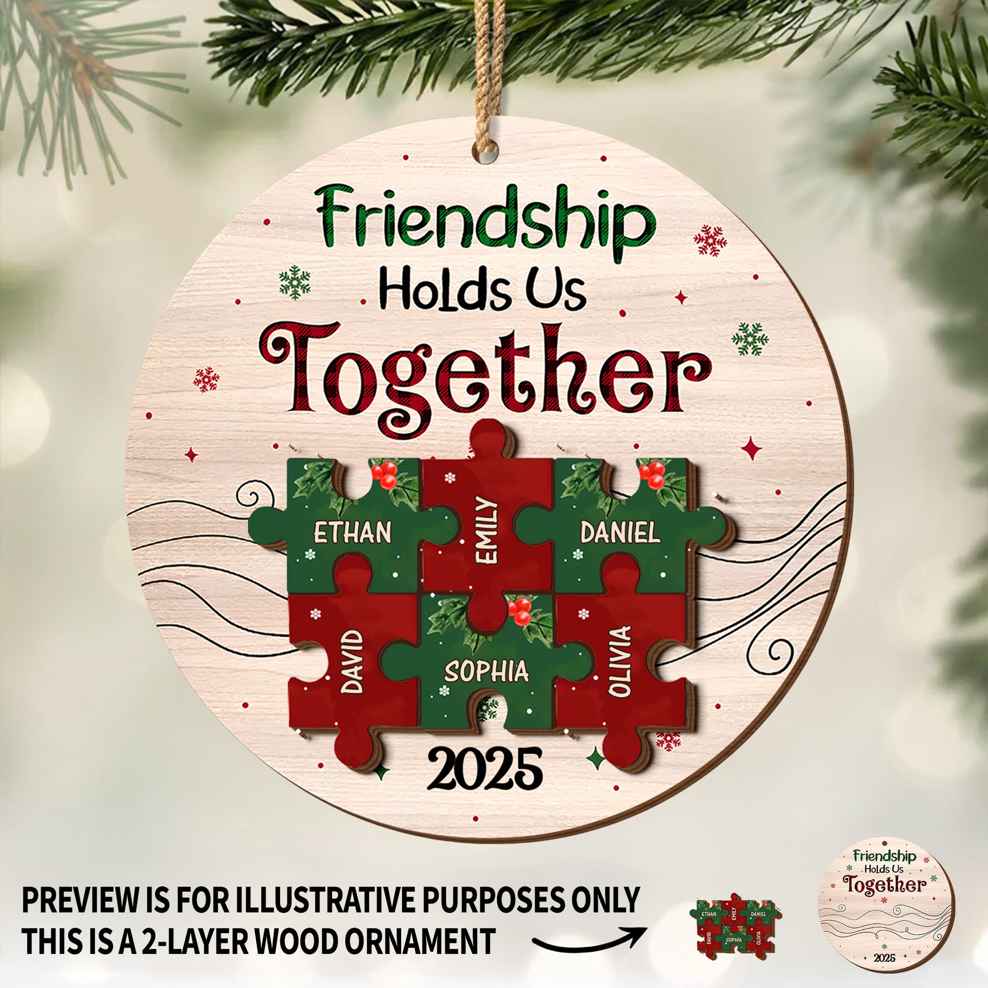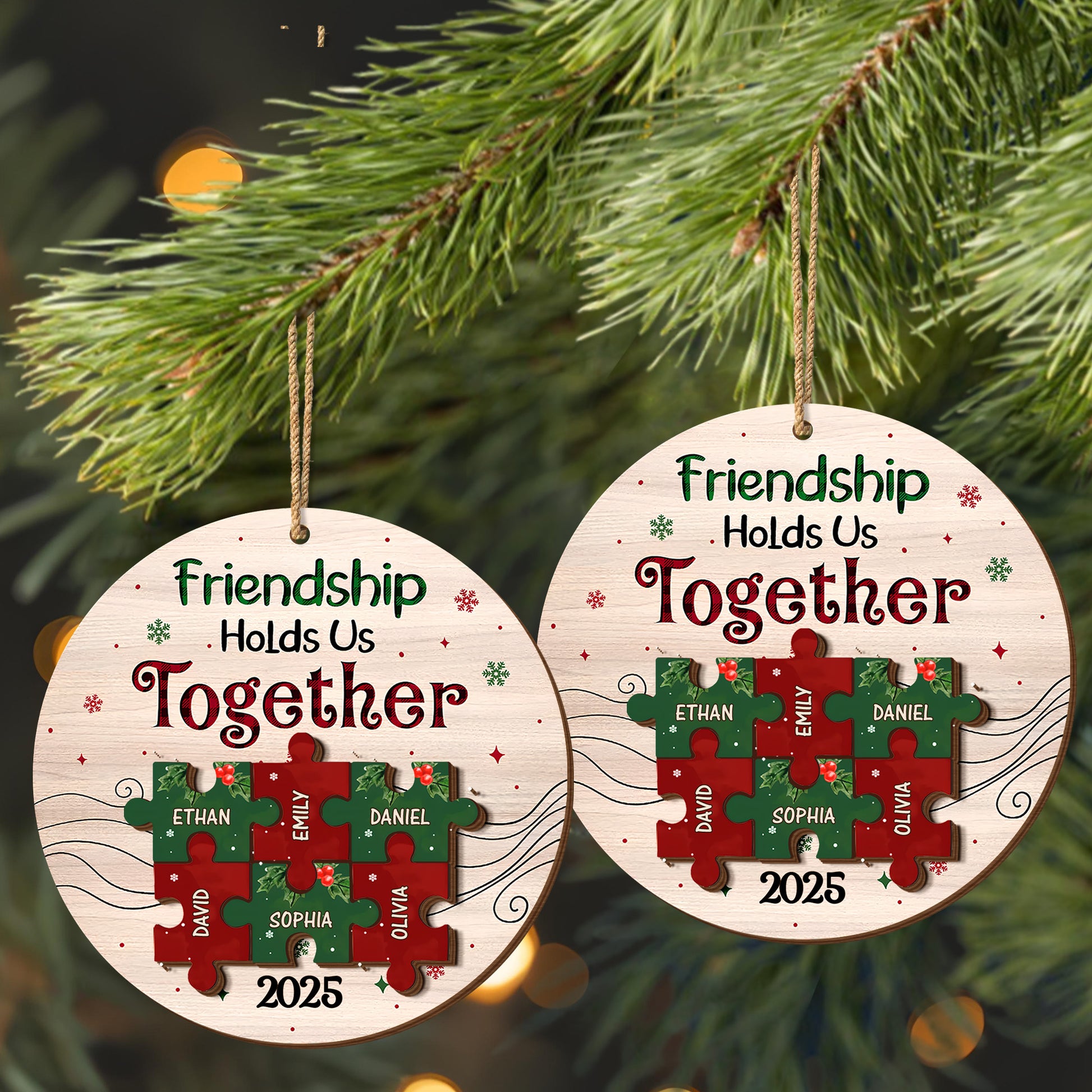 Friendship Hold Us Together, Personalized Double Layer Wood Ornament, Gift For Family and Friends