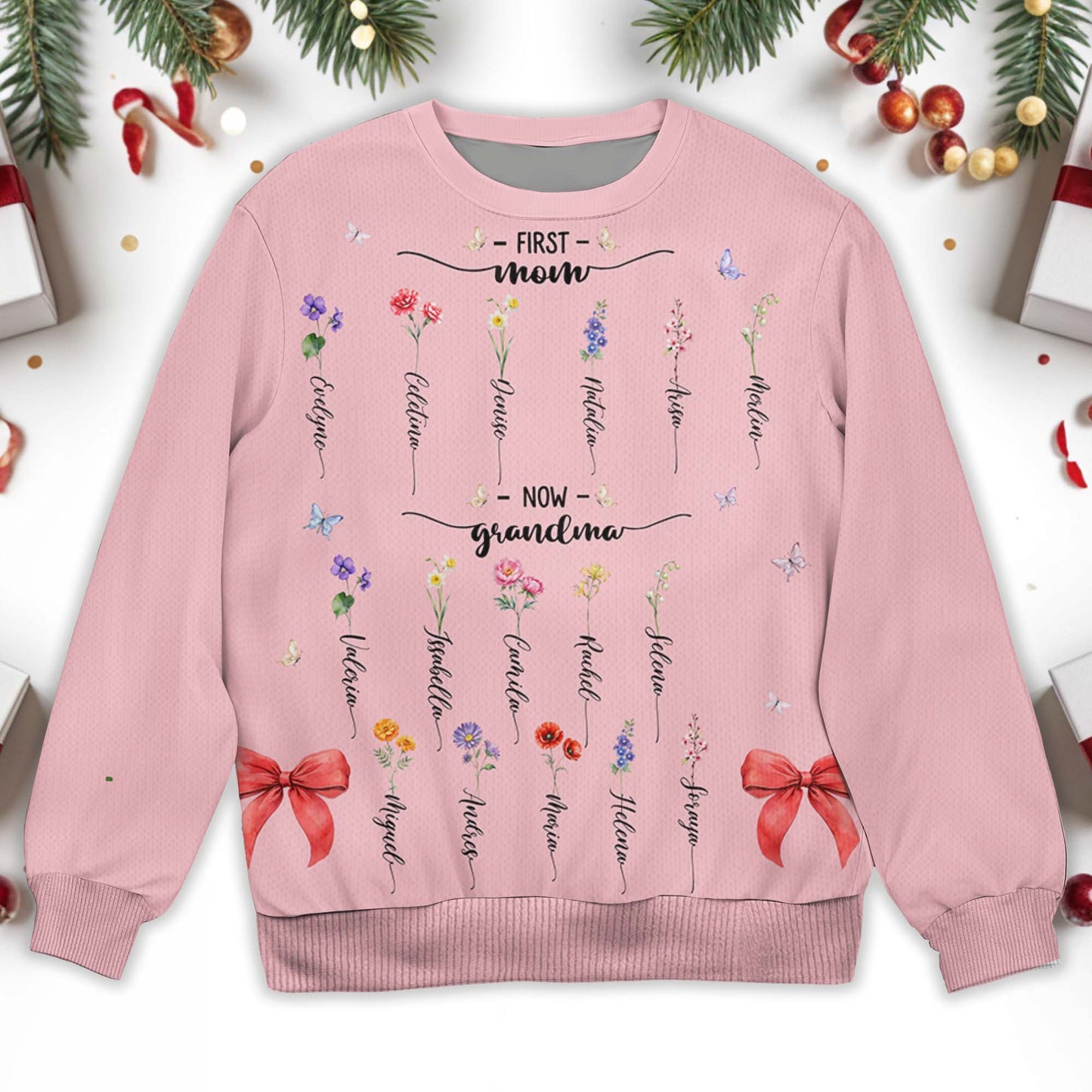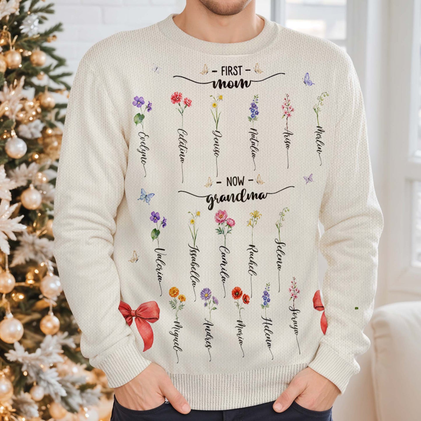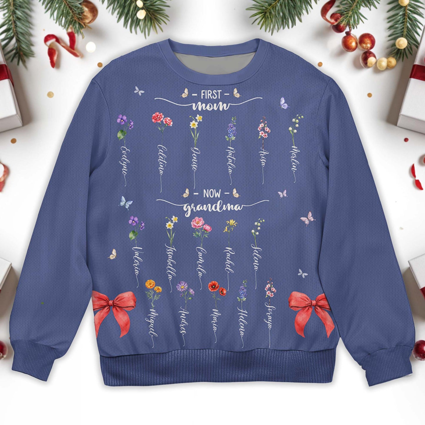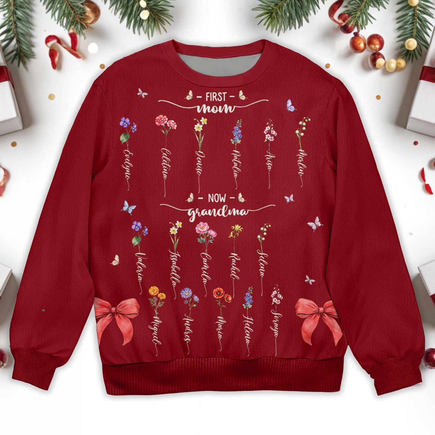 From Mom To Grandma Journey With Love And Flowers Sweatshirt - Personalized Custom Ugly Sweatshirt, Unisex Wool Jumper - GRM023_TWS