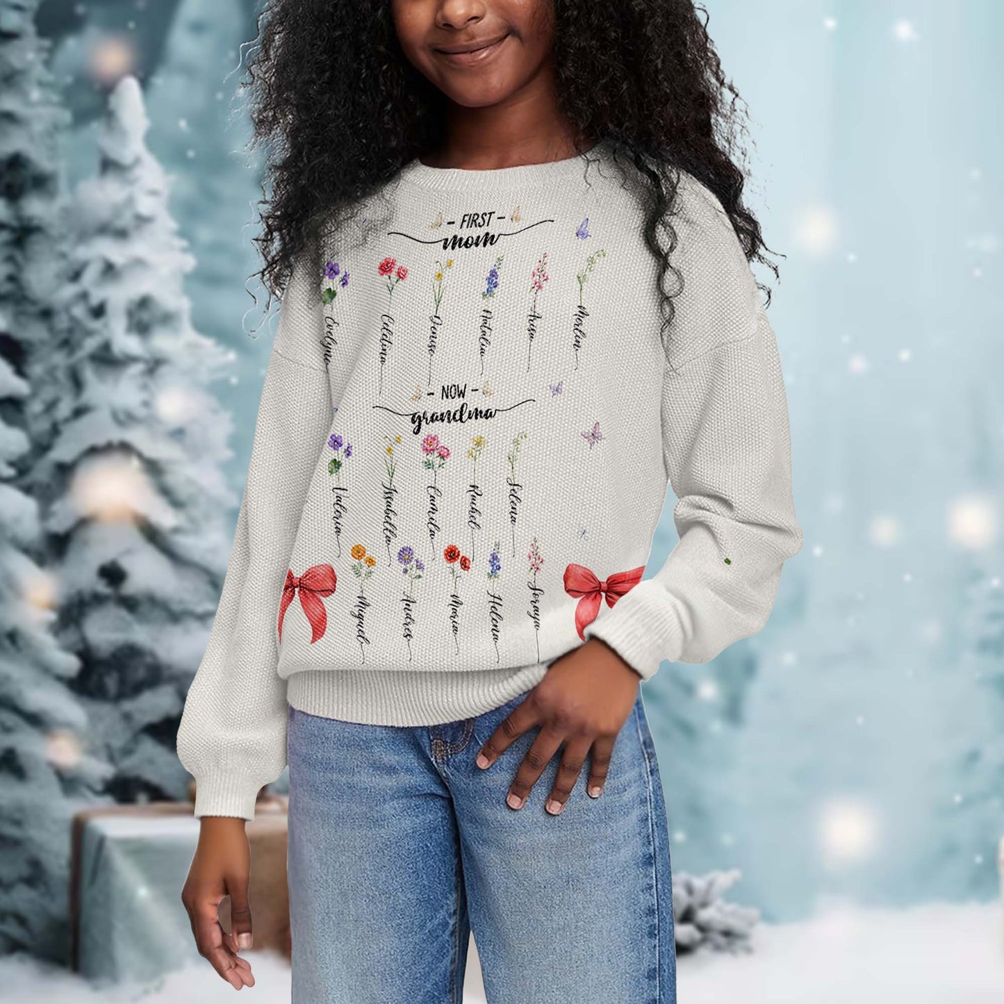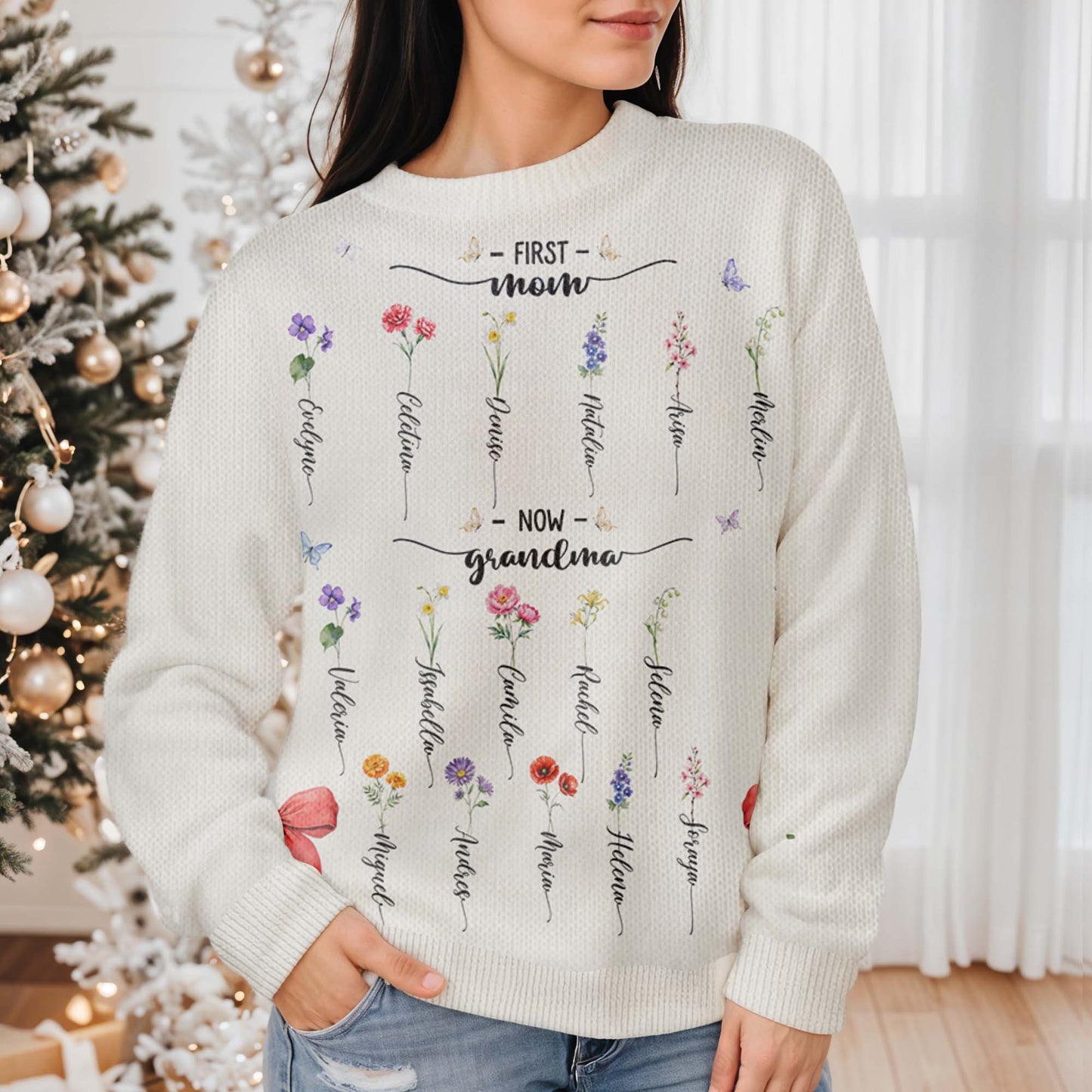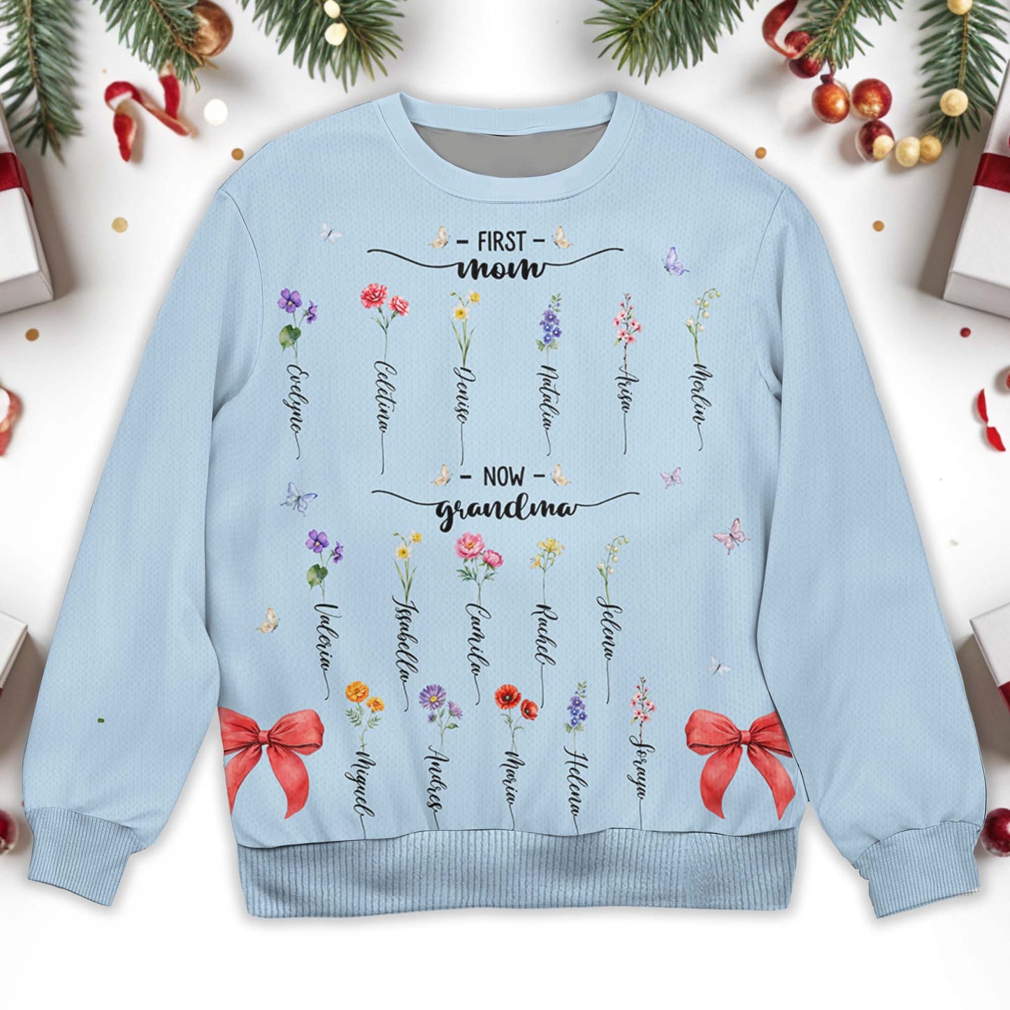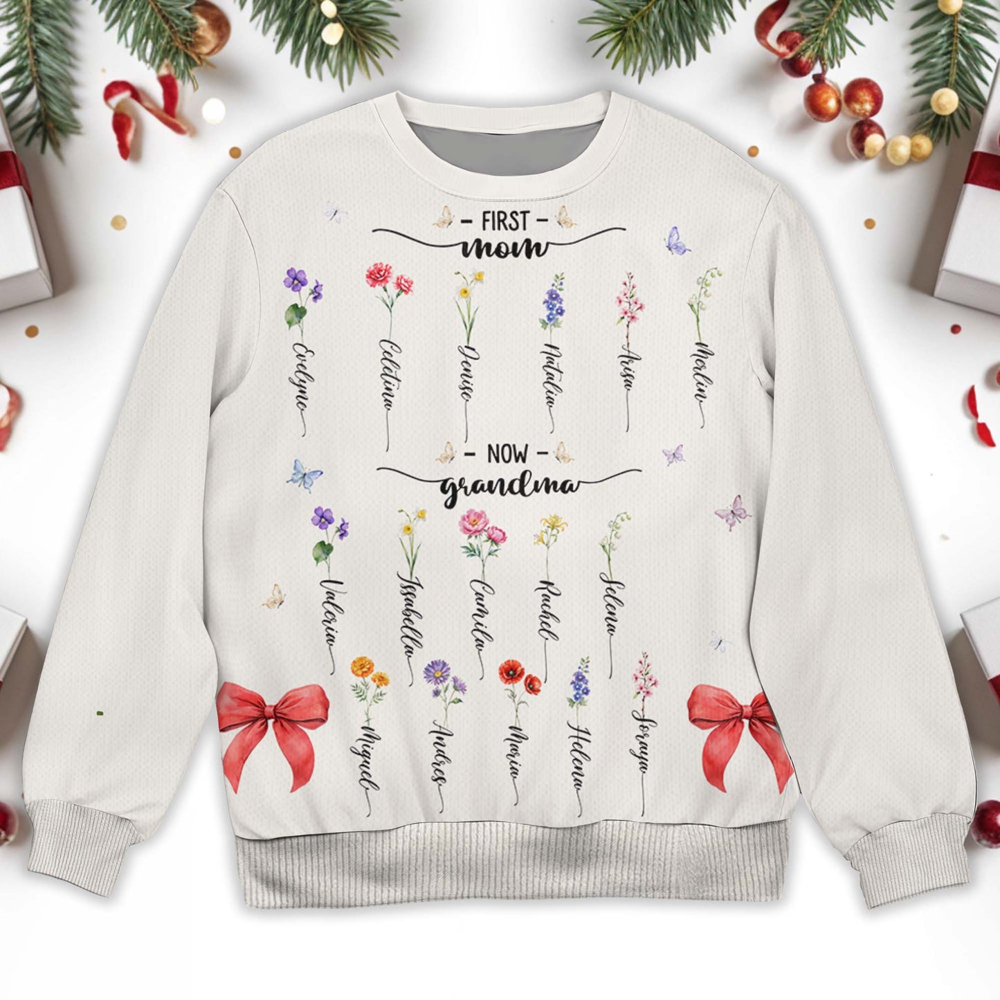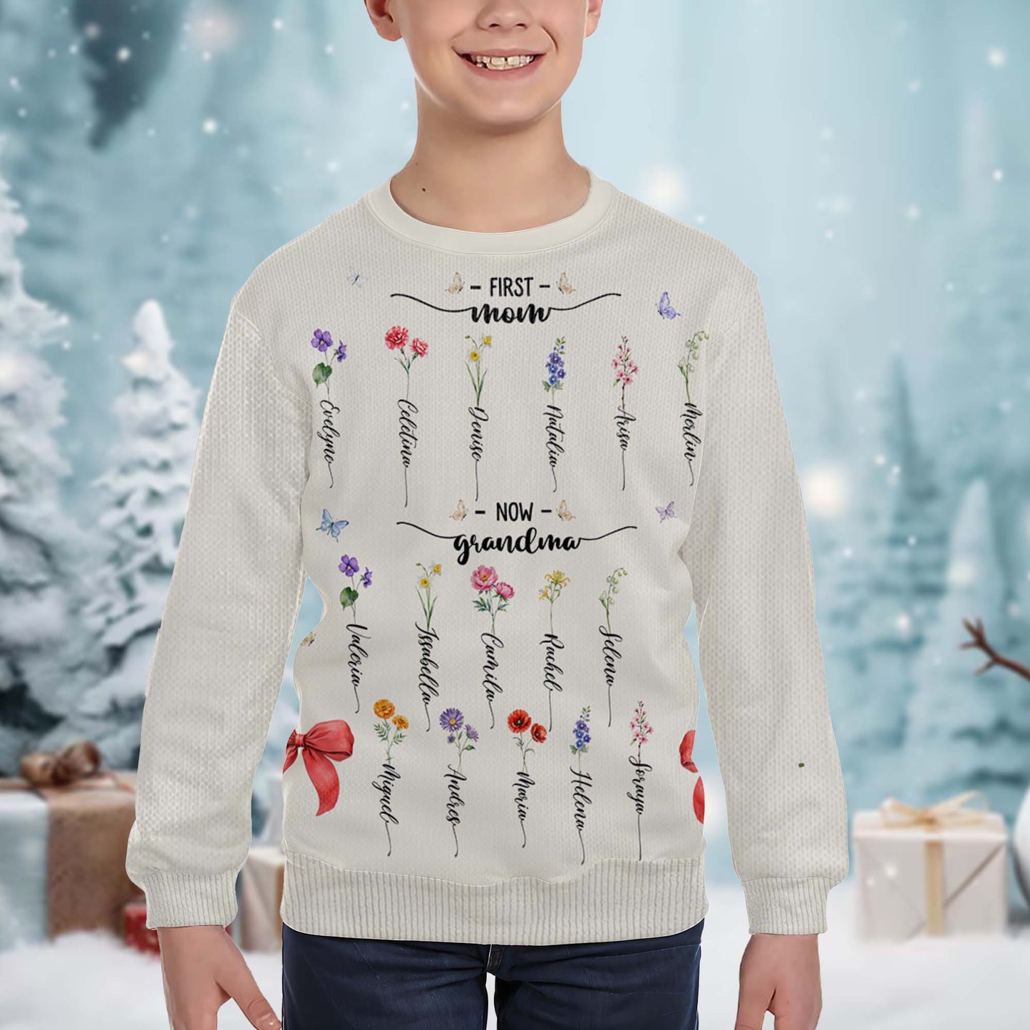 From Mom To Grandma Journey With Love And Flowers Sweatshirt - Personalized Custom Ugly Sweatshirt, Unisex Wool Jumper - GRM023_TWS
