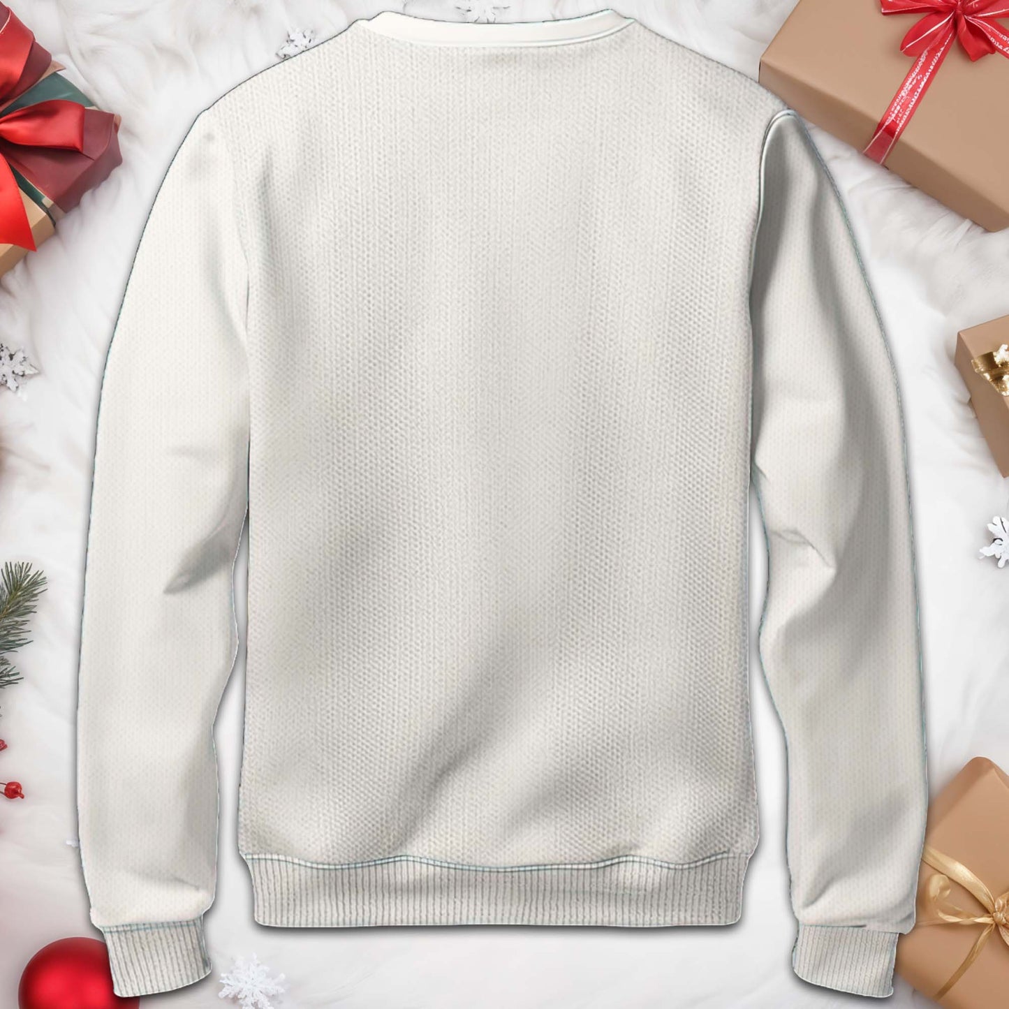 Crafted from 100% premium polyester, this sweatshirt has the soft, warm feel of wool but with added benefits: it’s lightweight, durable, and easy to care for. The fabric offers the perfect balance of warmth and breathability, keeping you comfortable during all your holiday festivities or casual outings.