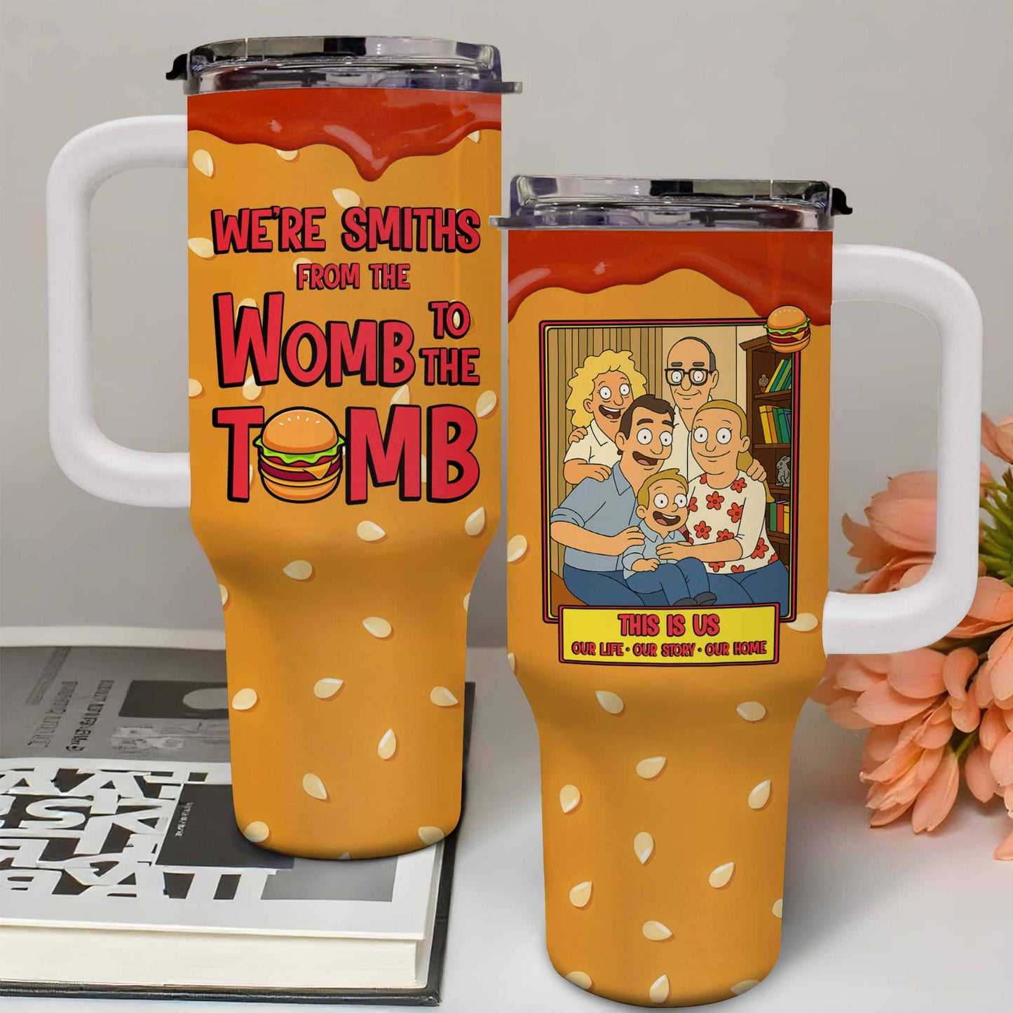 From The Womb To The Tomb Cartoon Family Design,40oz Tumbler With Straw,Gift For Family