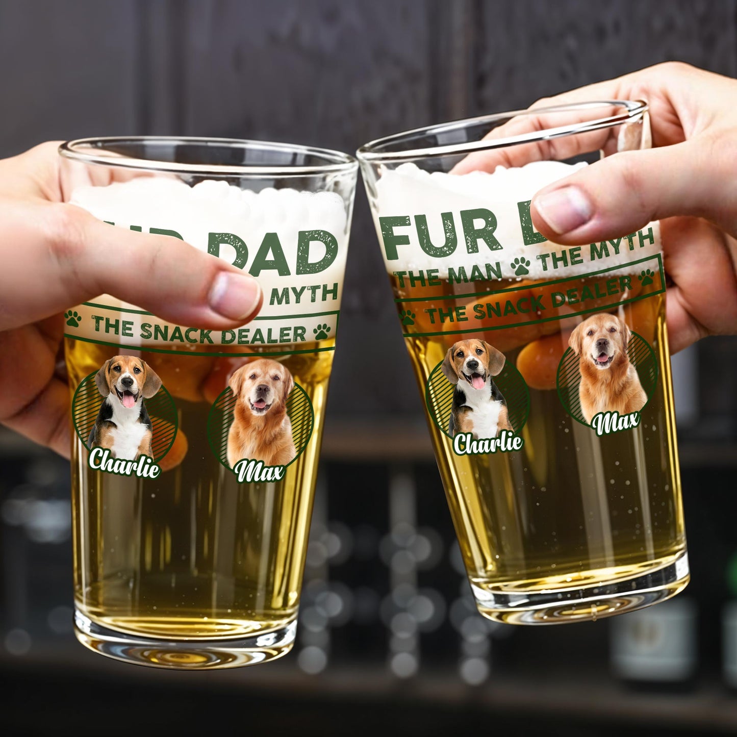 Fur Dad, The Man • The Myth • The Snack Dealer, Dogs And Paw Prints - Personalized Custom Beer Glass - PET111_BRG