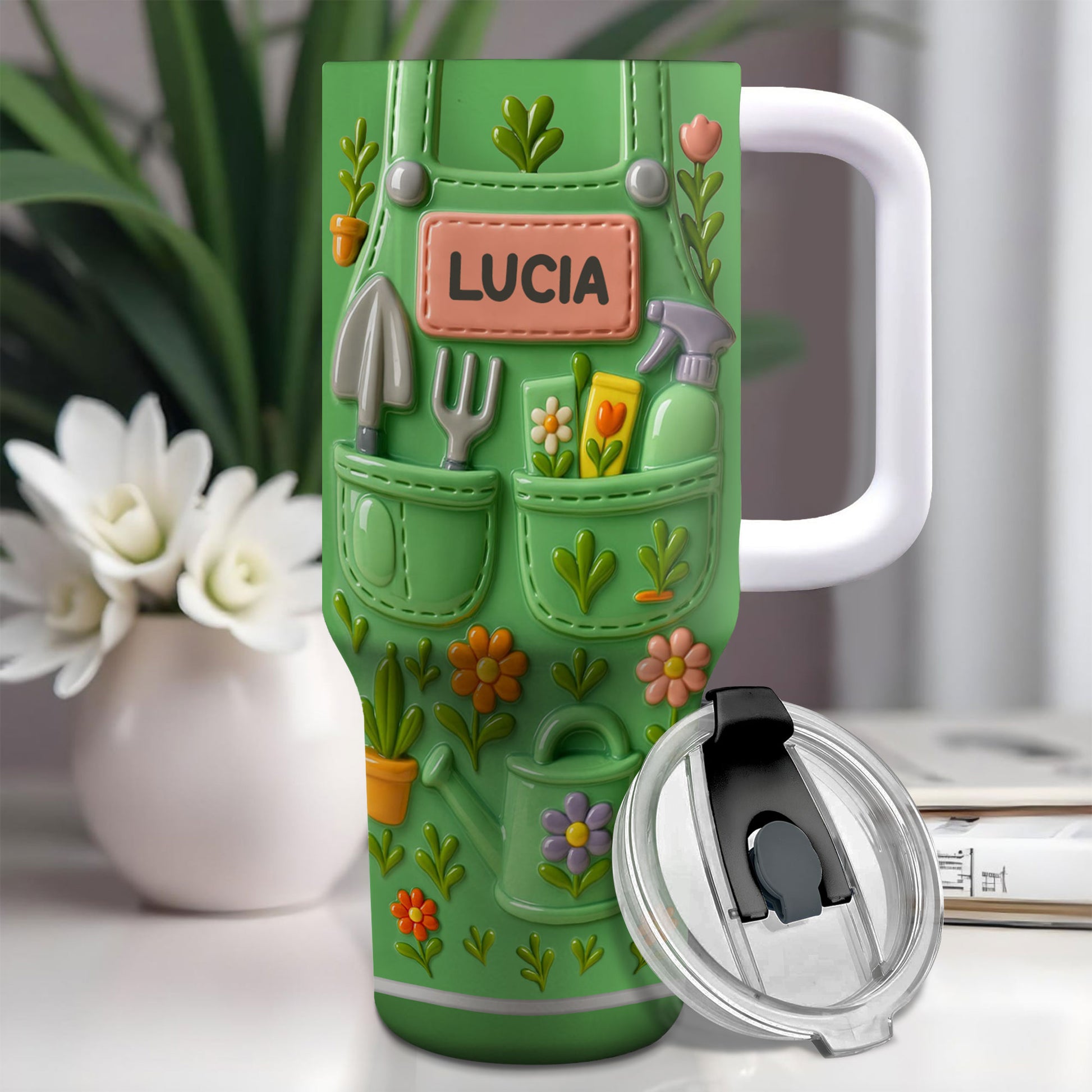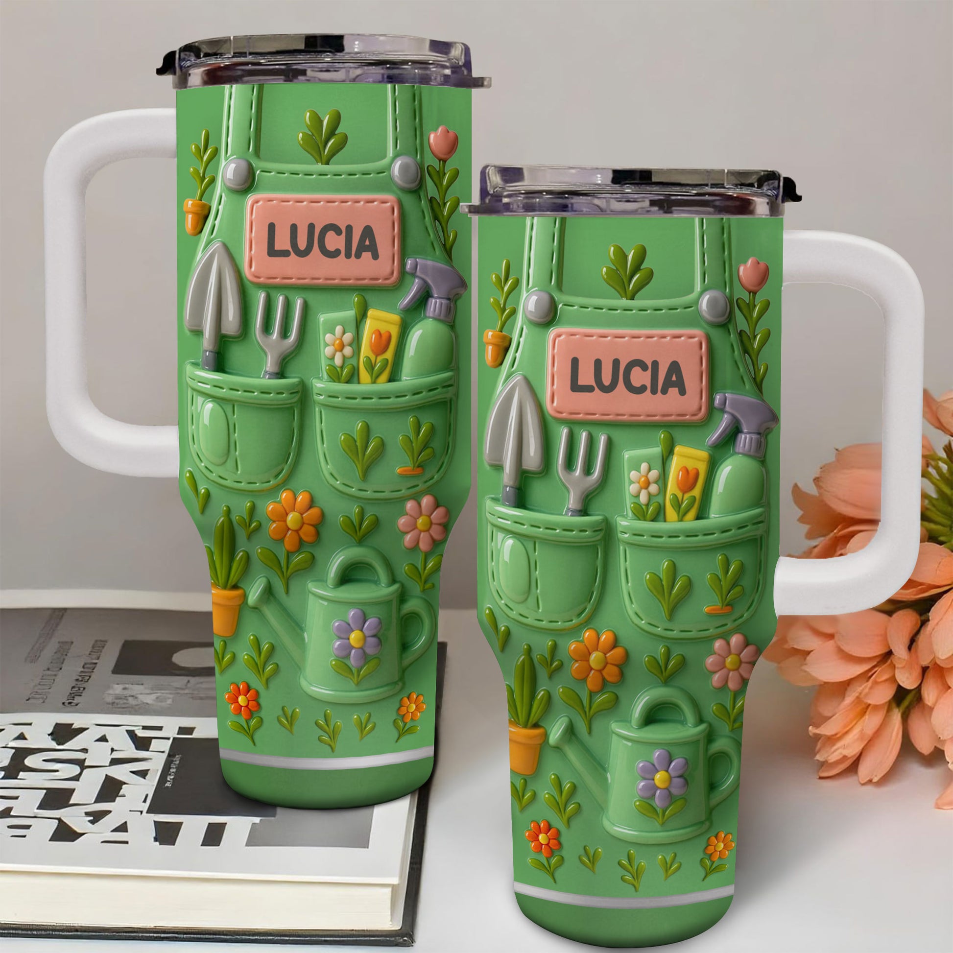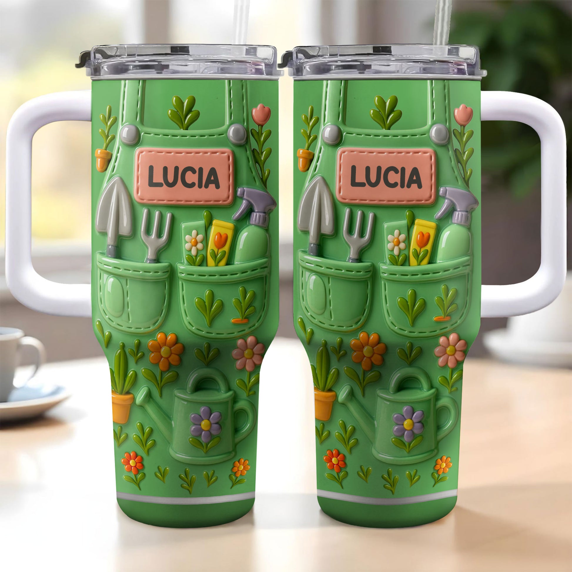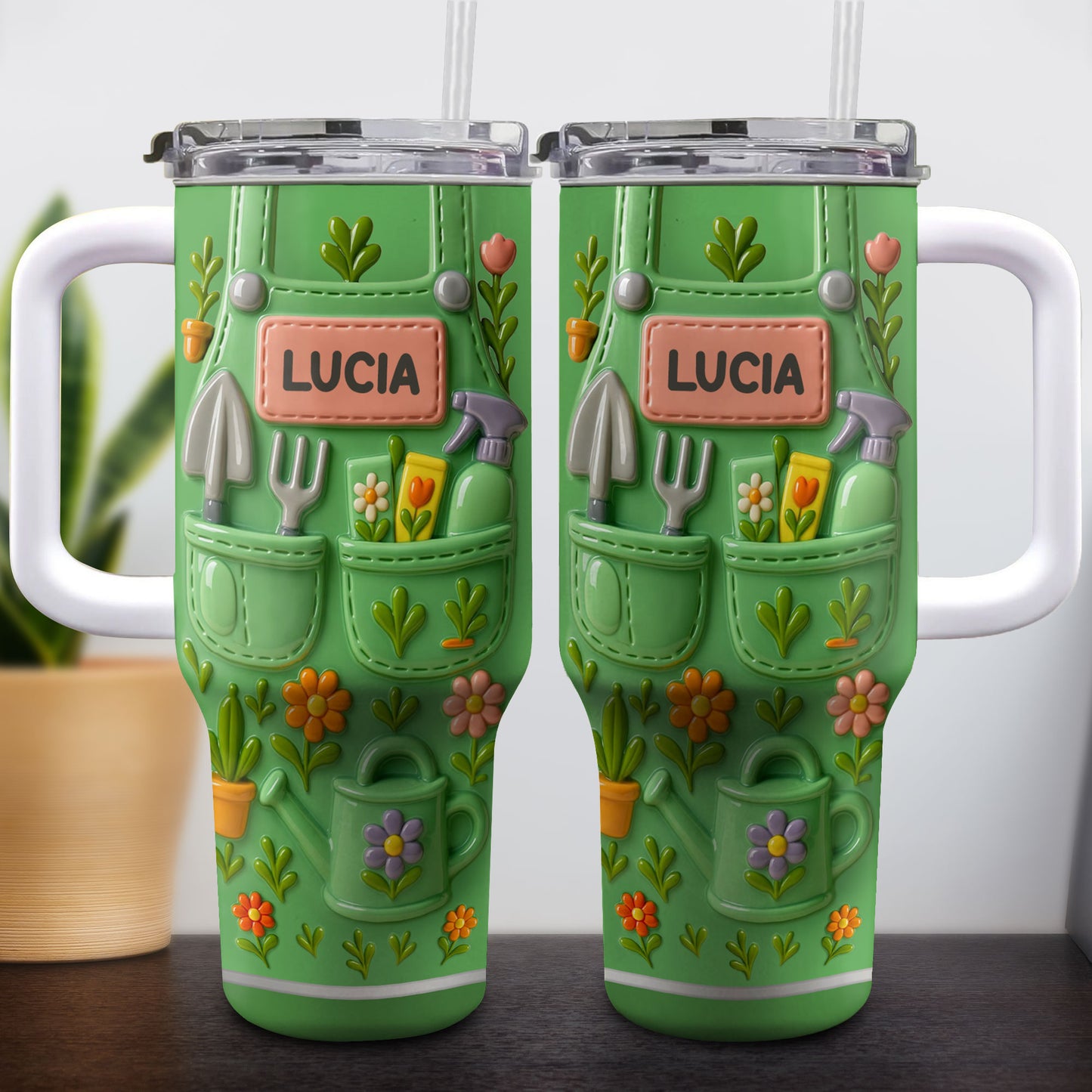 Gardening Tools and Flowers Tumbler With Straw, Gift For Gardeners and Plant Lovers