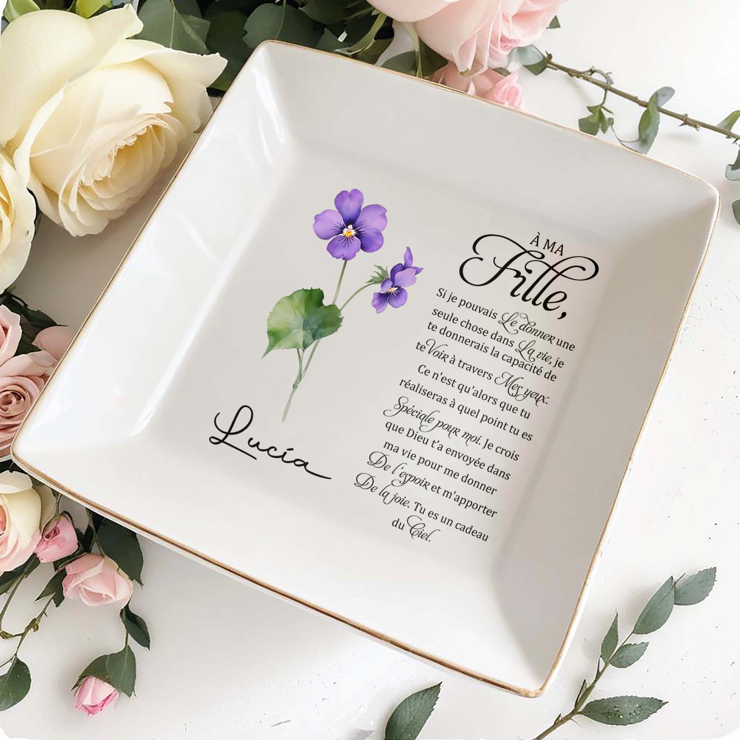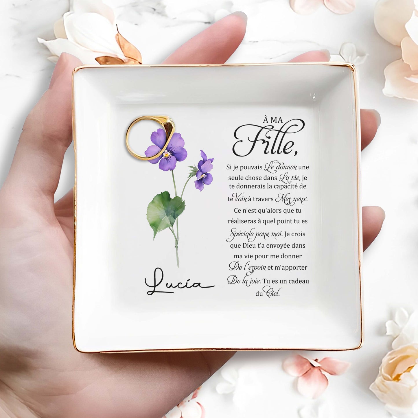 Gift For Daughter With Emotional Quote and Flowers - Personalized Custom Jewelry Dish - DAU039_SCRD