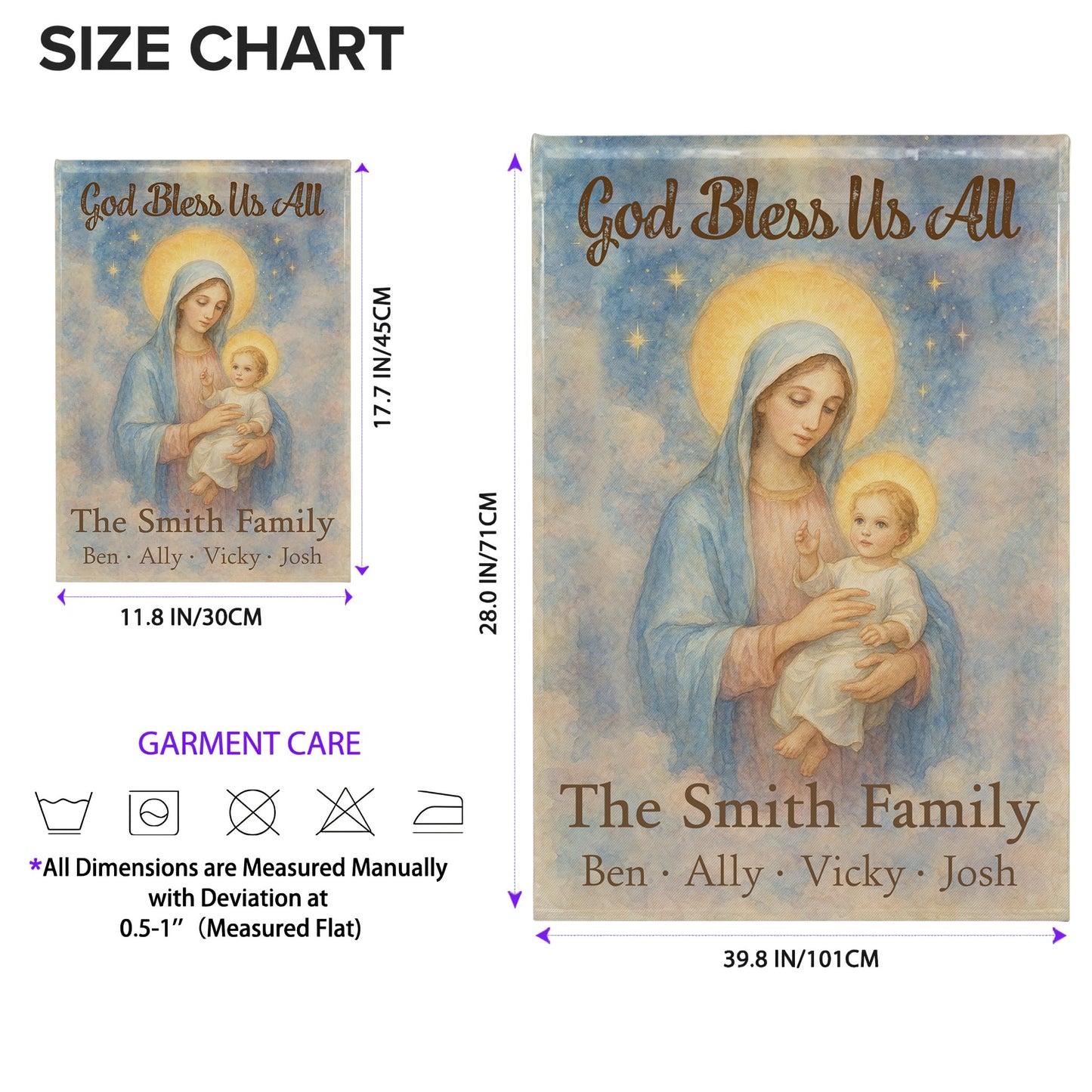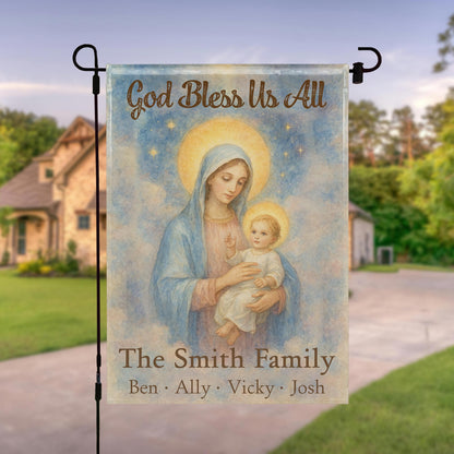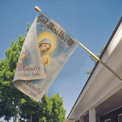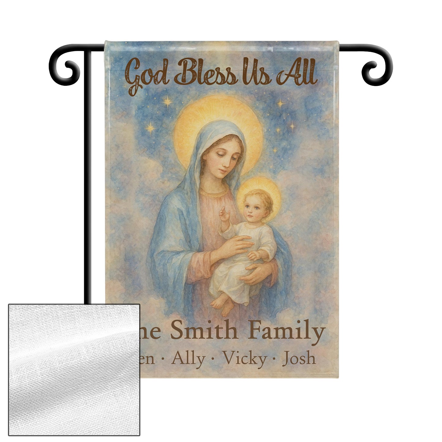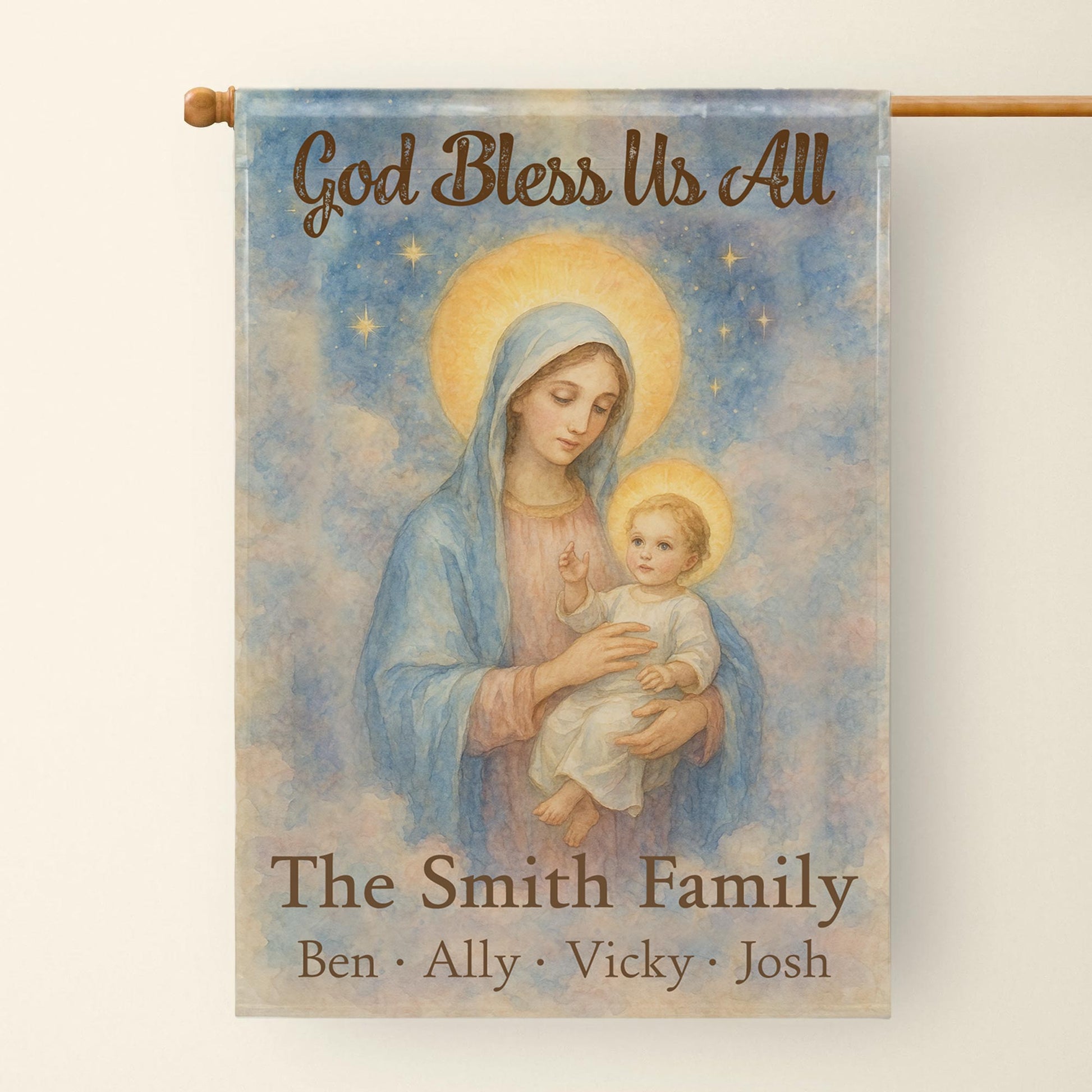 God Bless Us All, Virgin Mary and Child, Personalized Flag, Gift For Religious Families