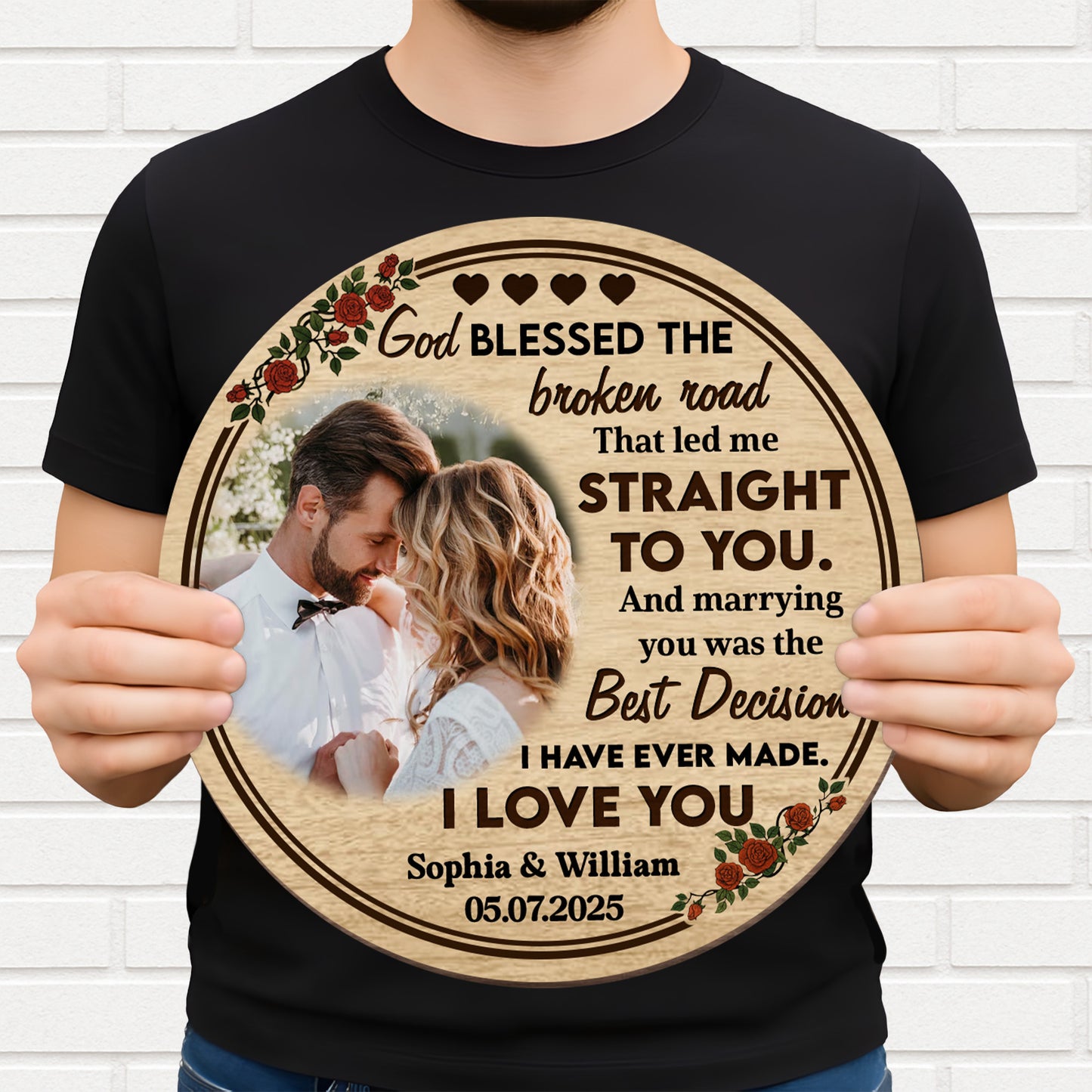 Message: God Blessed The Broken Road That Led Me Straight To You. And Marrying You Was The Best Decision I Have Ever Made. I Love You