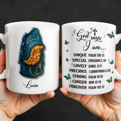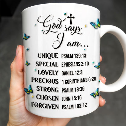 God Says I Am UNIQUE, SPECIAL, LOVELY, Personalized Custom Coffee Mug, Gift For Devotees