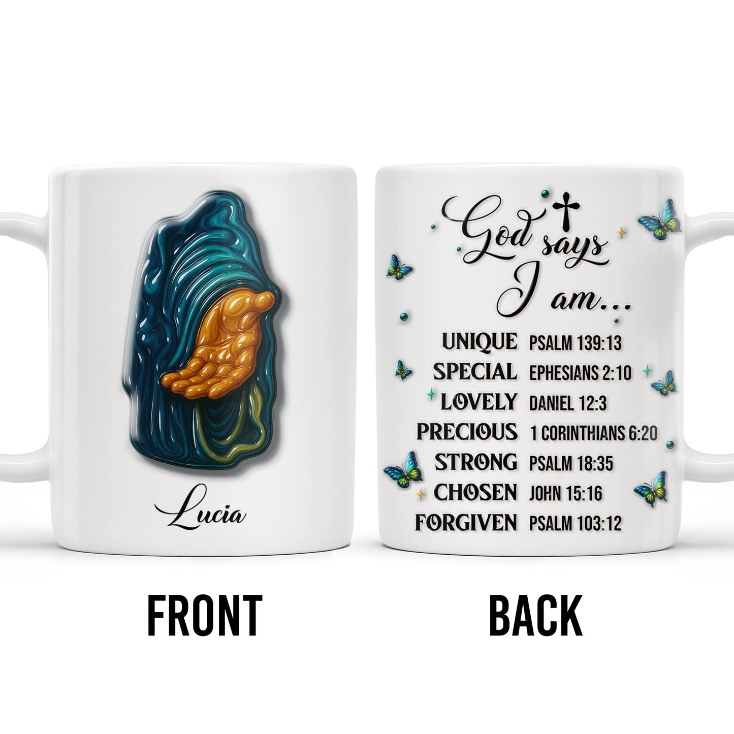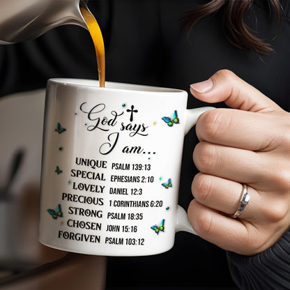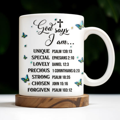 God Says I Am UNIQUE, SPECIAL, LOVELY, Angel Wing and Butterflies - Personalized Custom Coffee Mug - FTH048_MG