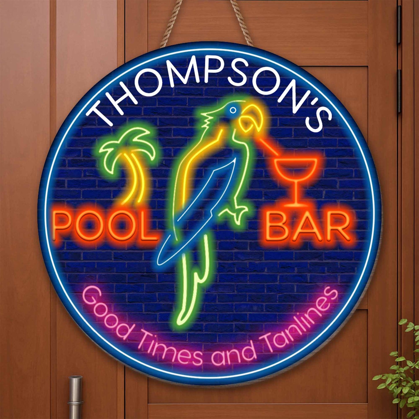 Good Times and Tanlines Neon Palm Tree and Parrot Sign,Custom Shaped Wood Sign,Gift For Pool Owners