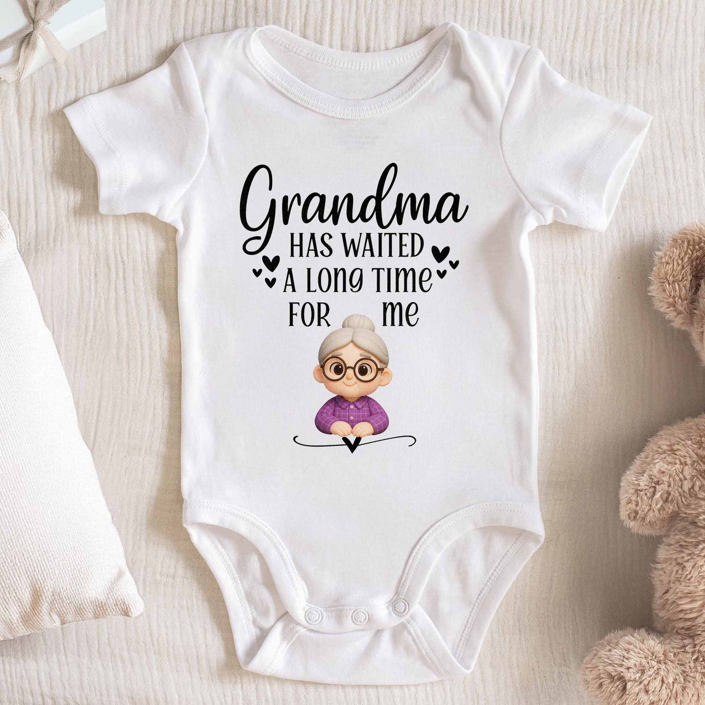 Grandma Has Waited A Long Time For Me Onesie, Custom Baby Wear, Gift For Family