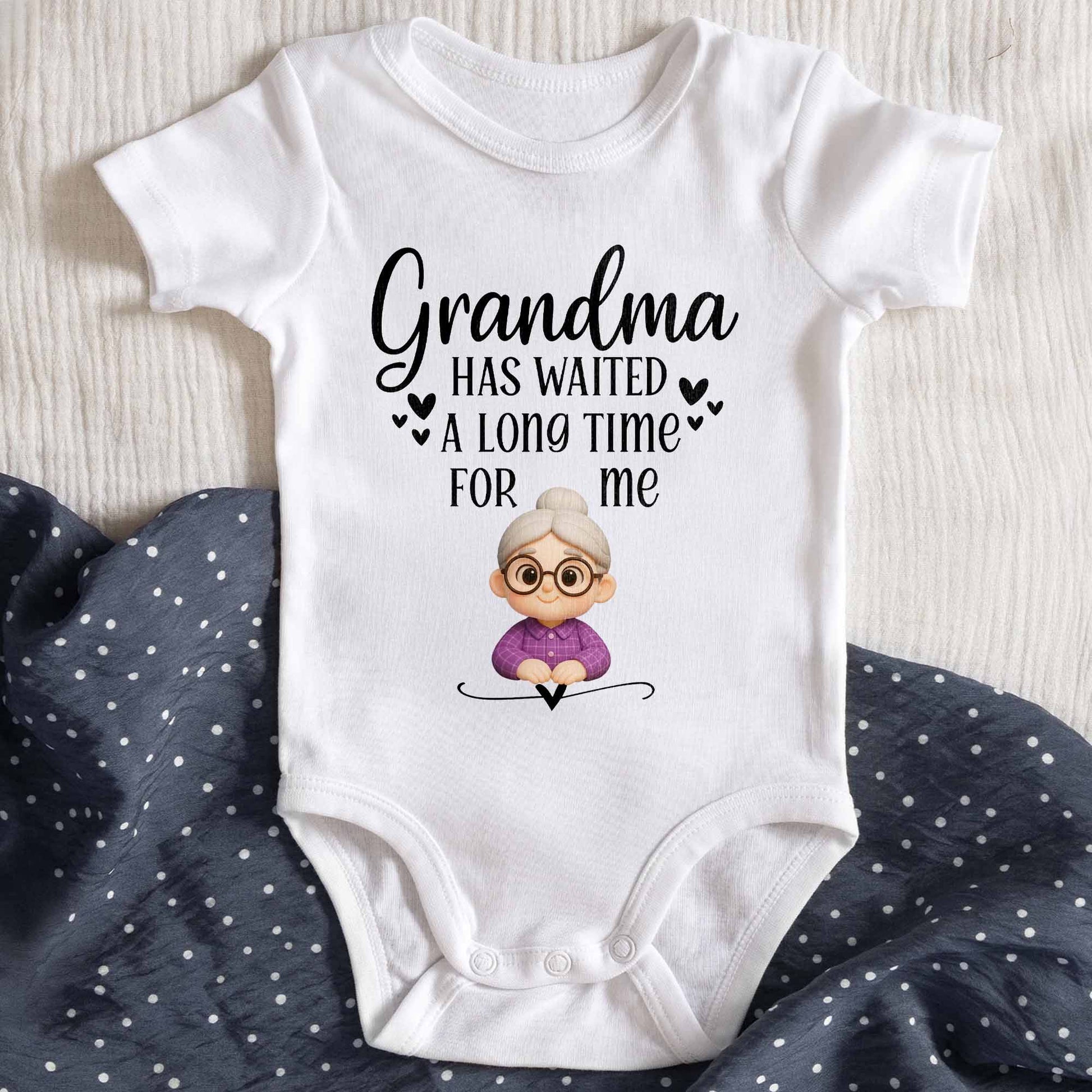 Grandma Has Waited A Long Time For Me Onesie - Personalized Custom Baby Onesie - GRK083_ONES