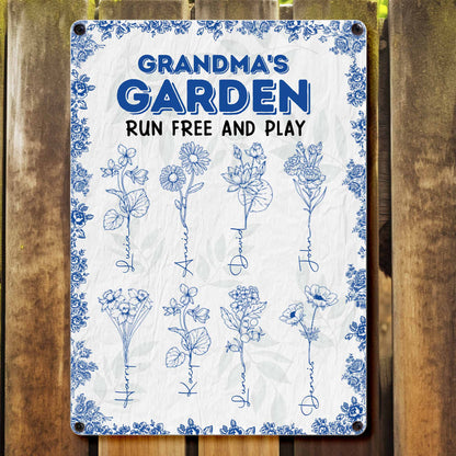 Grandma's Garden, Run Free And Play With Flowers - Personalized Metal Sign - GRM009_MSIGN