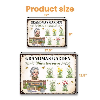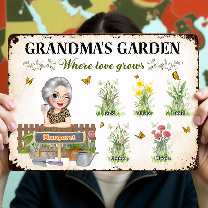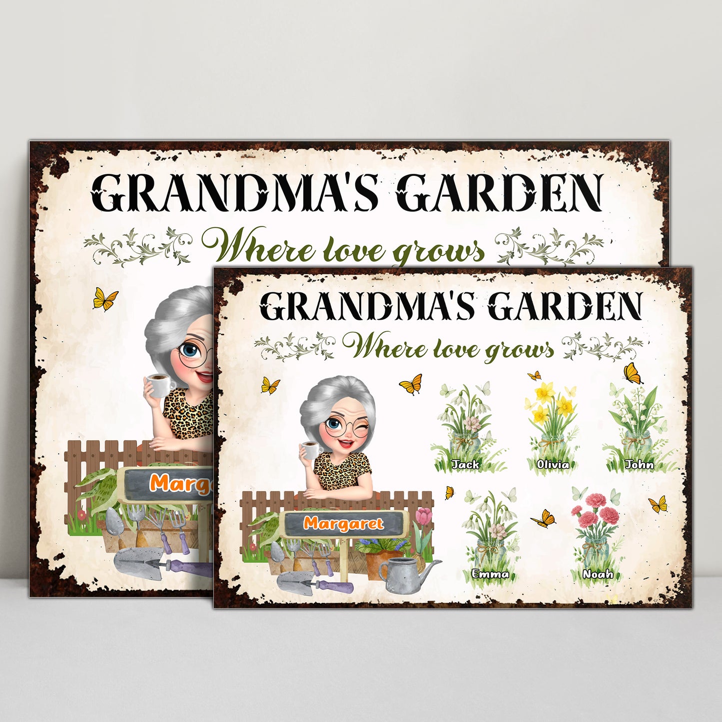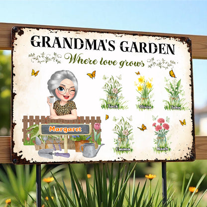 Grandma's Garden Where Love Grows, Personalized Metal Sign, Gift for Grandmothers