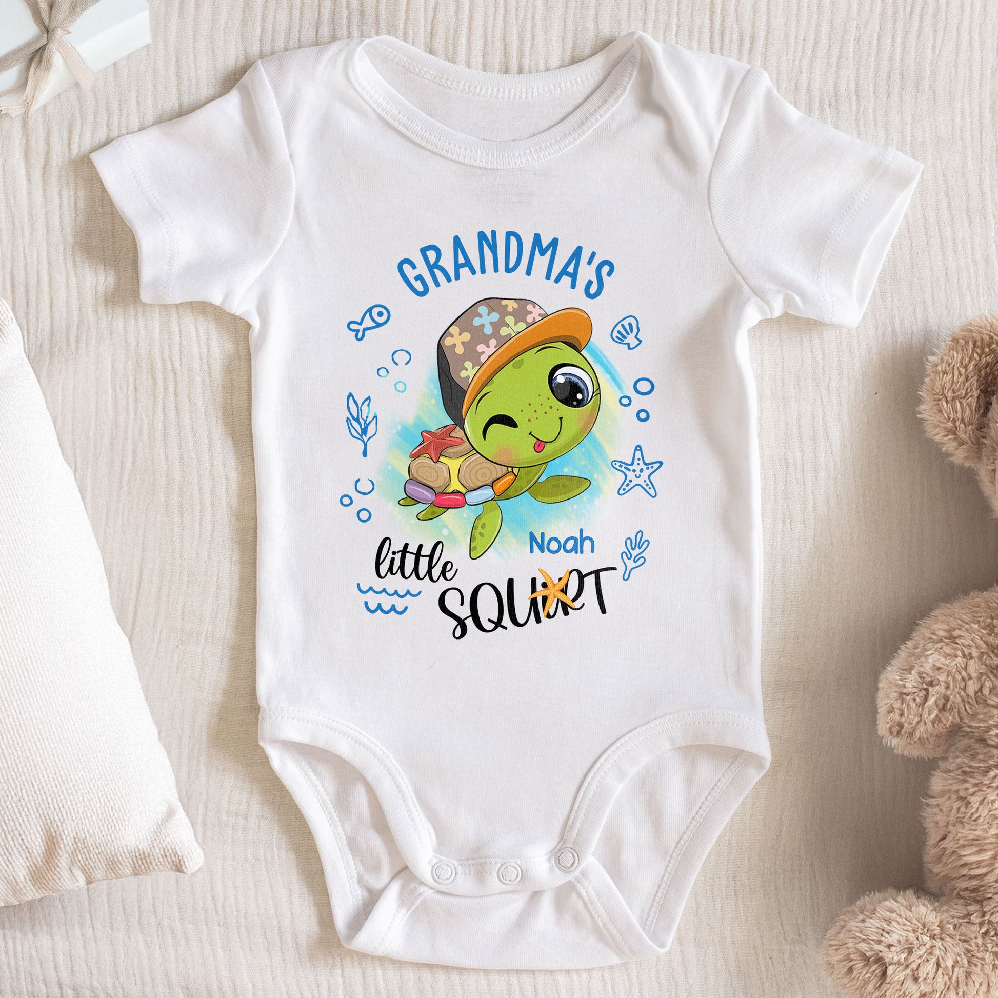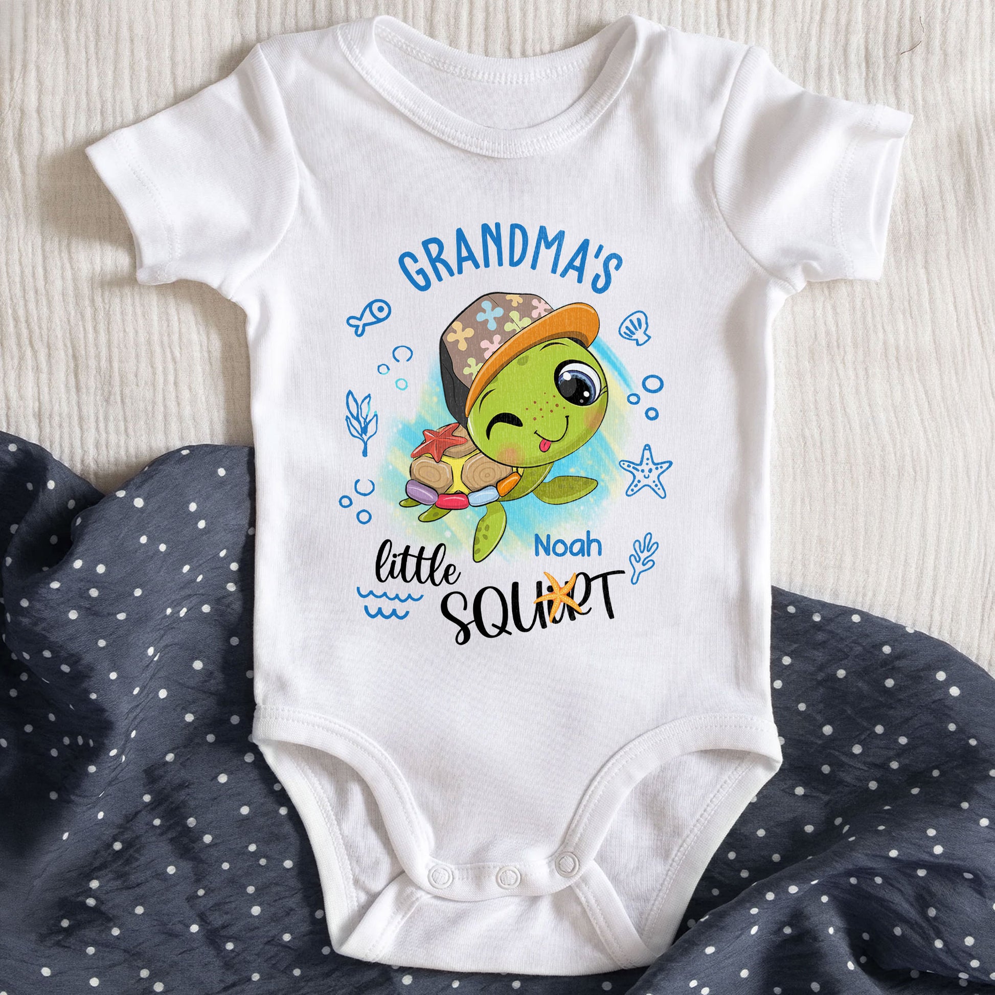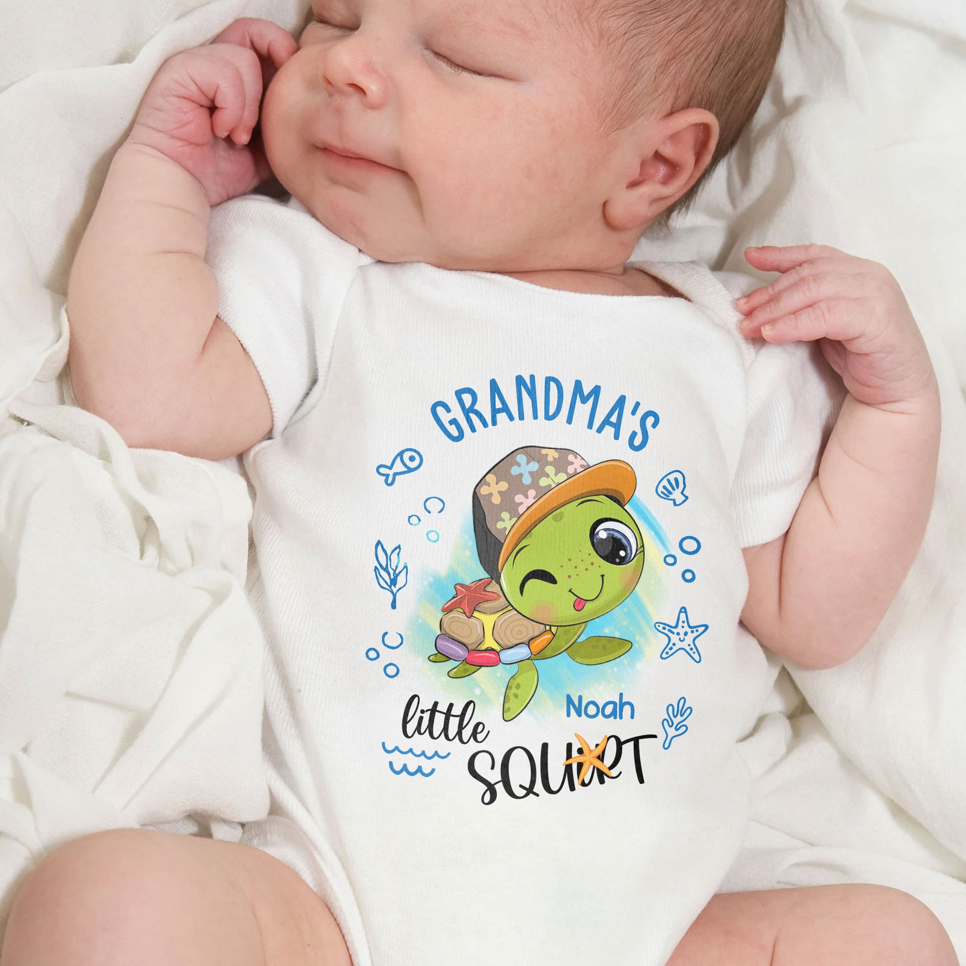 Grandma's Little Squirt Turtle Design,Personalized Custom Baby Onesie,Gift For Grandchildren