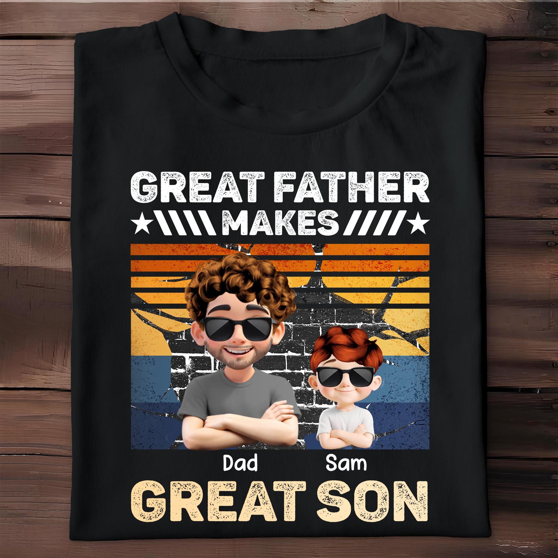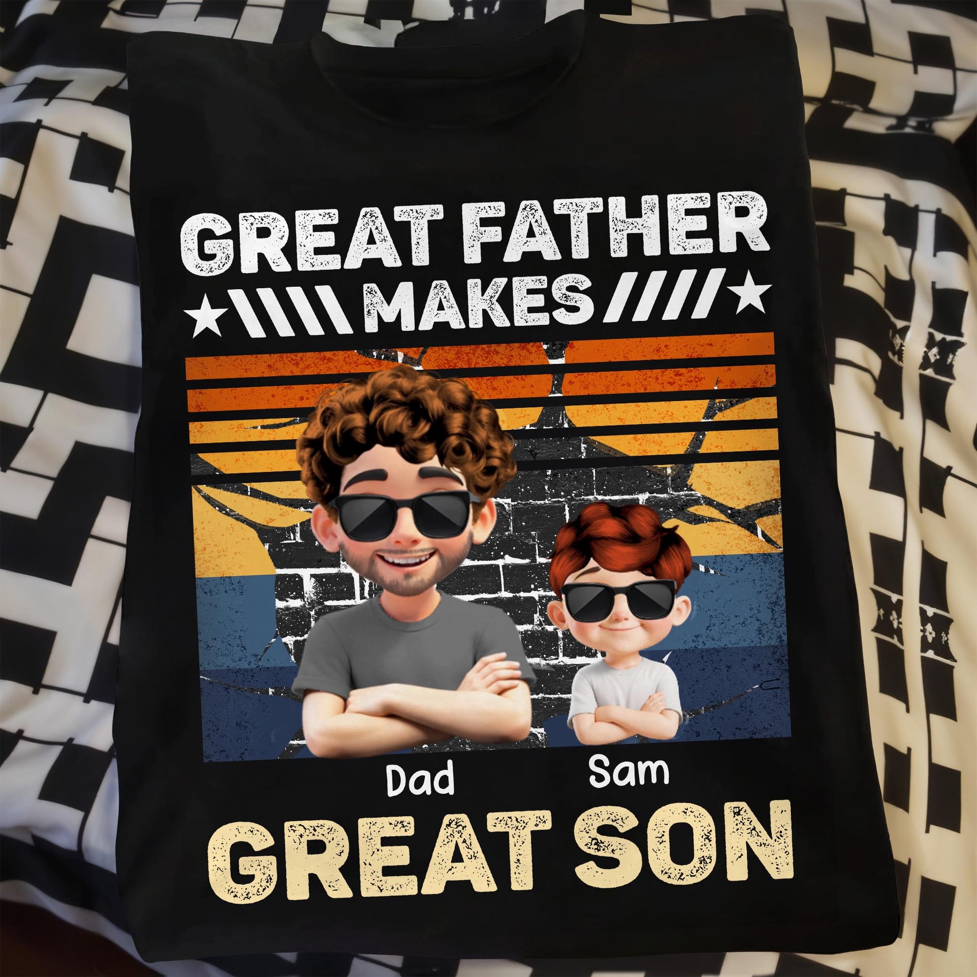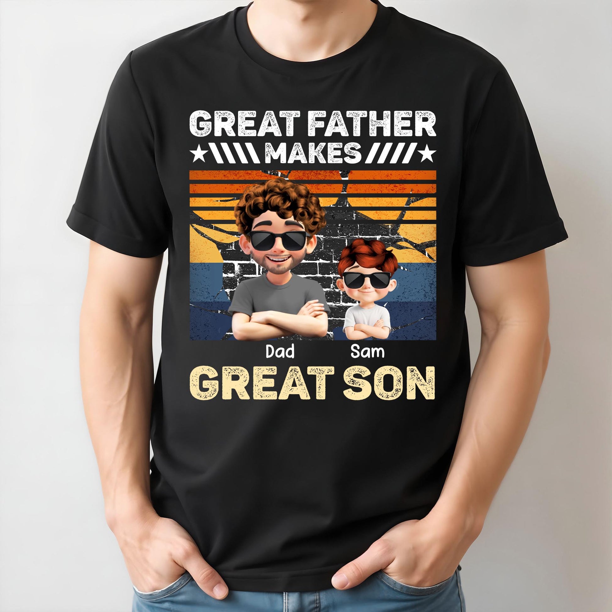 Great Father Make Great Son, Stars and Stripes, T-shirt, Gift For Dads and Sons