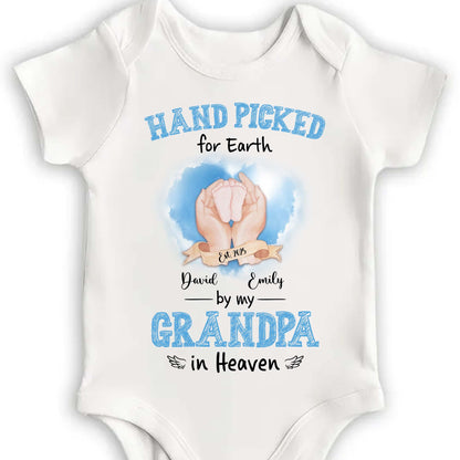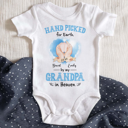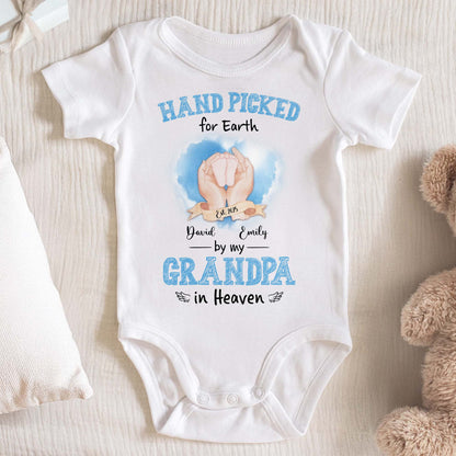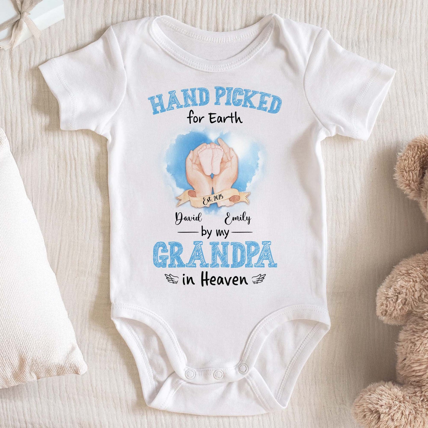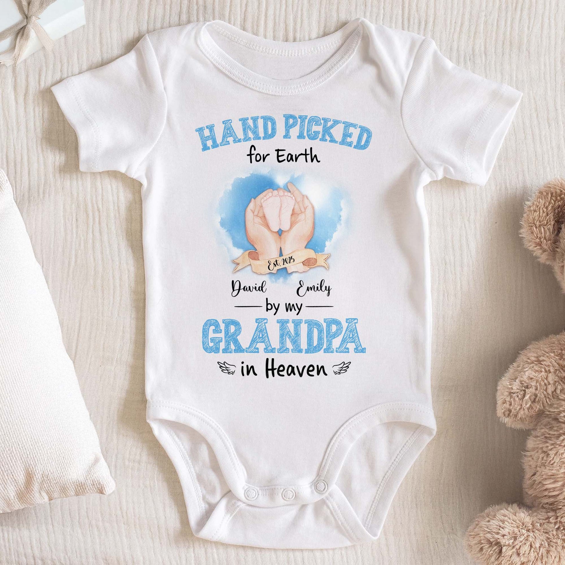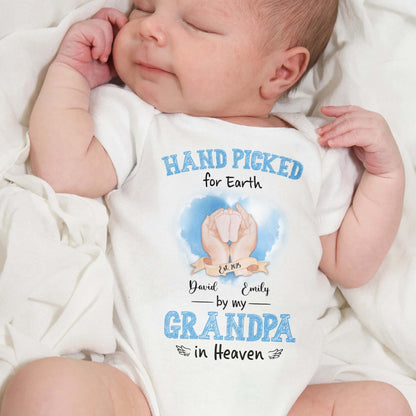 Hand Picked for Earth by my GRANDPA in Heaven, Praying Hands and Wings, Personalized Custom Baby Onesie, Gift for Family and Grandchildren