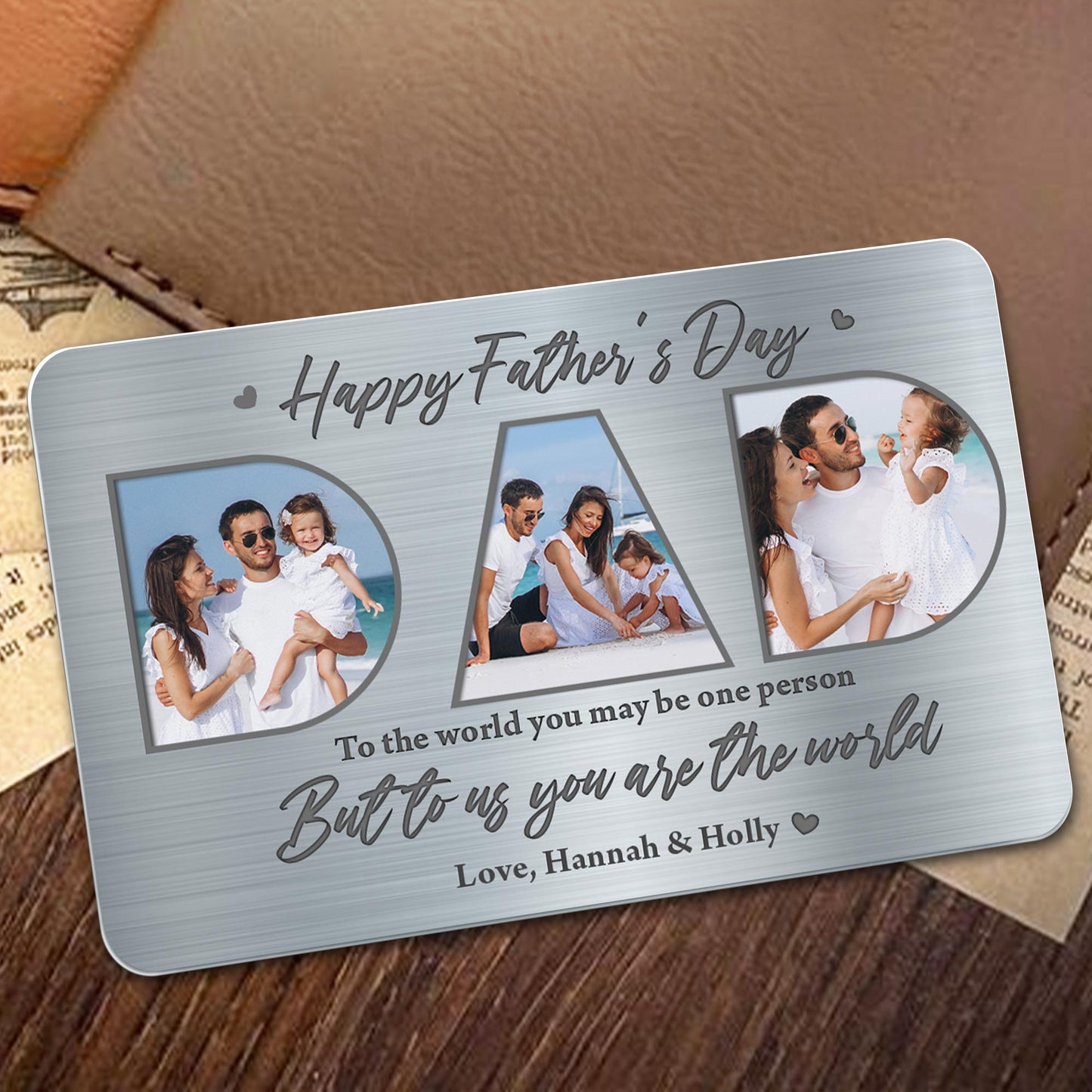 Happy Father's Day, To The World You May Be One Person But To Us You Are The World, Photo Frames, Personalized Aluminum Wallet Card, Gift For Dad