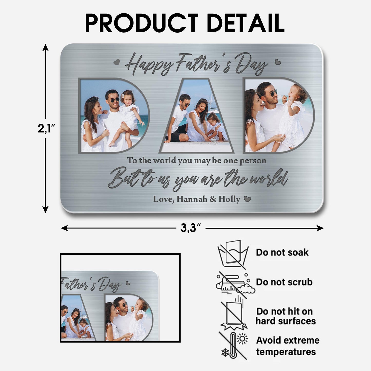 Happy Father's Day, To The World You May Be One Person But To Us You Are The World, Photo Frames - Personalized Aluminum Wallet Card - DAD022_ALCA