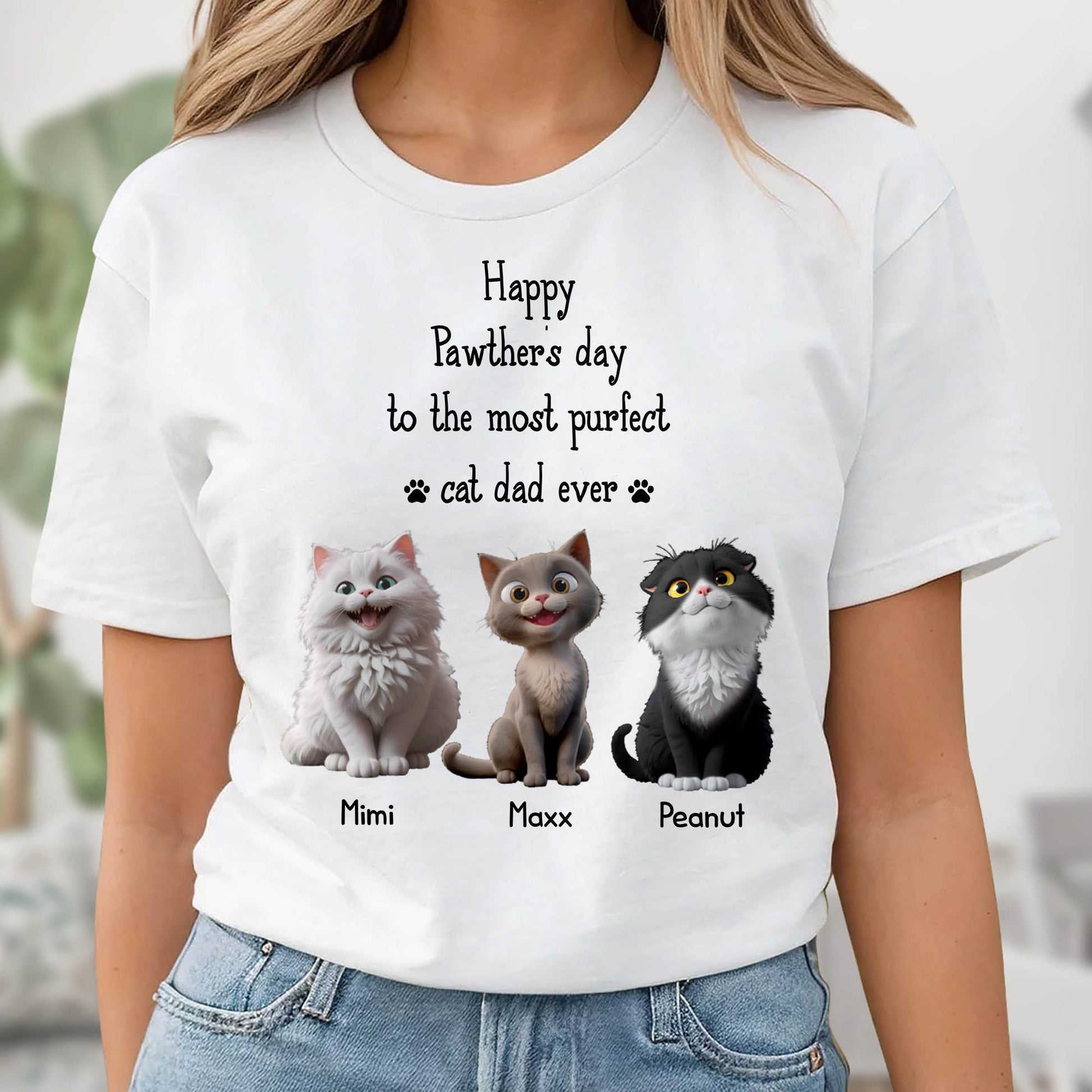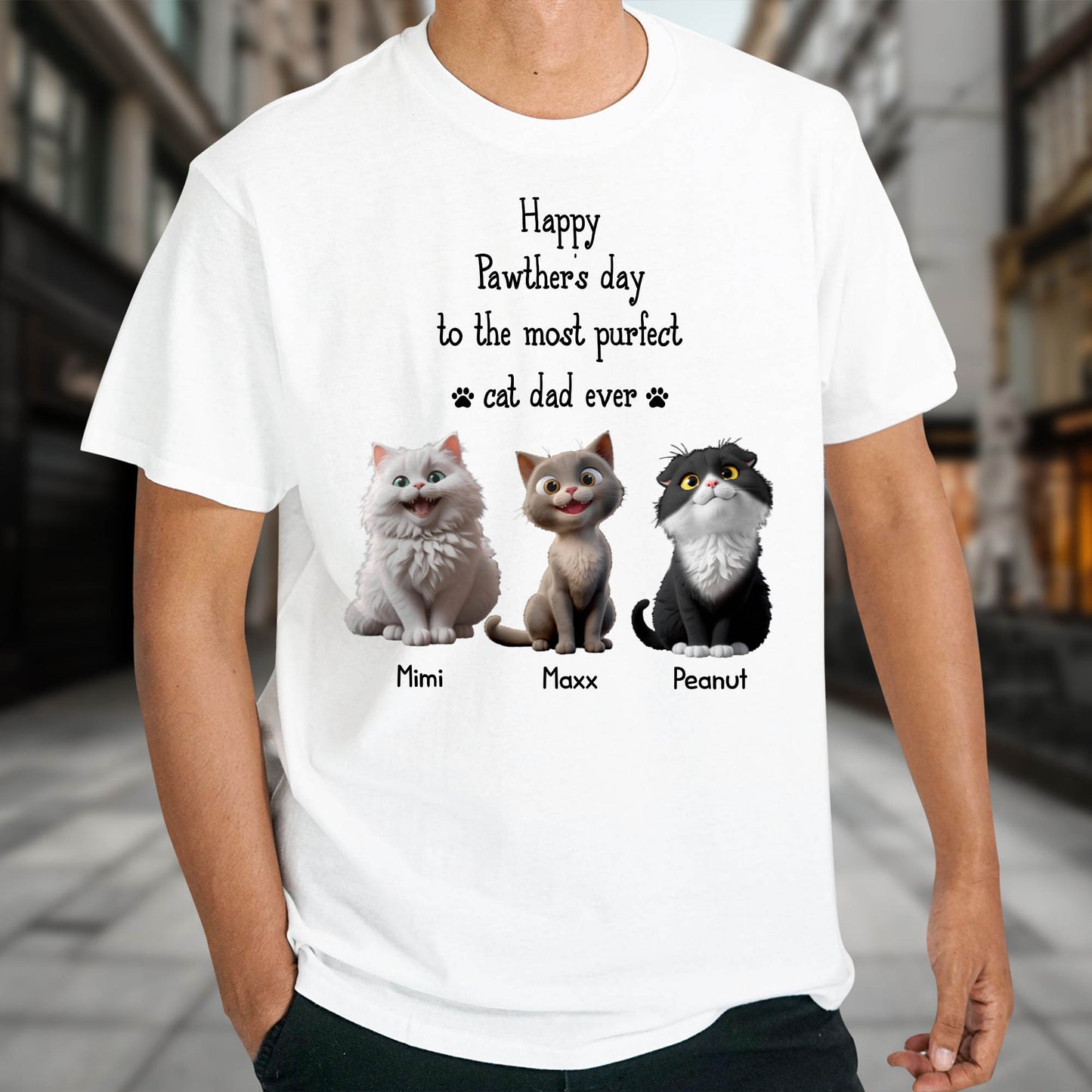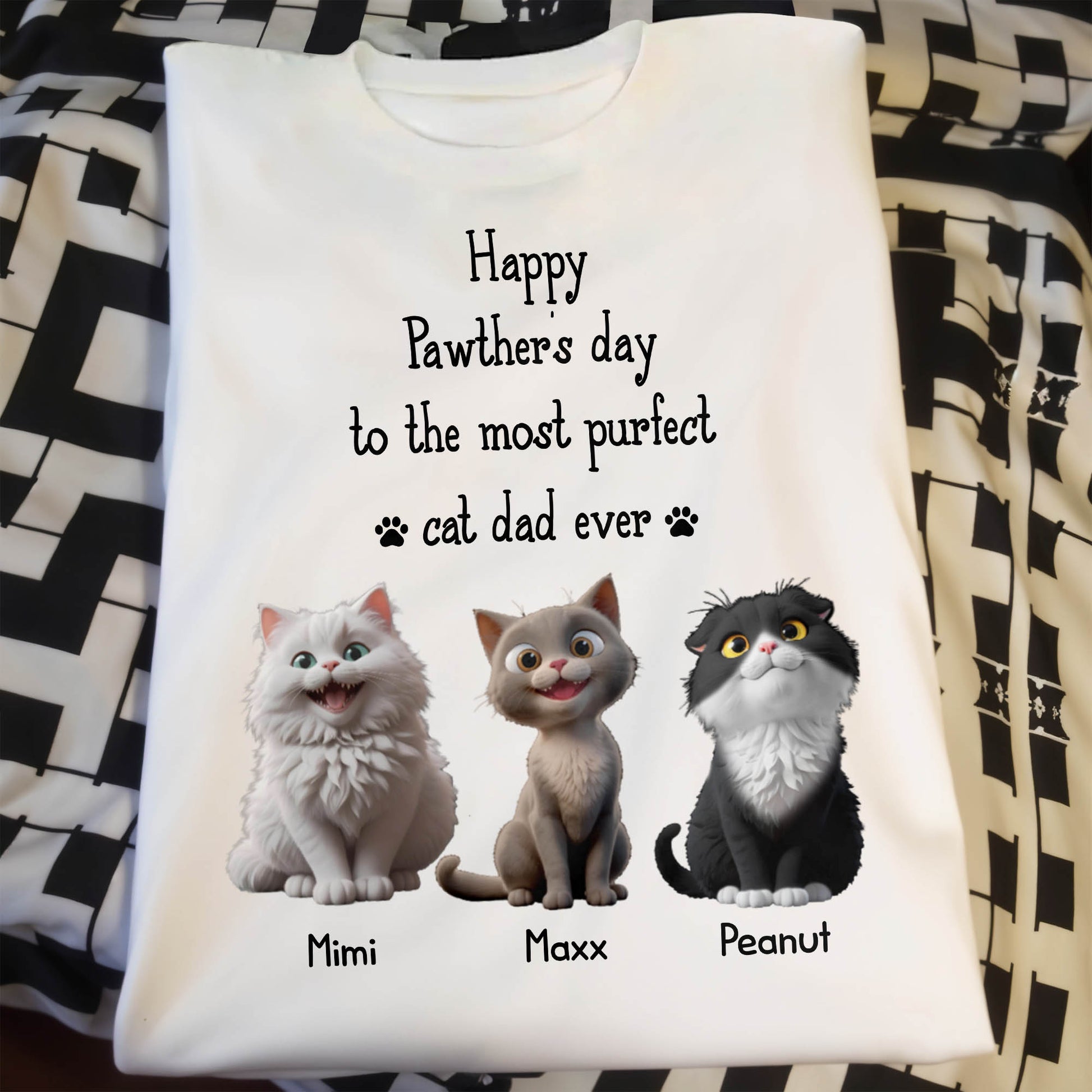 Happy Pawther's Day To The Most Purfect Cat Dad Ever, Cats - Personalized Custom Unisex T-shirt, Hoodie - DAD113_WBAS