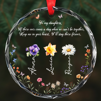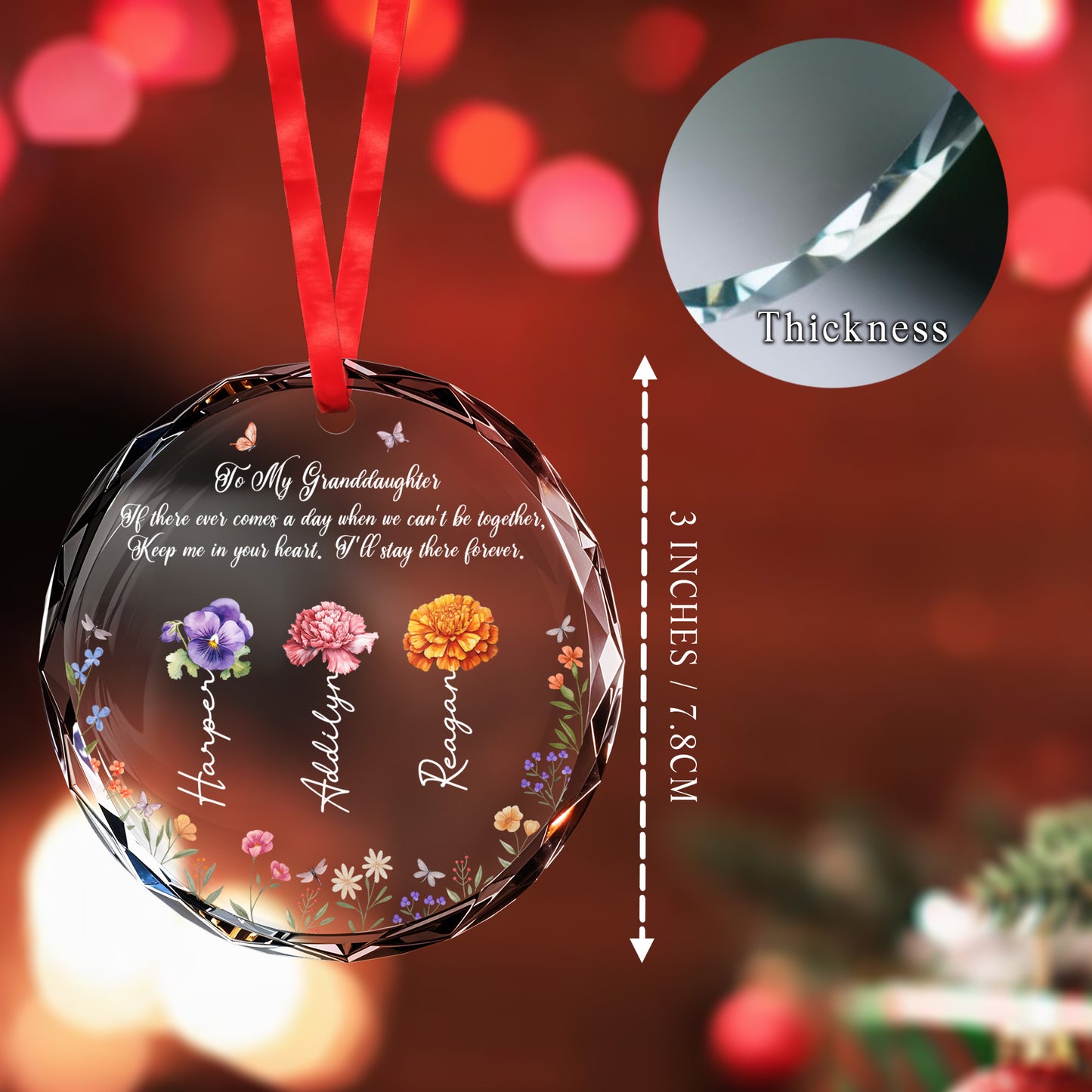 Heartfelt Message To Granddaughter With Flowers and Butterflies - Personalized Custom Circle Glass Ornament - GDT057_CGOR