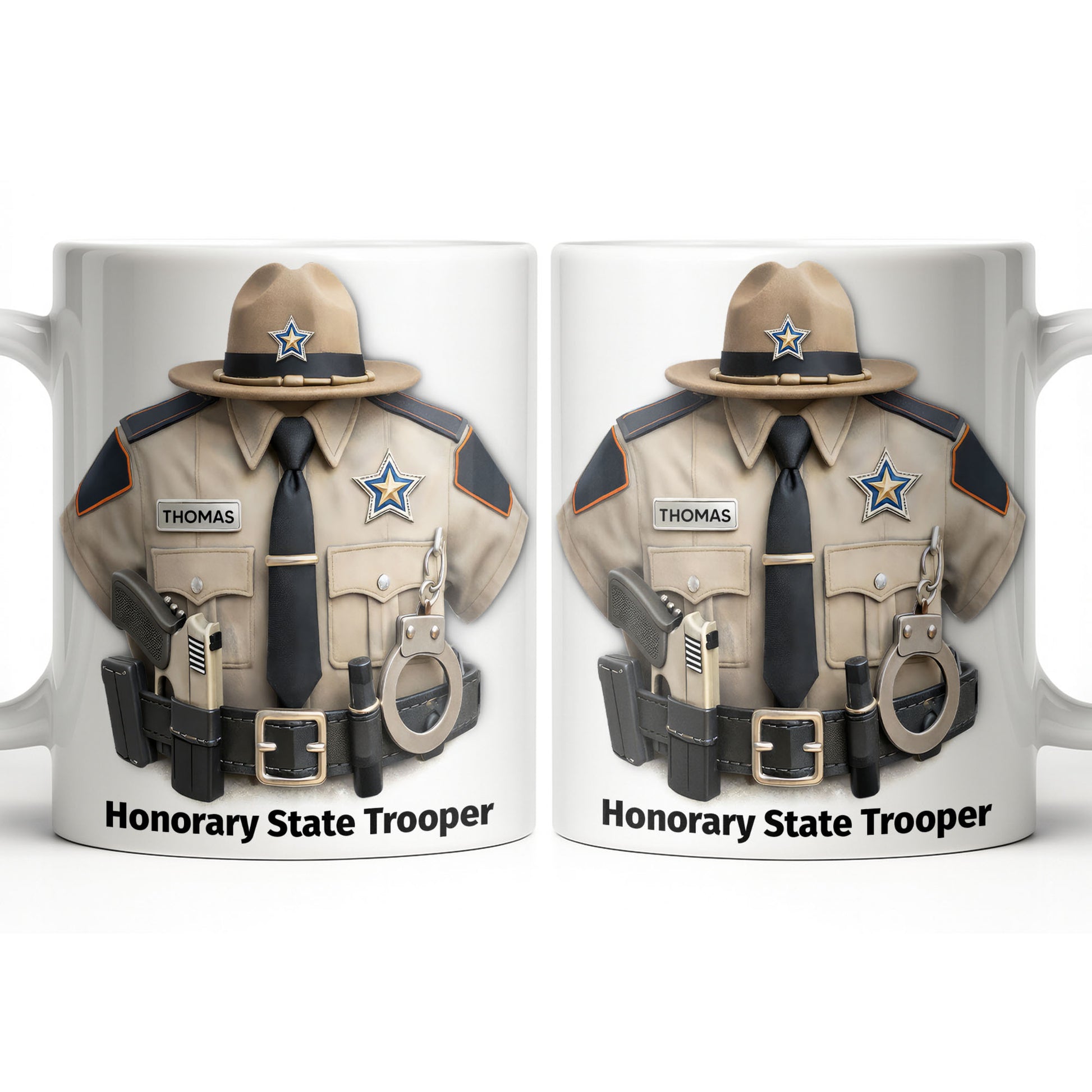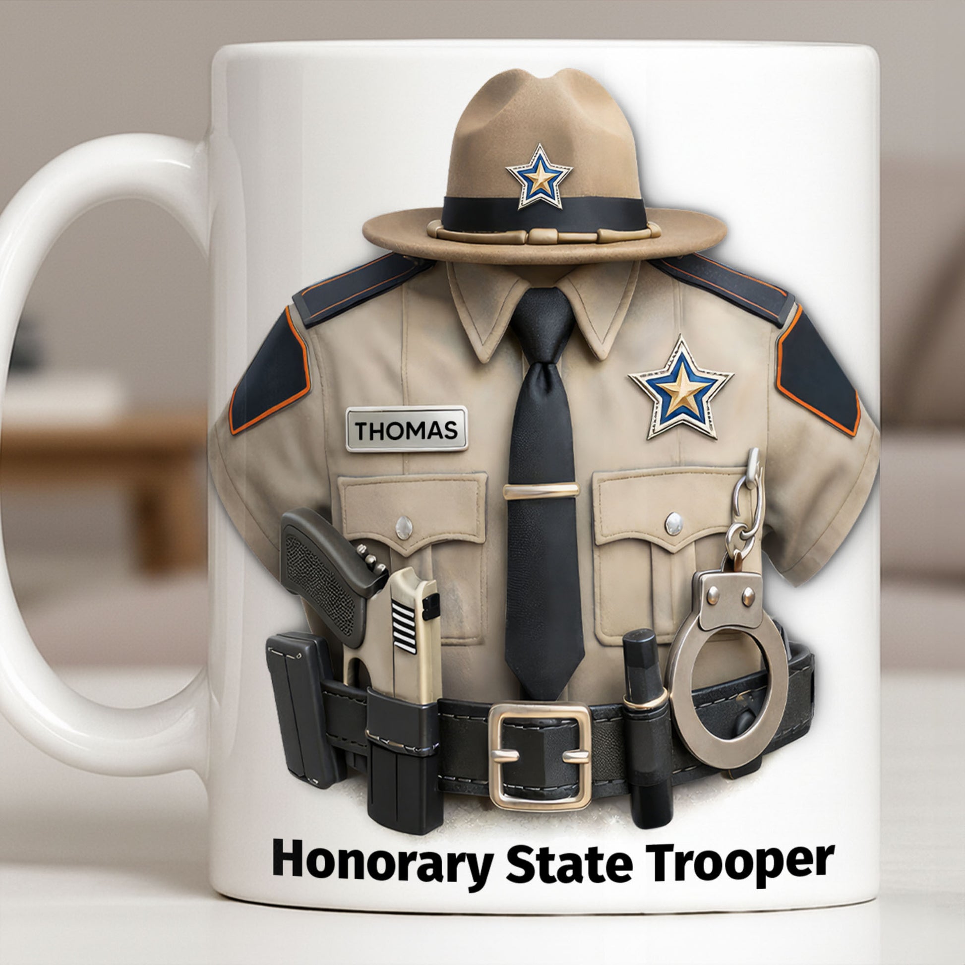 Honorary State Trooper Police Uniform Badge Handcuffs, Custom Coffee Mug, Great Gift For Law Enforcement
