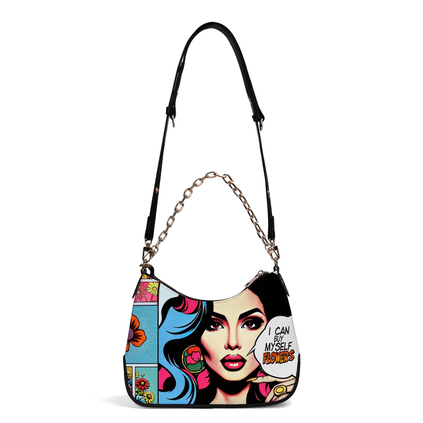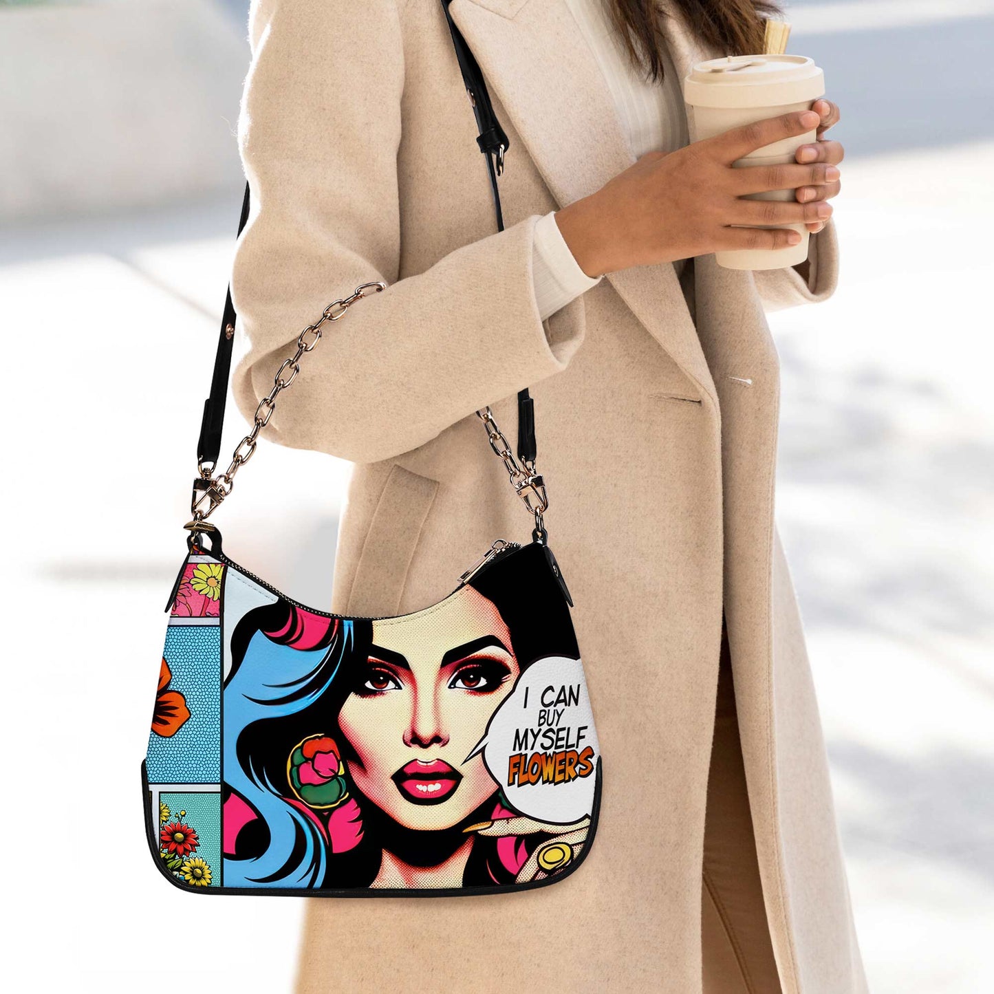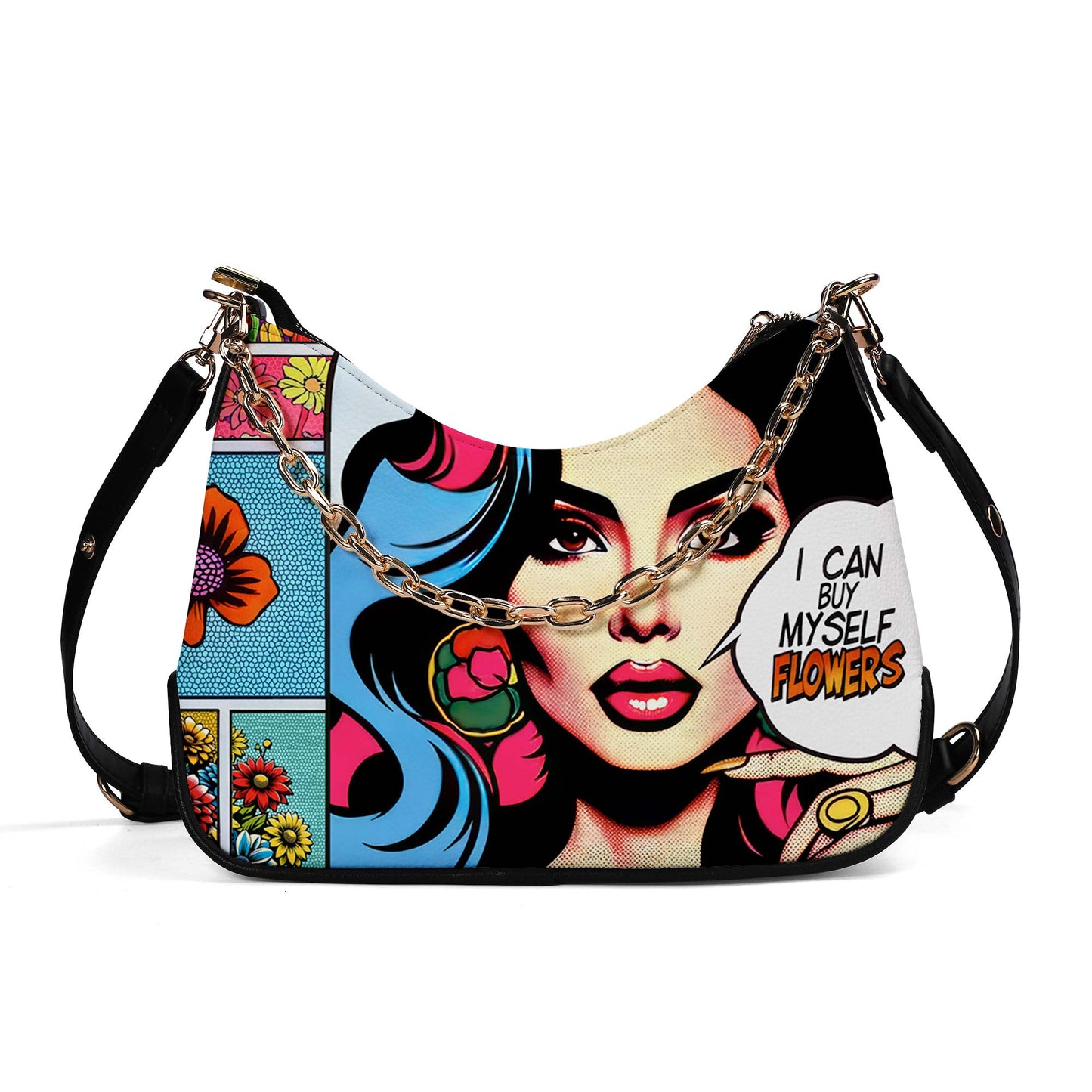 I Can Buy Myself Flowers - Pop Art Personalized Custom Crossbody Bag, All Over Print Chain - Gift For Strong Women & Pop Art Lovers
