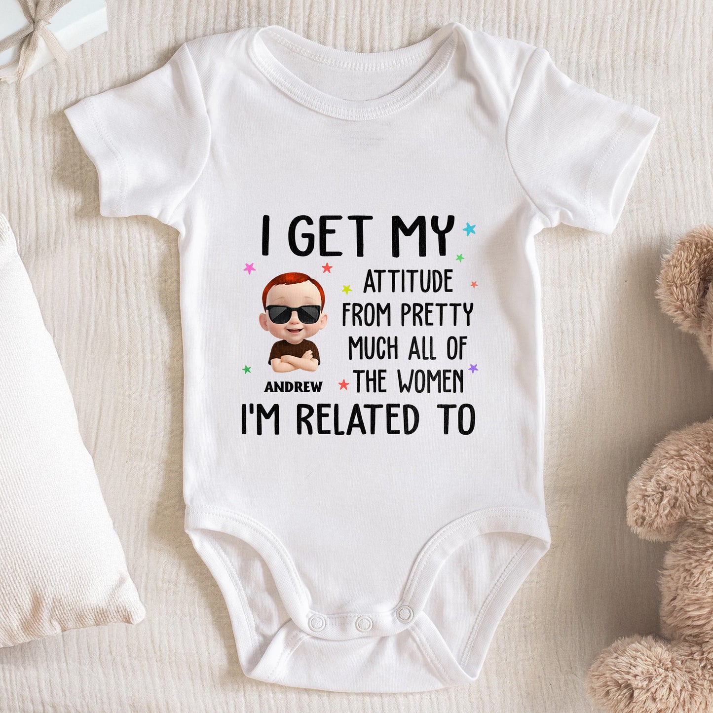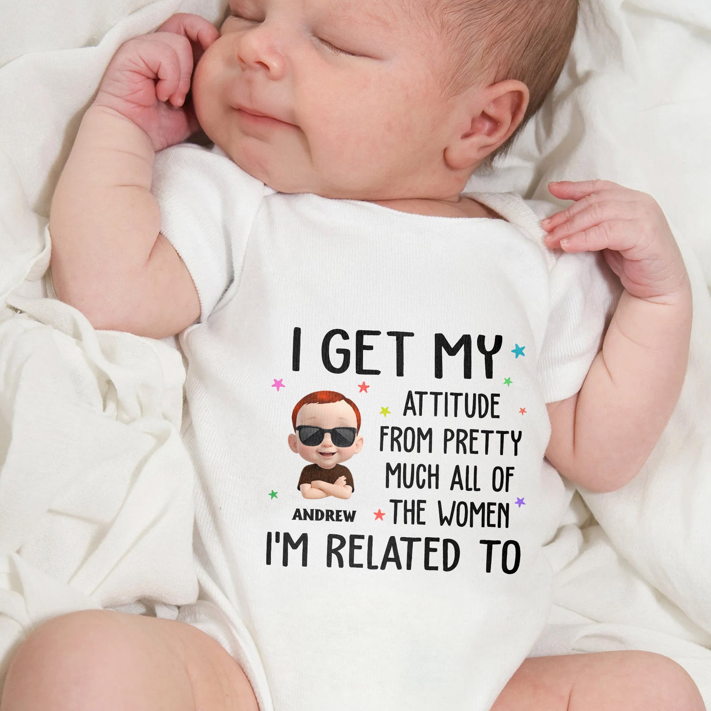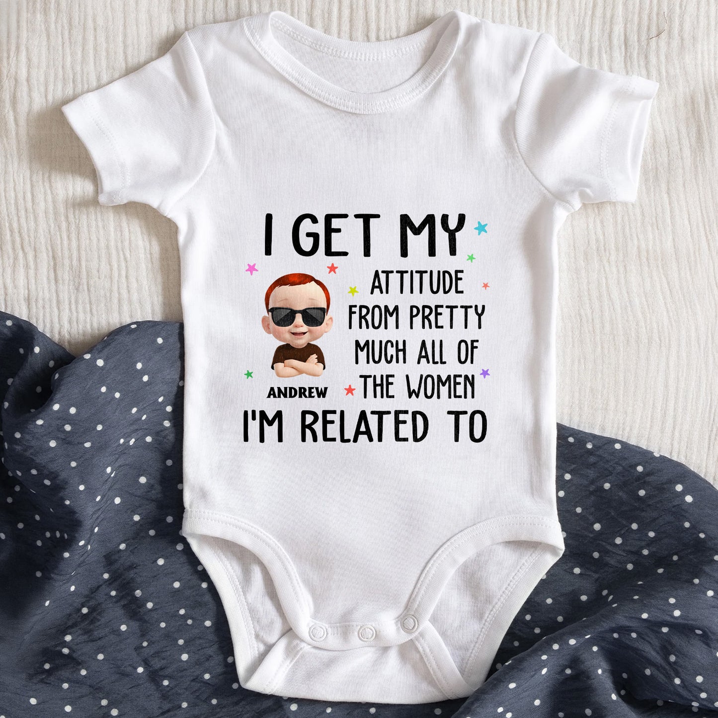 I Get My Attitude From Pretty Much All Of The Women, Personalized Custom Baby Onesie, Gift For Family