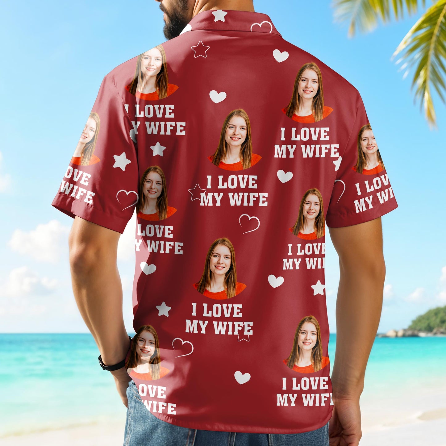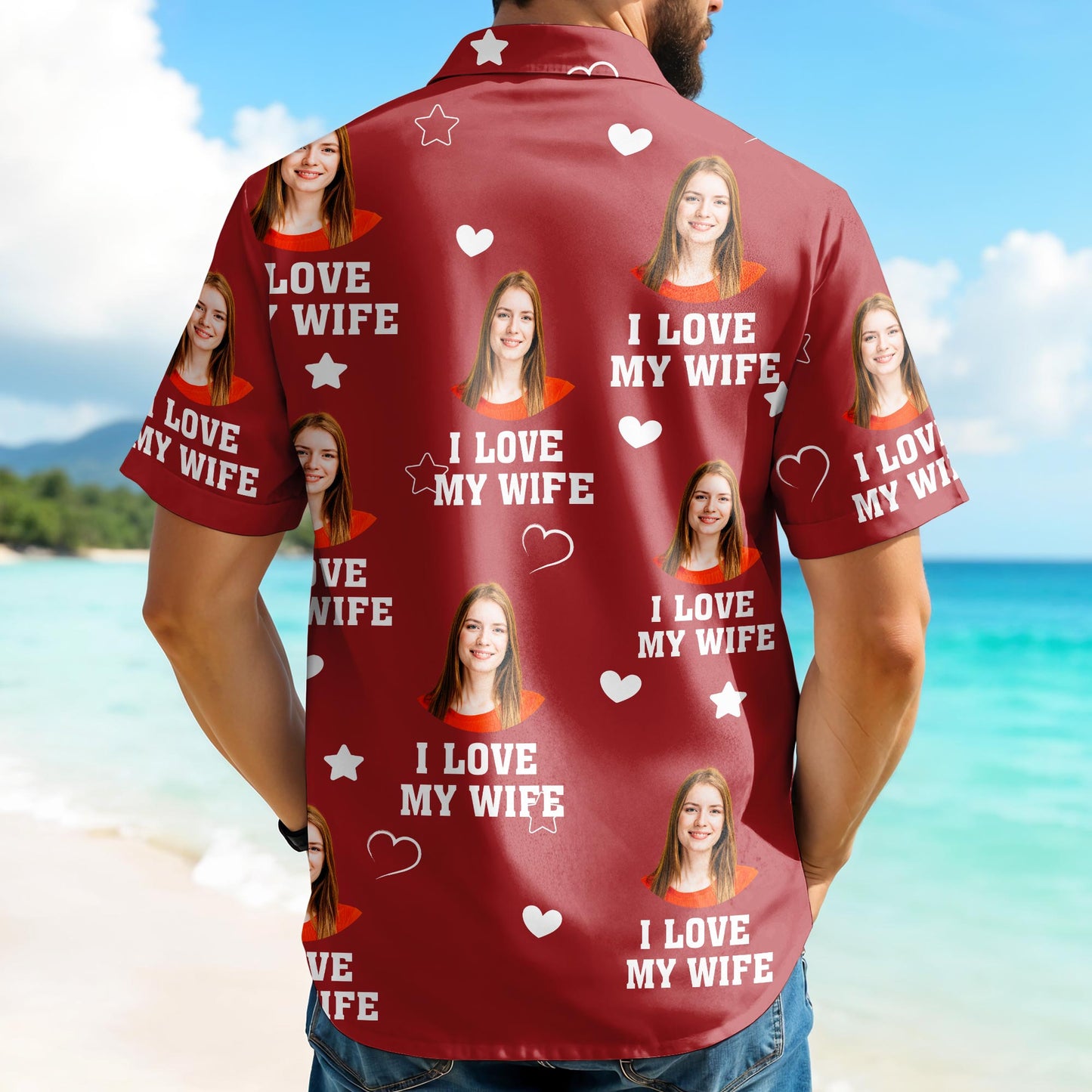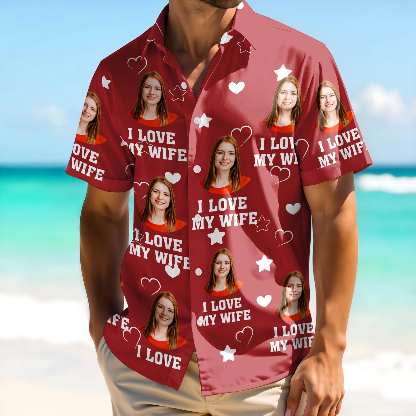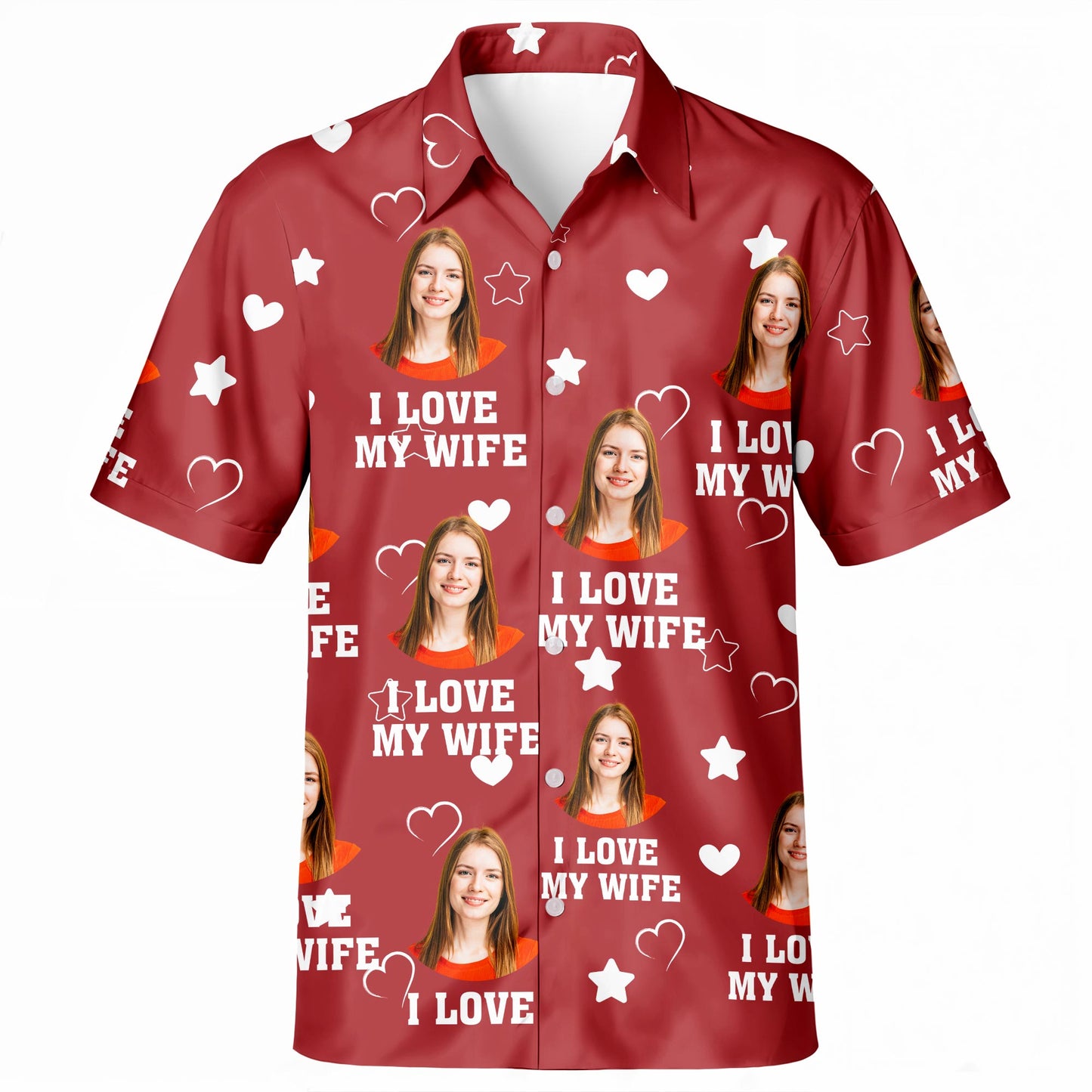 I Love My Wife, Hearts and Photo, Personalized Custom Unisex Hawaiian Shirt, Gift For Husbands