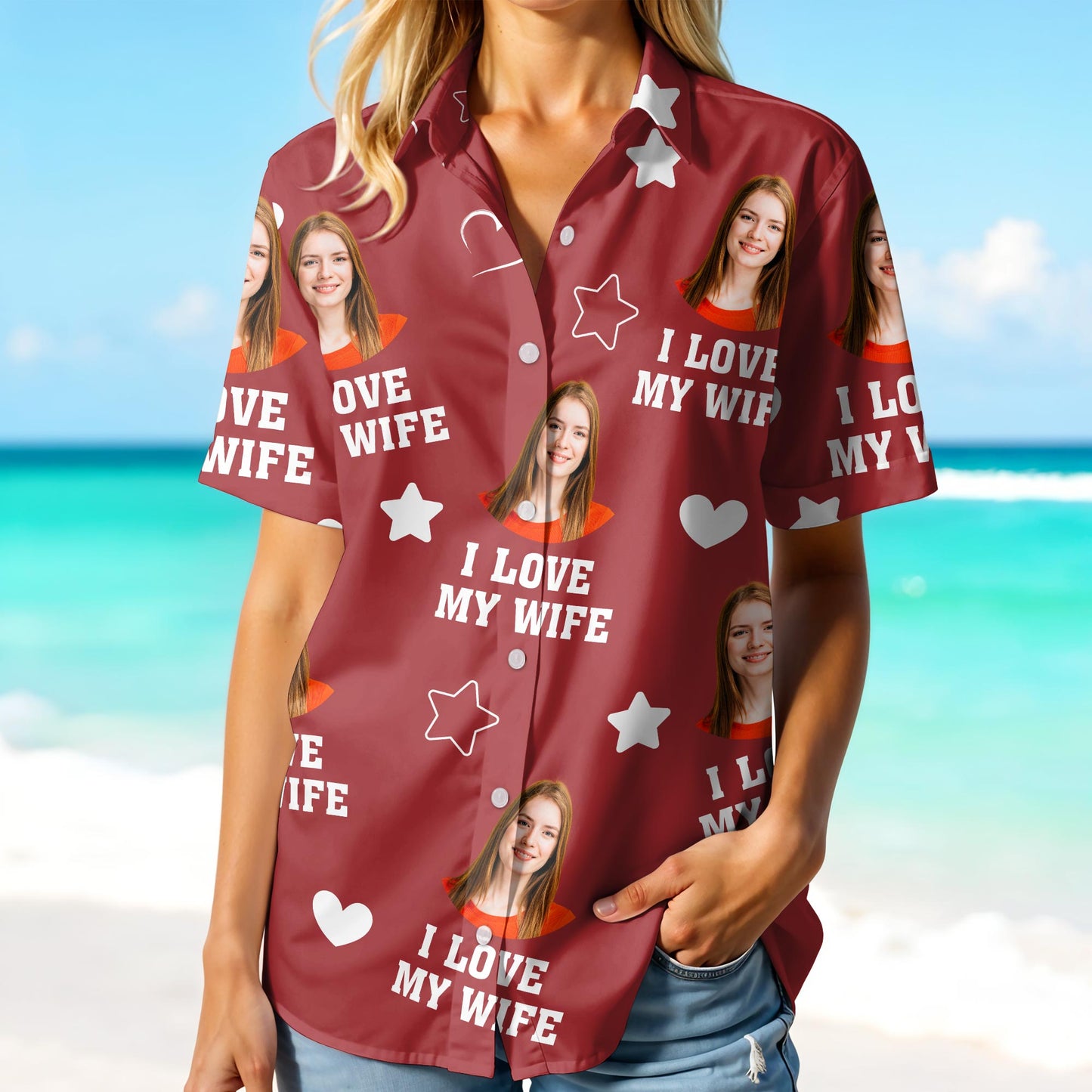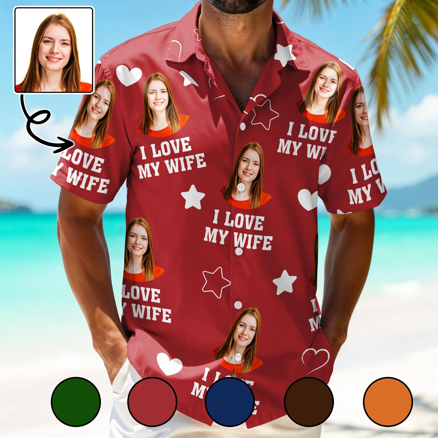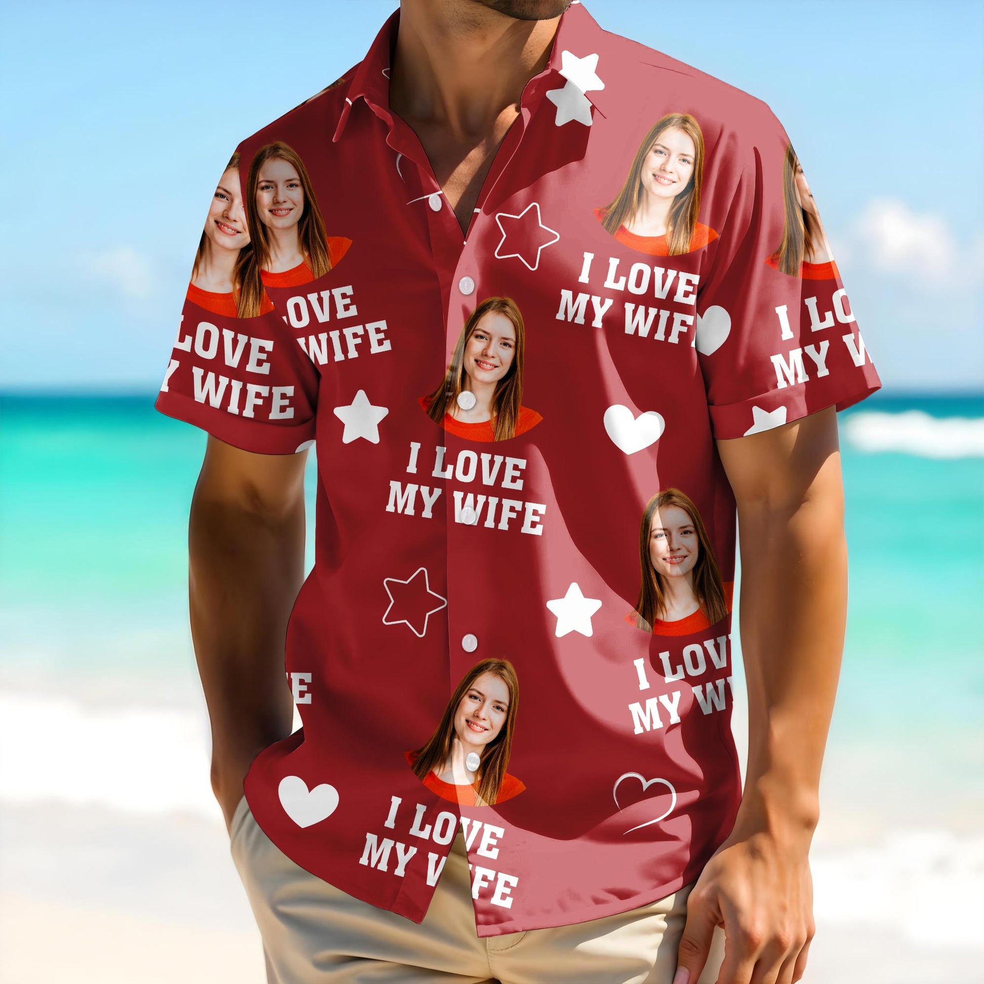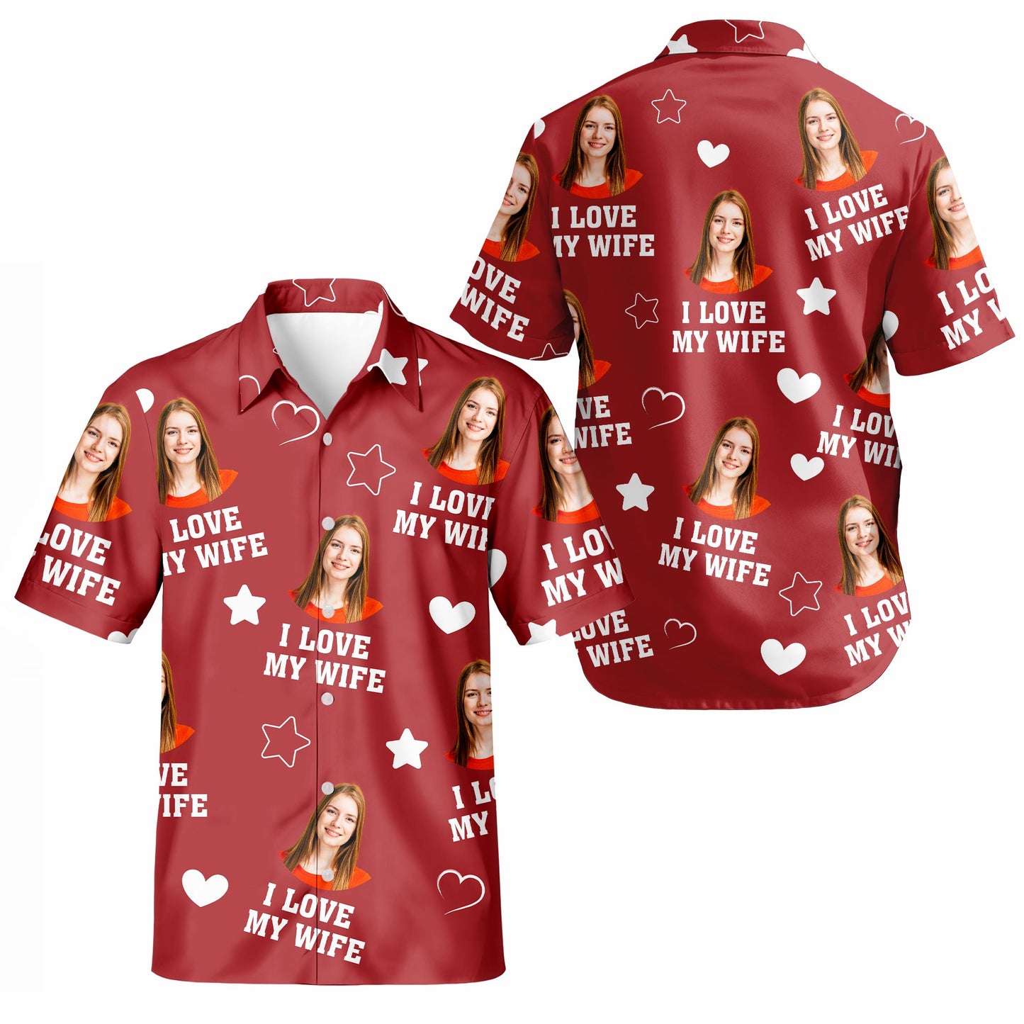 I Love My Wife With Hearts And Stars,Personalized Hawaiian Shirt,Gift For Husband