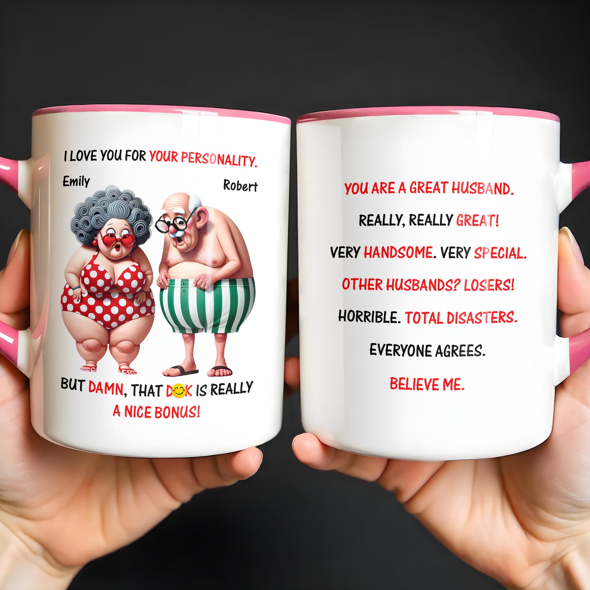 I Love You For Your Personality, Cartoon Couple Design, Custom Accent Mug, Gift For Spouse