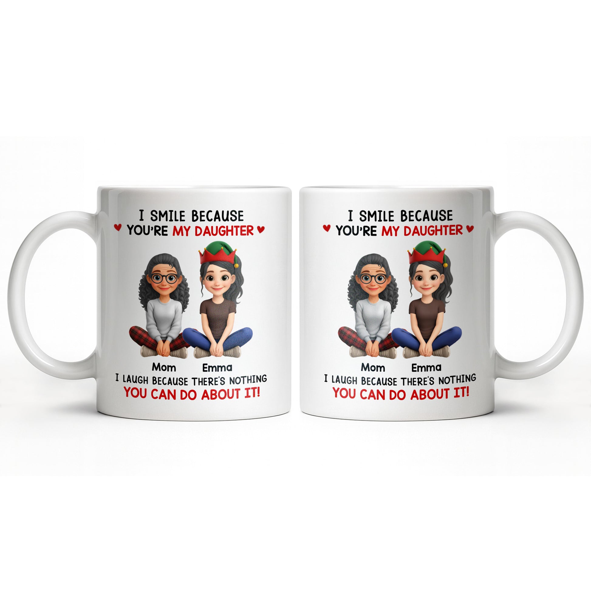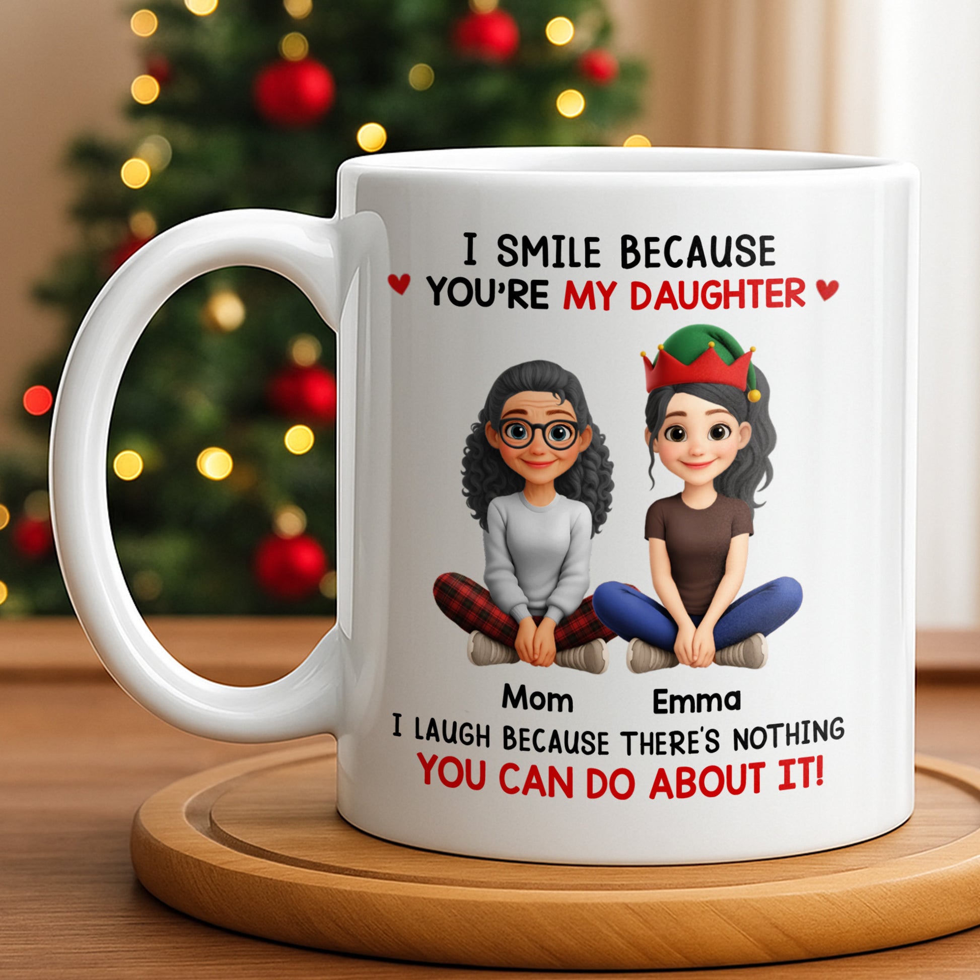 I Smile Because You're My Daughter, Cartoon Figures and Christmas Sweaters - Personalized Custom Coffee Mug - FAM770_MG