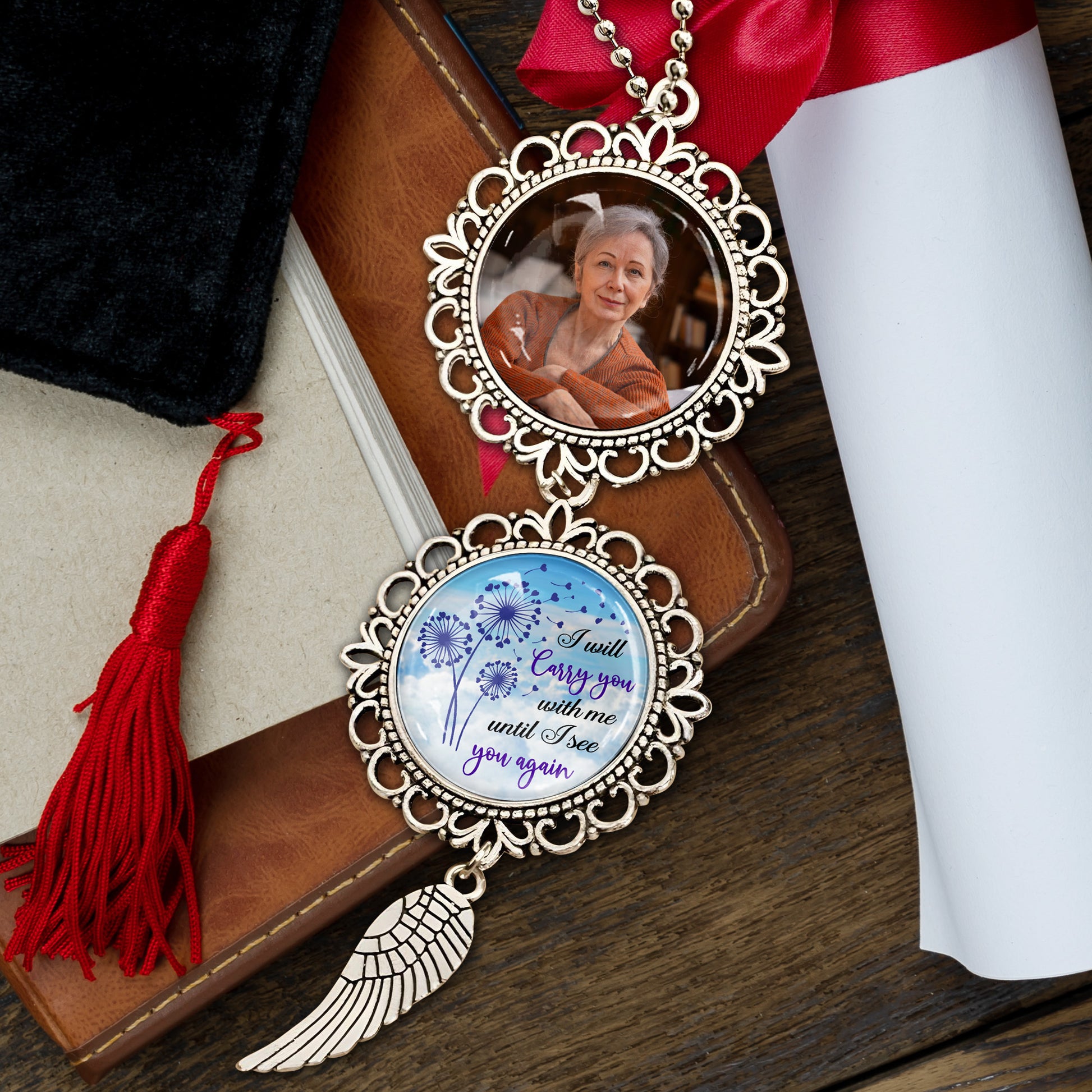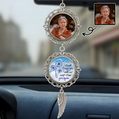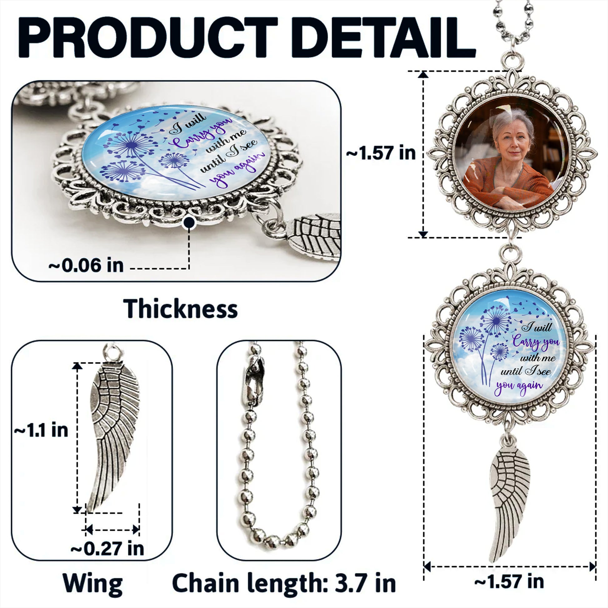 I Will Carry You With Me Until I See You Again, Angel Wing and Flowers - Personalized Hanging Ornament With Angel Wing, Pendant Charm - HME209_PECHA