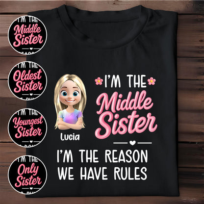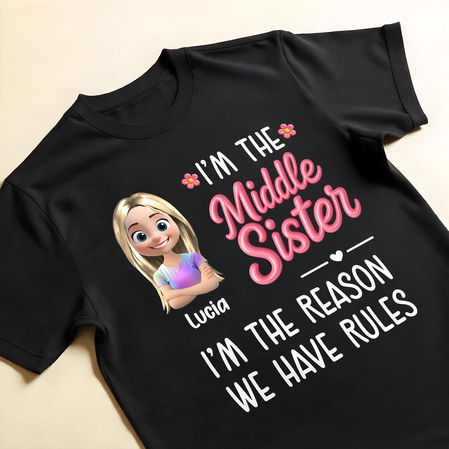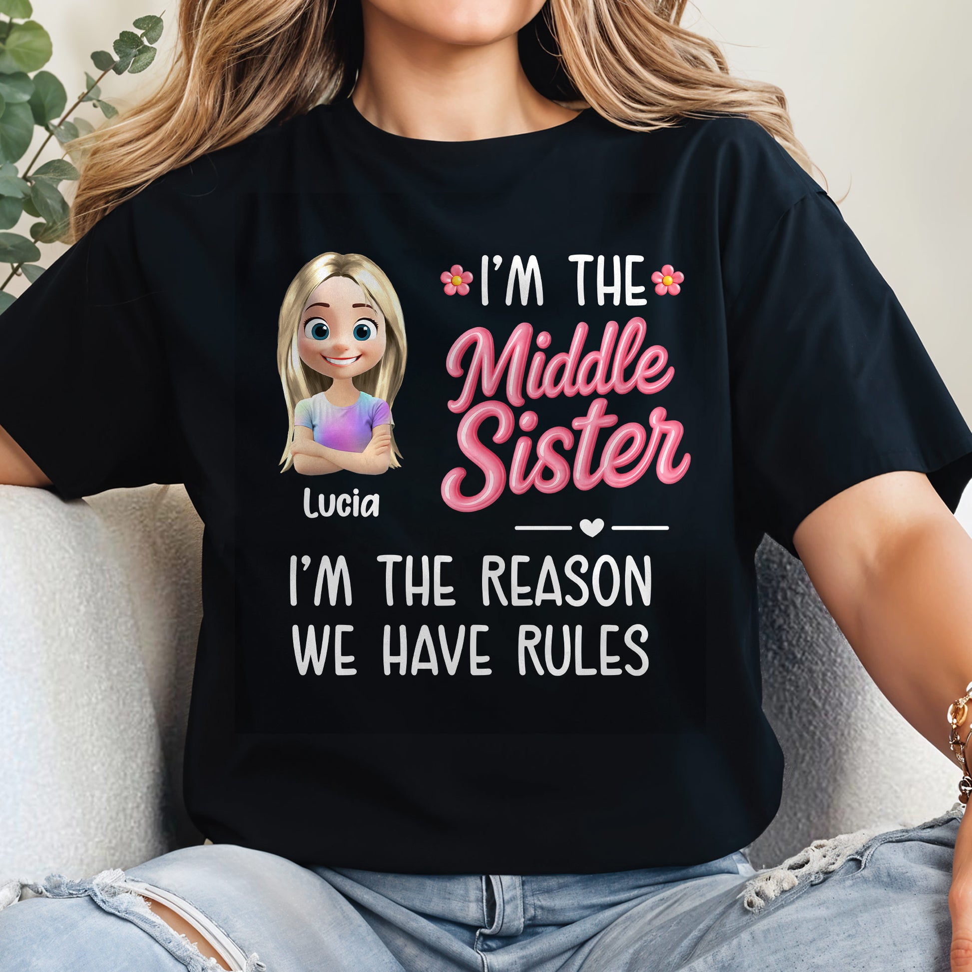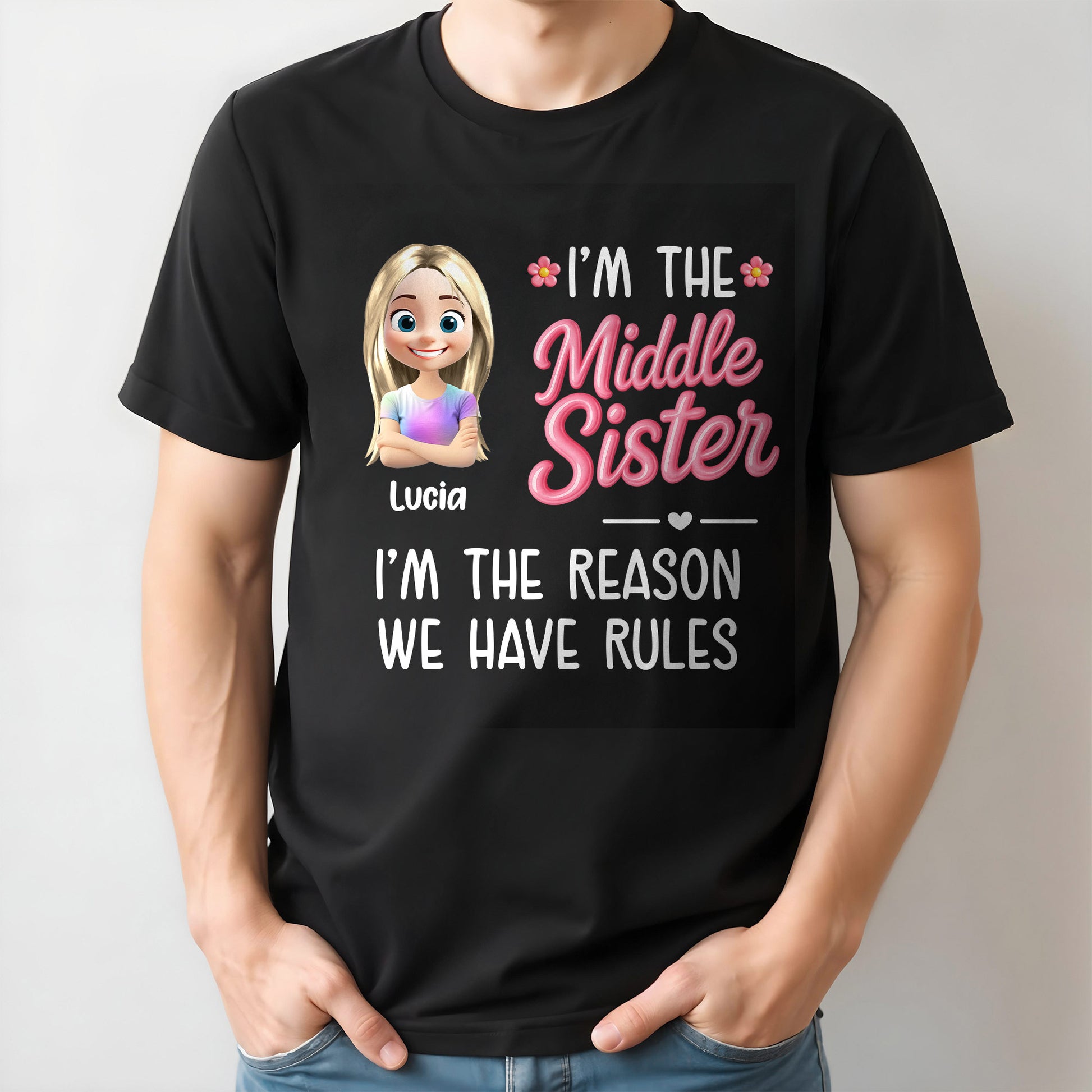 I'm The Middle Sister, I'm The Reason We Have Rules, Custom Unisex T-Shirt, Gift For Sisters and Family