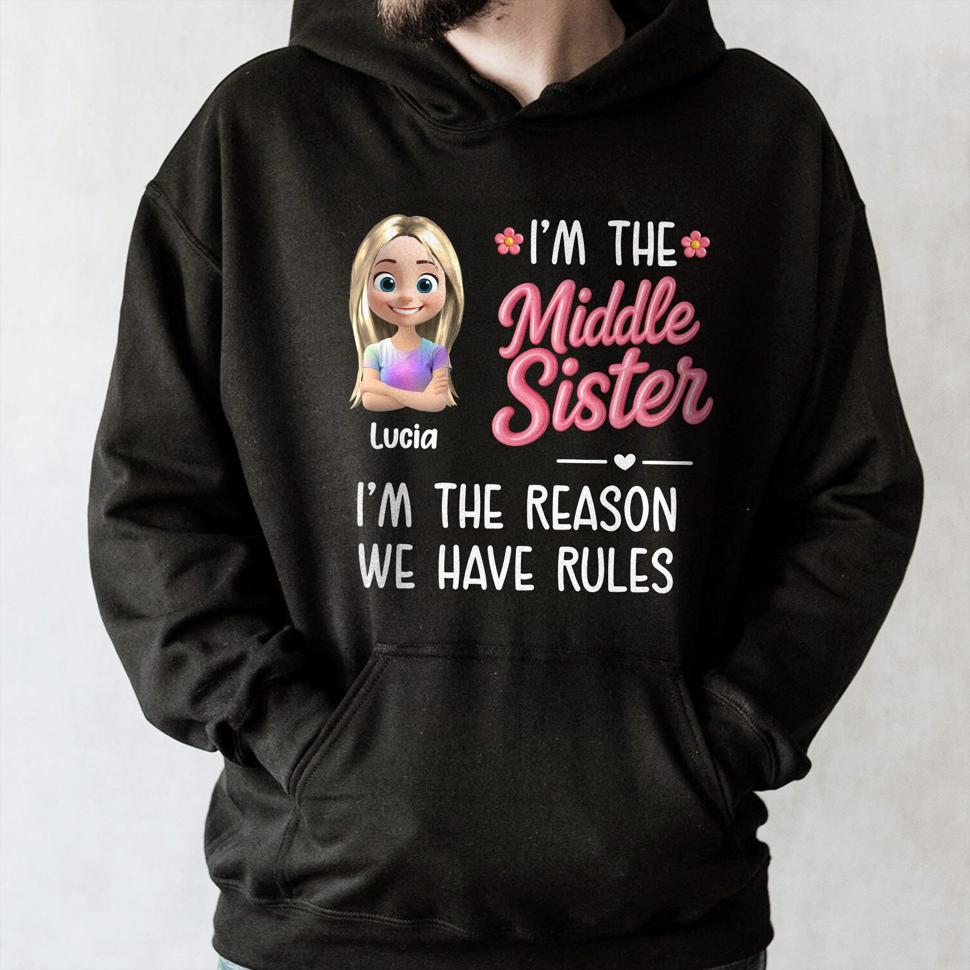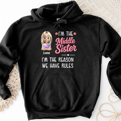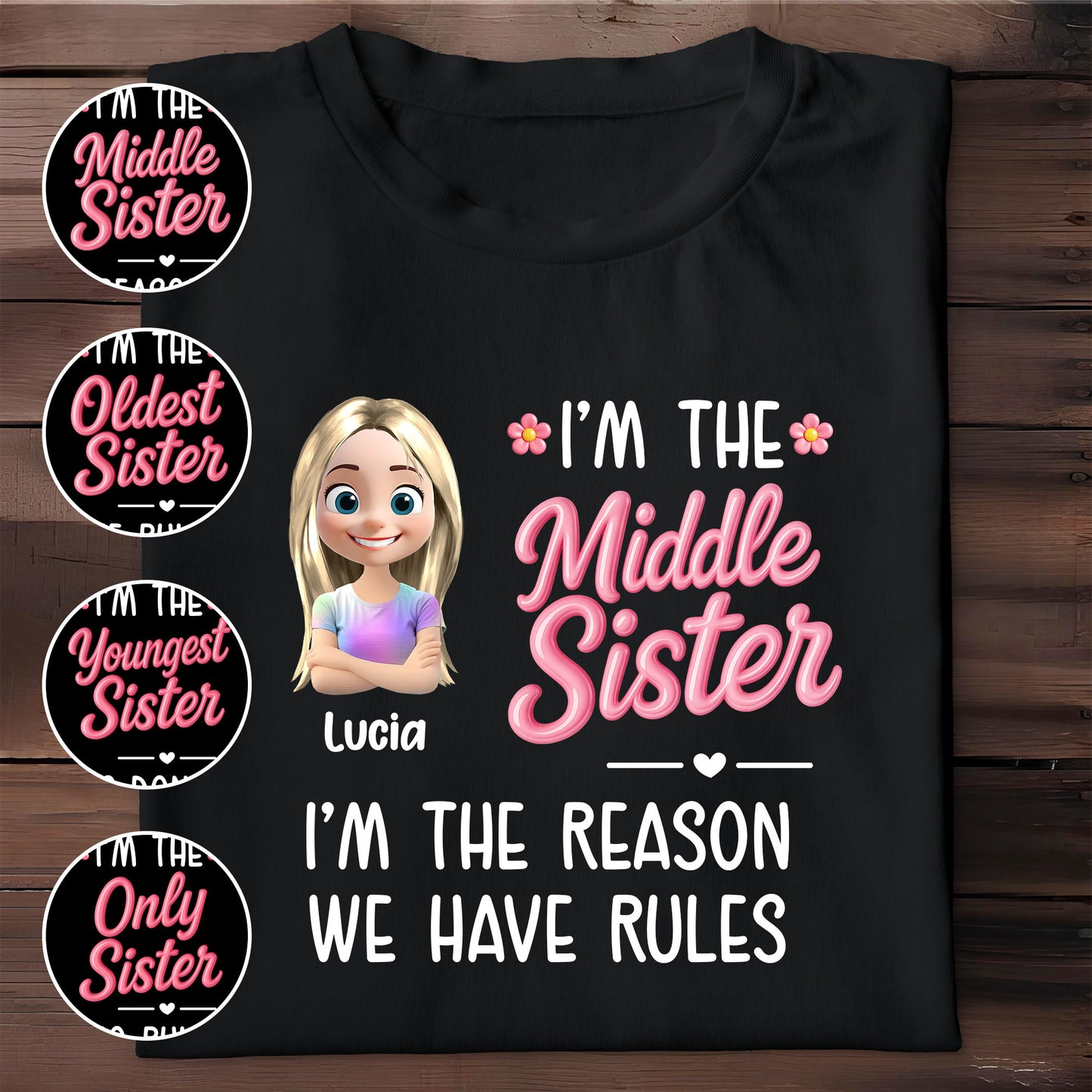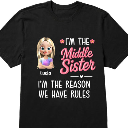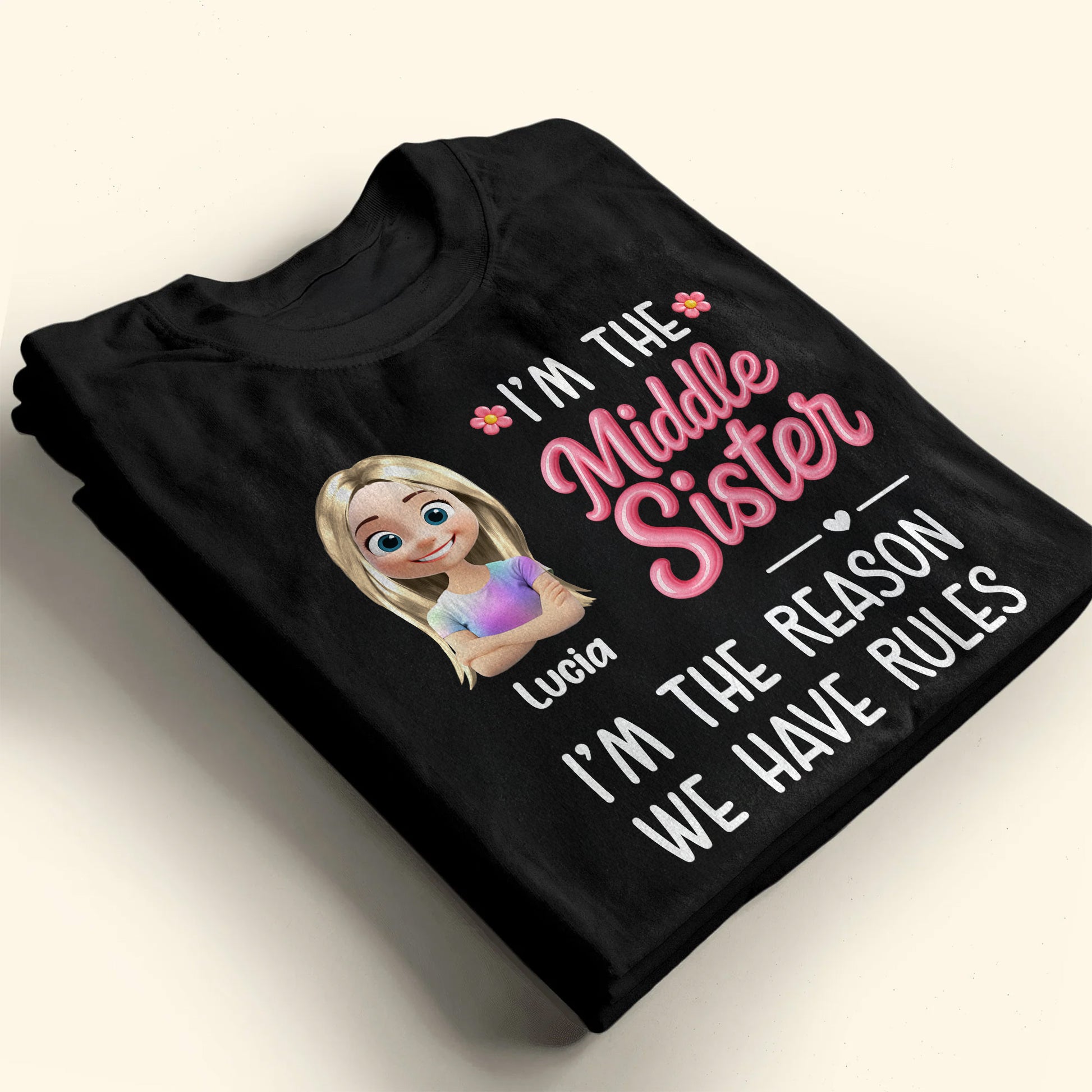 I'm The Middle Sister, I'm The Reason We Have Rules, Custom Unisex T-Shirt, Gift For Sisters and Family
