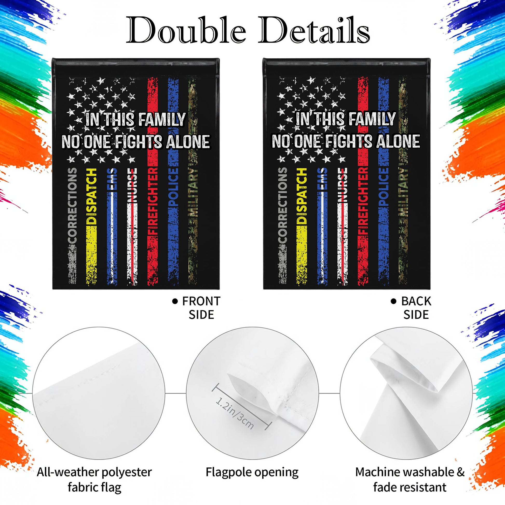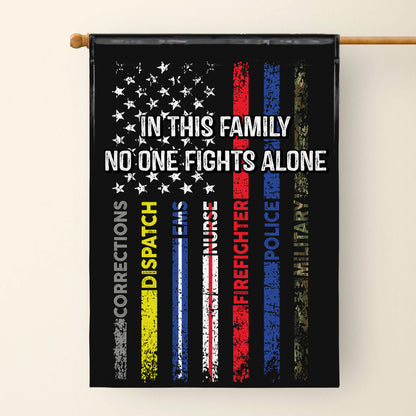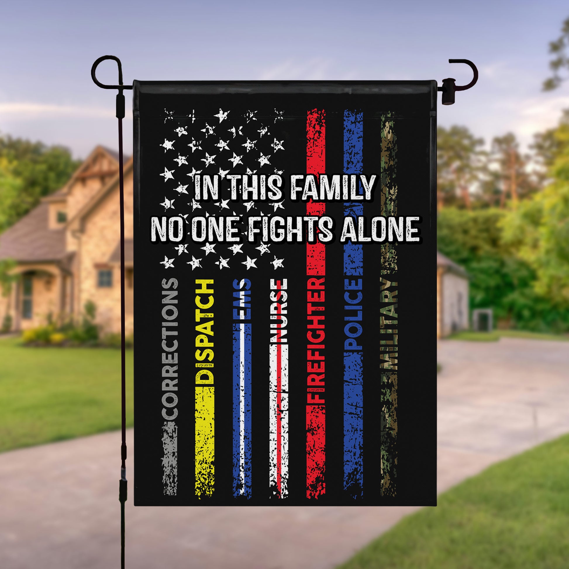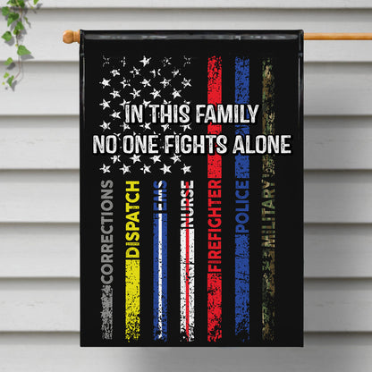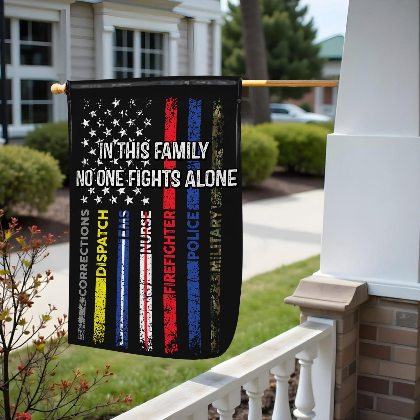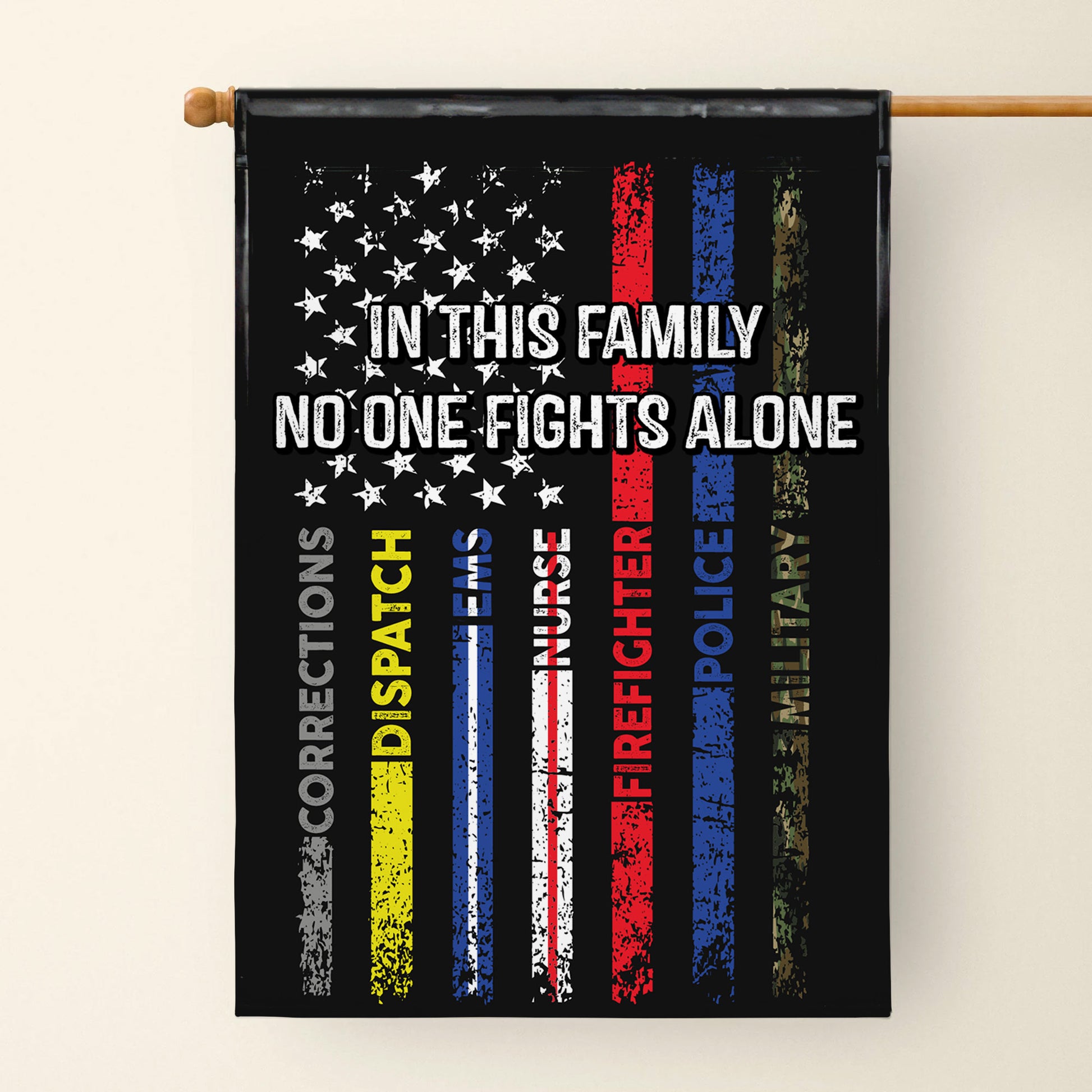 In This Family No One Fights Alone Flag, Gift for Military and First Responder Families