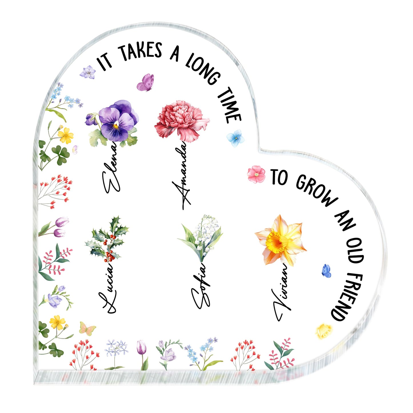 It Takes A Long Time To Grow An Old Friend With Beautiful Flowers - Personalized Heart Shaped Acrylic Plaque - BST148_HAP