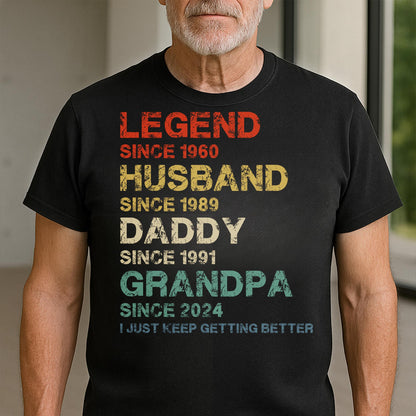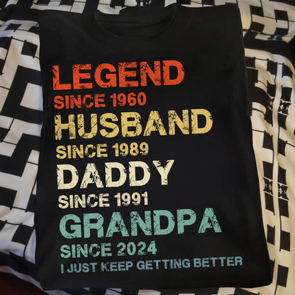 Message: Legend Since [Year], Husband Since [Year], Daddy Since [Year], Grandpa Since [Year], I Just Keep Getting Better
